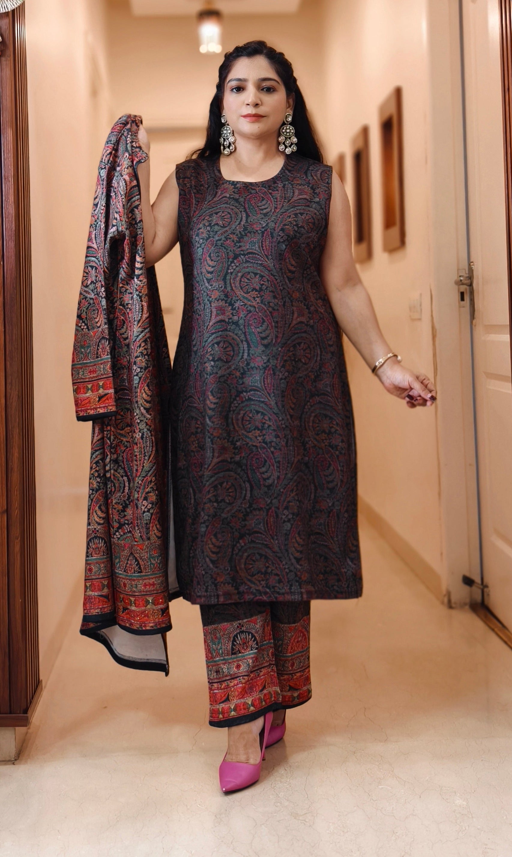 KARACHI WOOL ELEGANT THREE-PIECE COORDINATED SET WITH JACKET