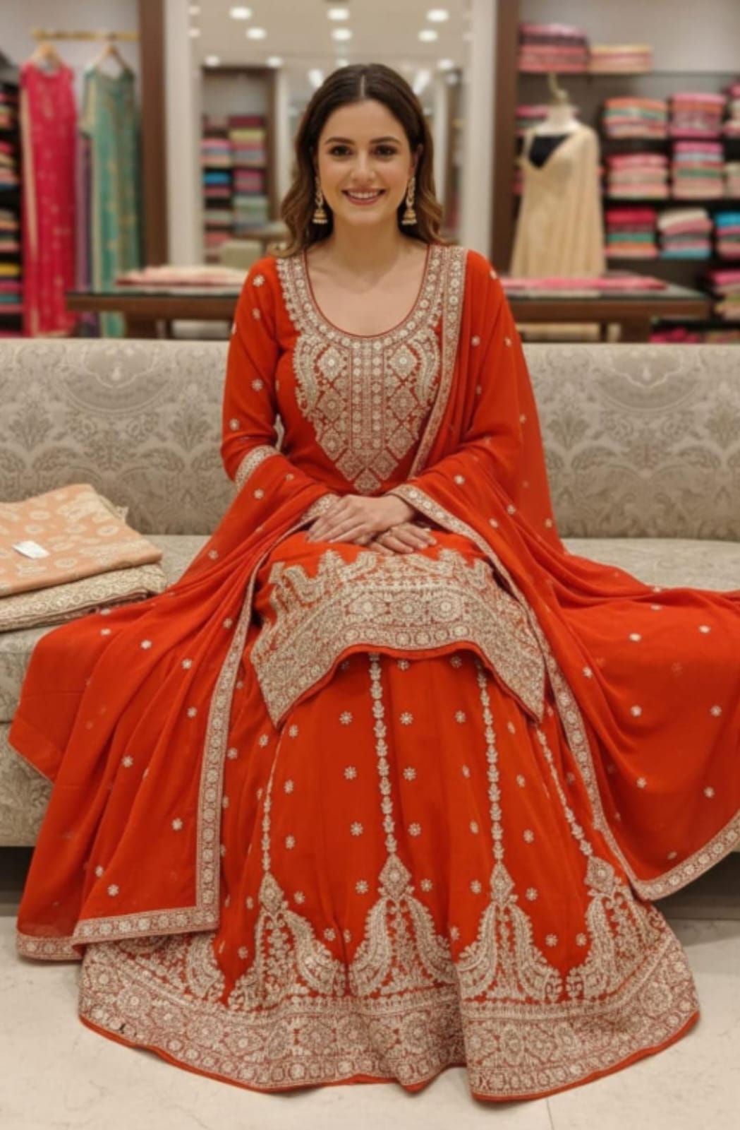 PREMIUM CHINON SUIT WITH HEAVY DUPATTA AND SKIRT