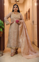IVORY TISSUE ANARKALI WITH DISIGNER PANT AND BANARSI DUPATTA