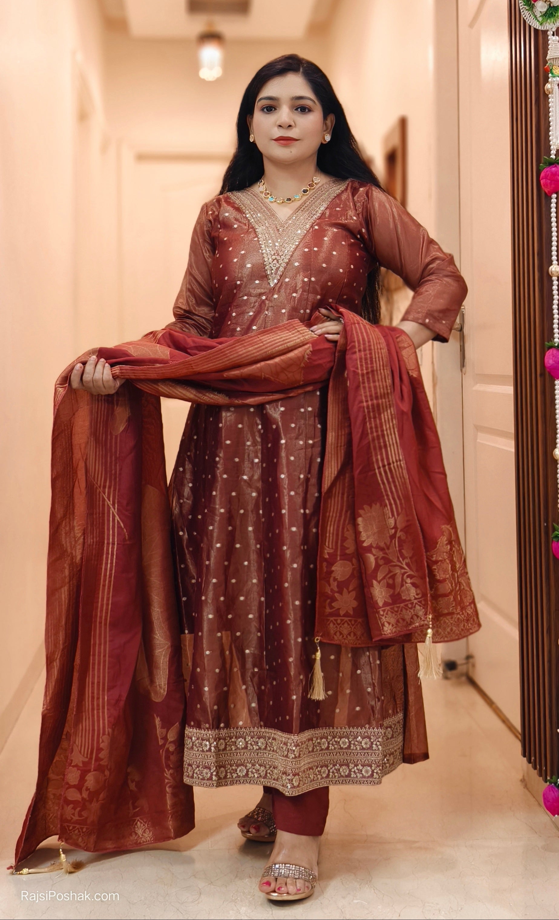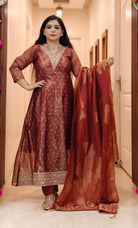 RUST SHIMMER TISSUE ANARKALI WITH BEAUTIFUL DUPATTA