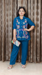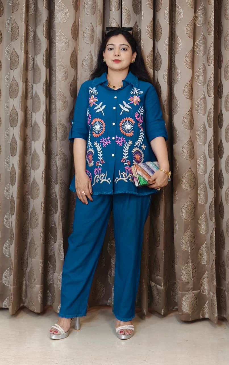 BLUE HANDLOOM COTTON COORDSET WITH PANT