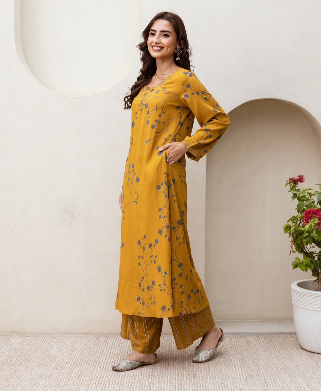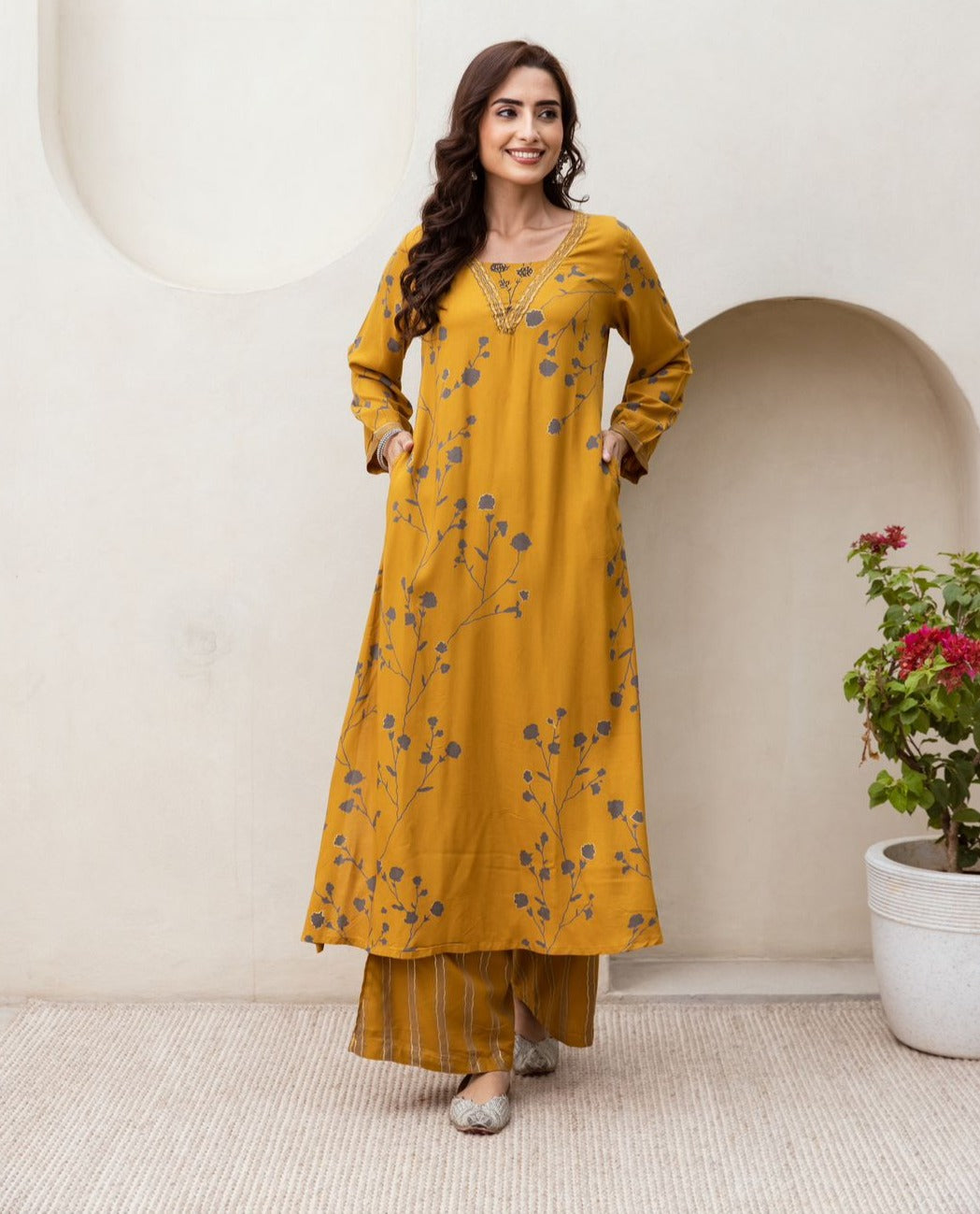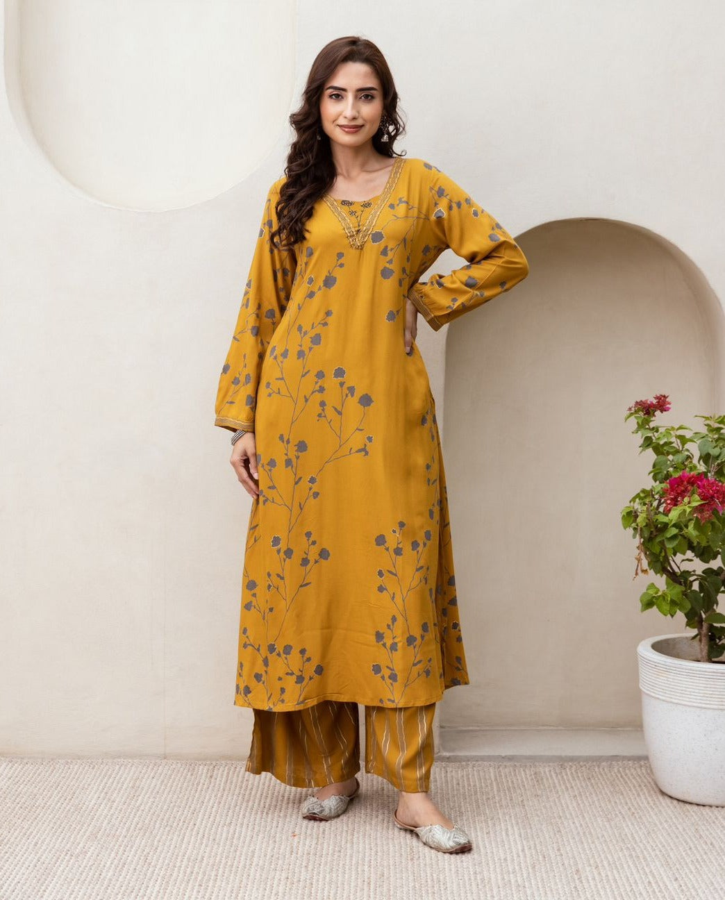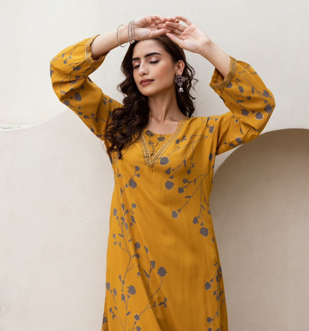 YELLOW HEVY REYON 2 PC LONG COORD SET