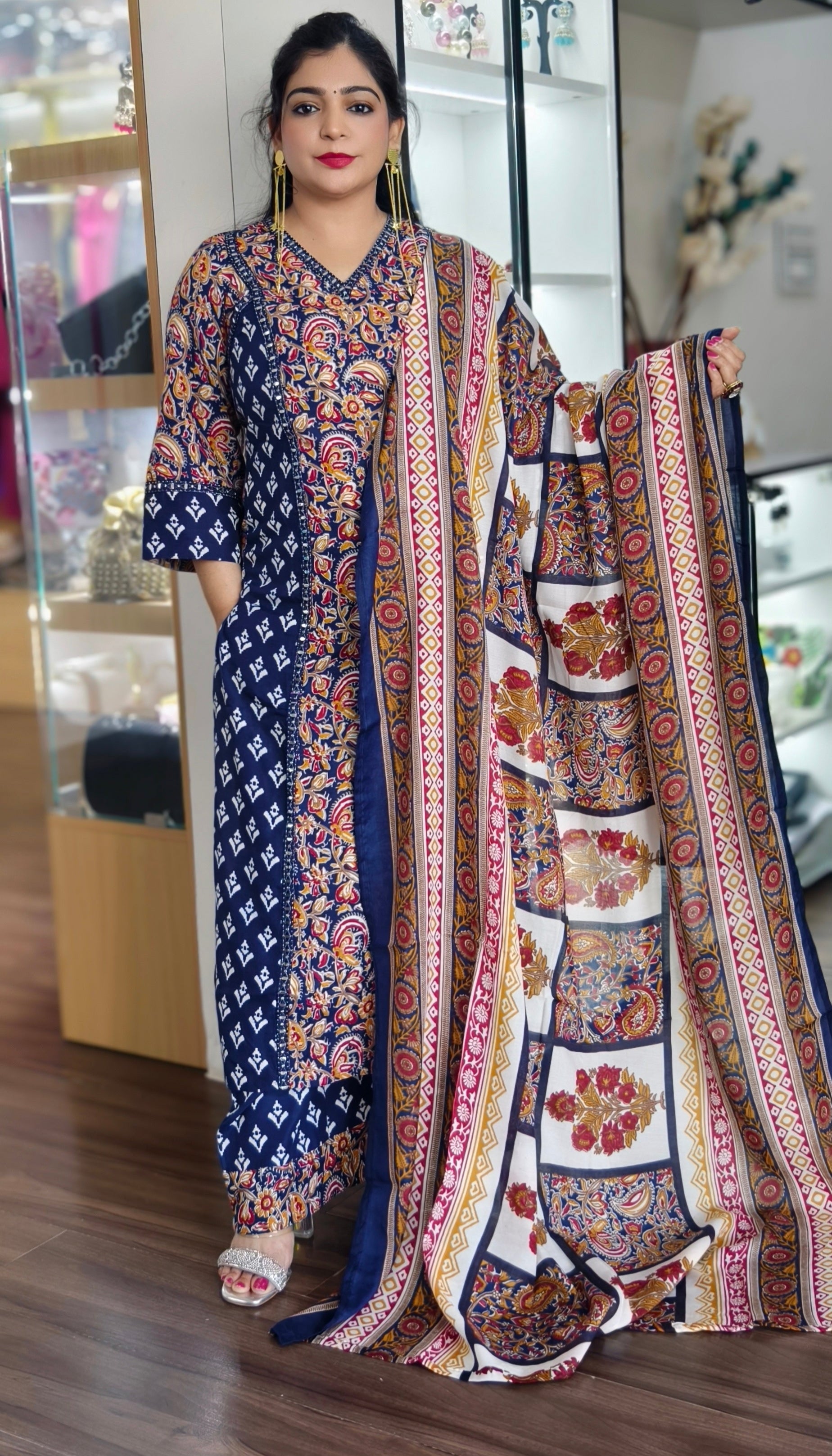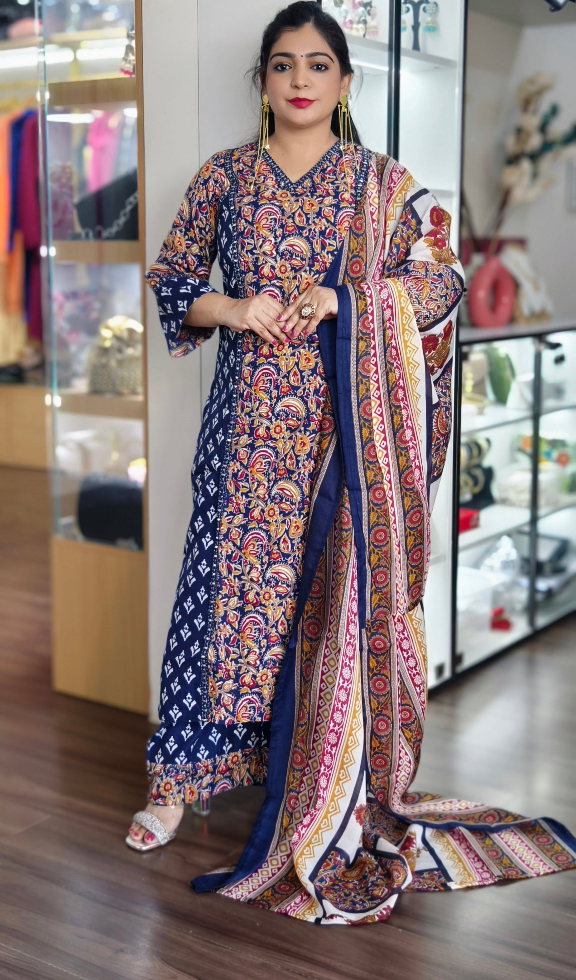 This stunning Digital Printed Kurta Paired with PLAZO and PRINTED Dupatta offers a perfect blend of modern style and traditional elegance. The kurta features intricate digital prints that add a vibrant and contemporary touch to your wardrobe. Paired with a comfortable, well-fitted pant and a beautifully printed dupatta, this ensemble creates a graceful yet stylish look for any occasion. Ideal for festive gatherings, casual outings, or family events, this outfit is designed to provide both comfort and style, ensuring you stand out with every wear.