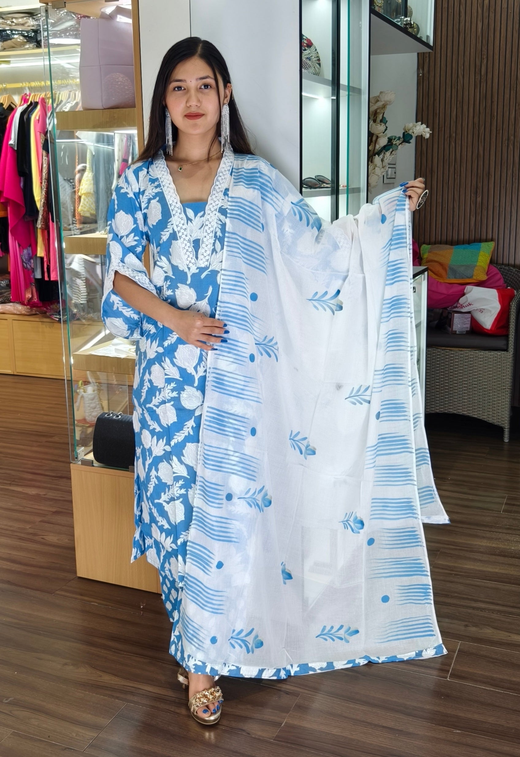 A must have FIROZI FLORAL PRINTED COTTON SUIT WITH DISIGNER PANT in your wardrobe. It comes with Printed dupatta.