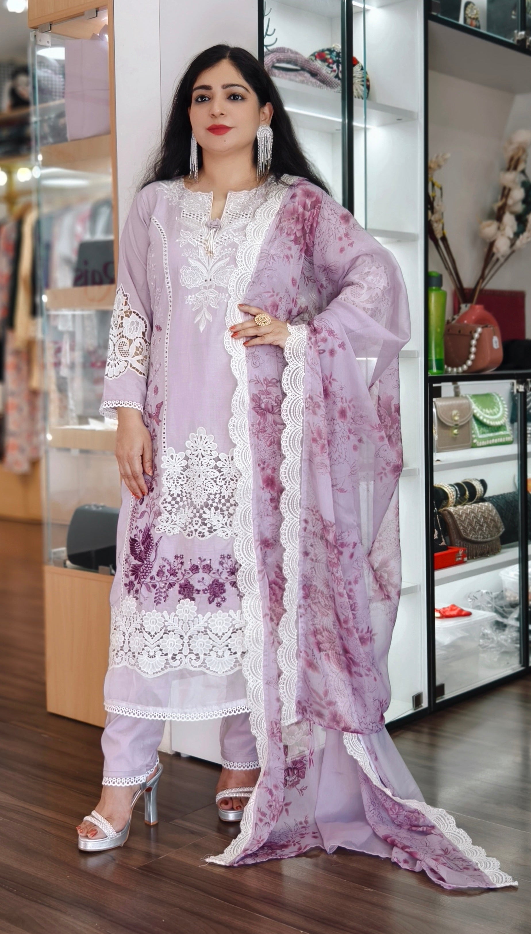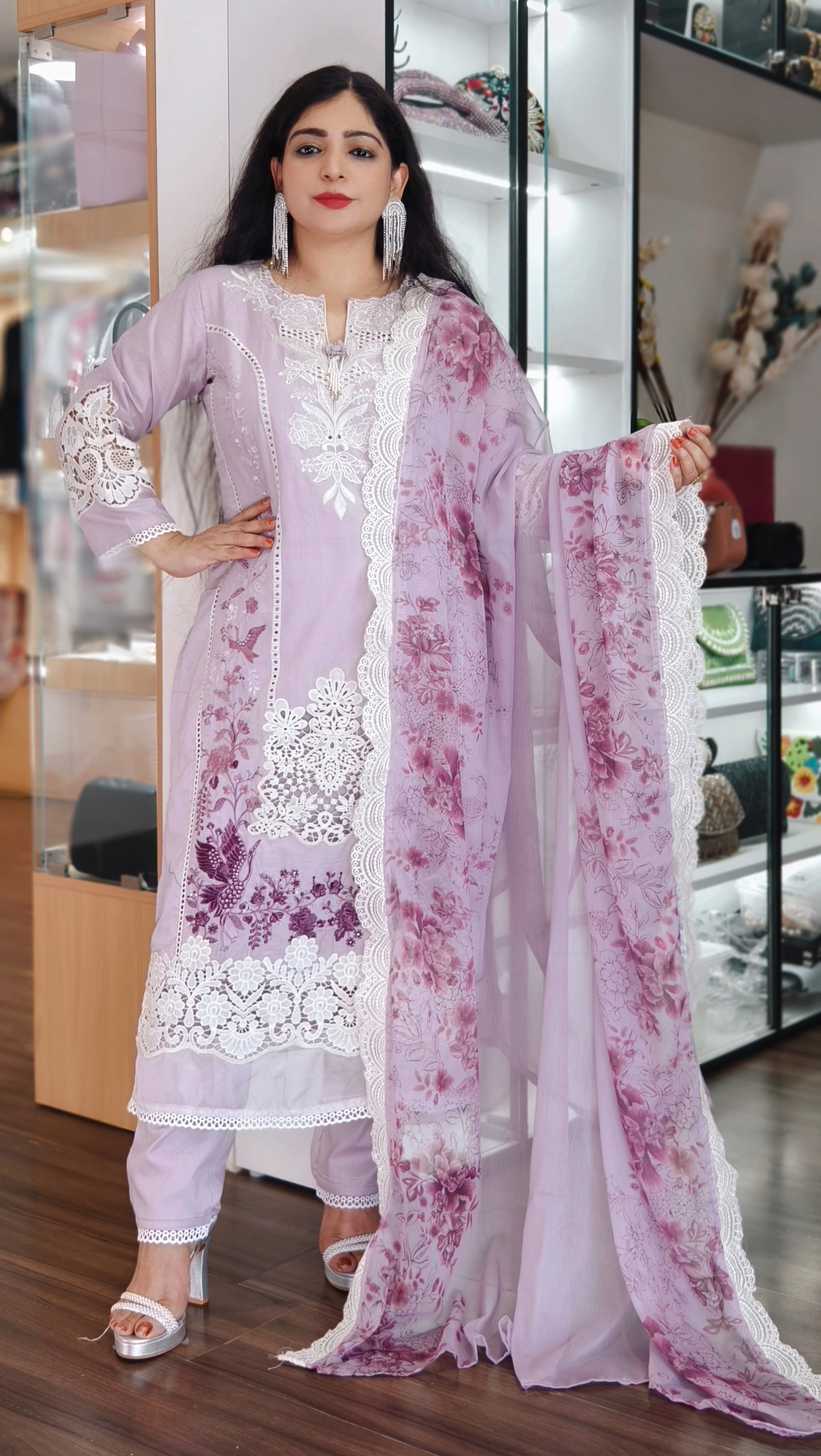LIGHT PURPLE PURE COTTON PAKISTANI PARTY WEAR SUIT
