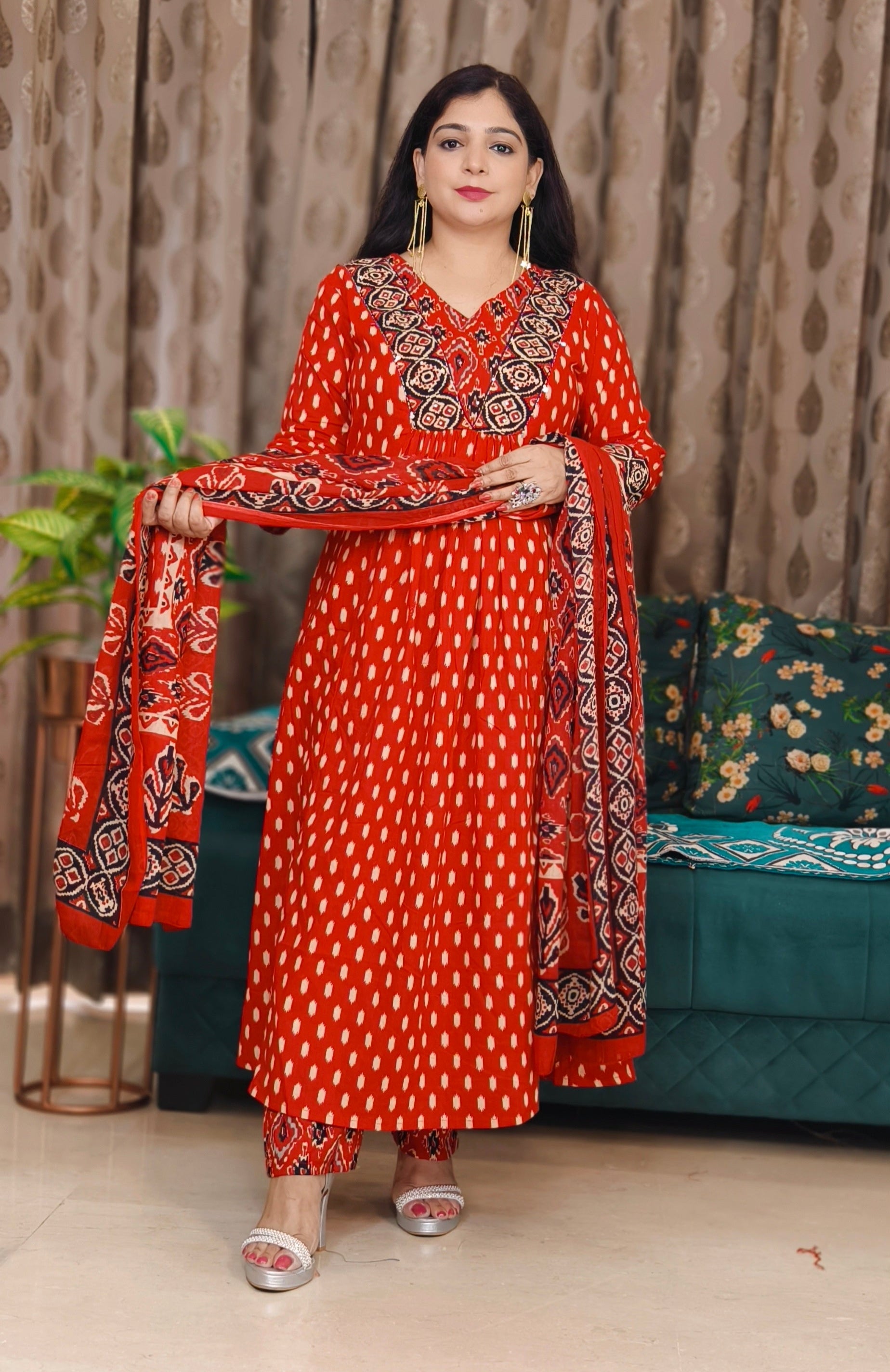 A must have MAROON PRINTED COTTON SUIT WITH DISIGNER PANT in your wardrobe. It comes with Printed dupatta.