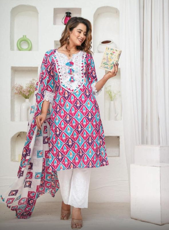Fabric                        Kurta (COTTON),Pant (COTTON),Dupatta (COTTON)
