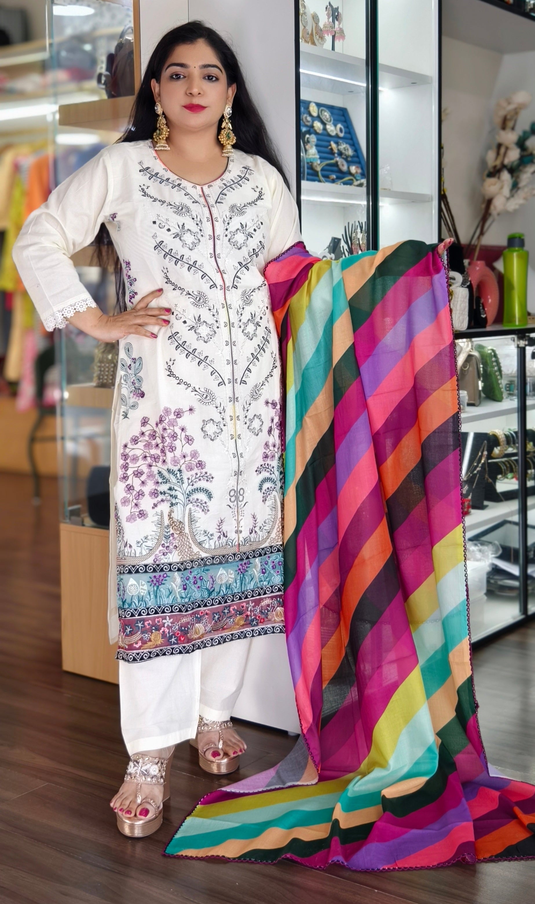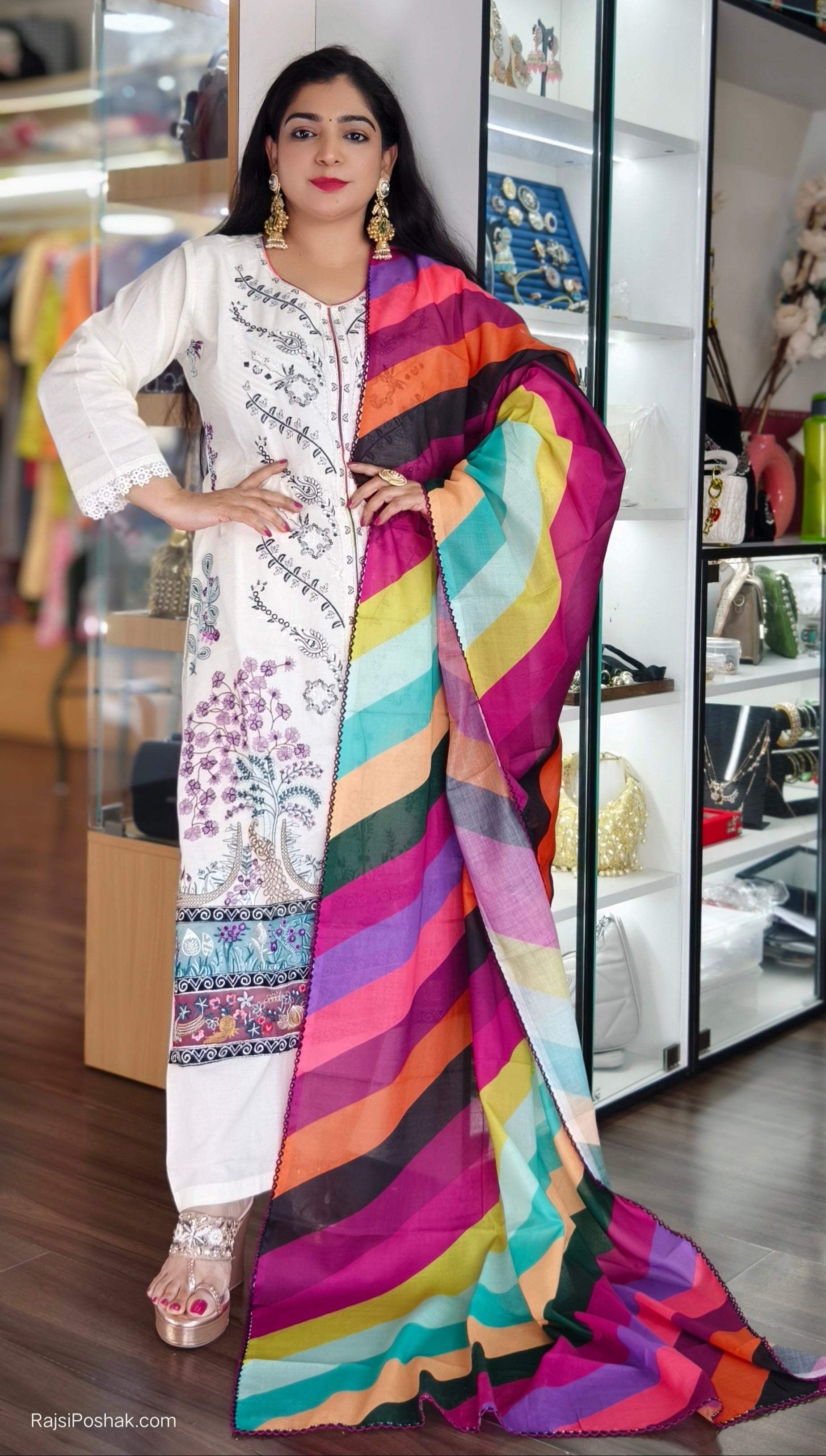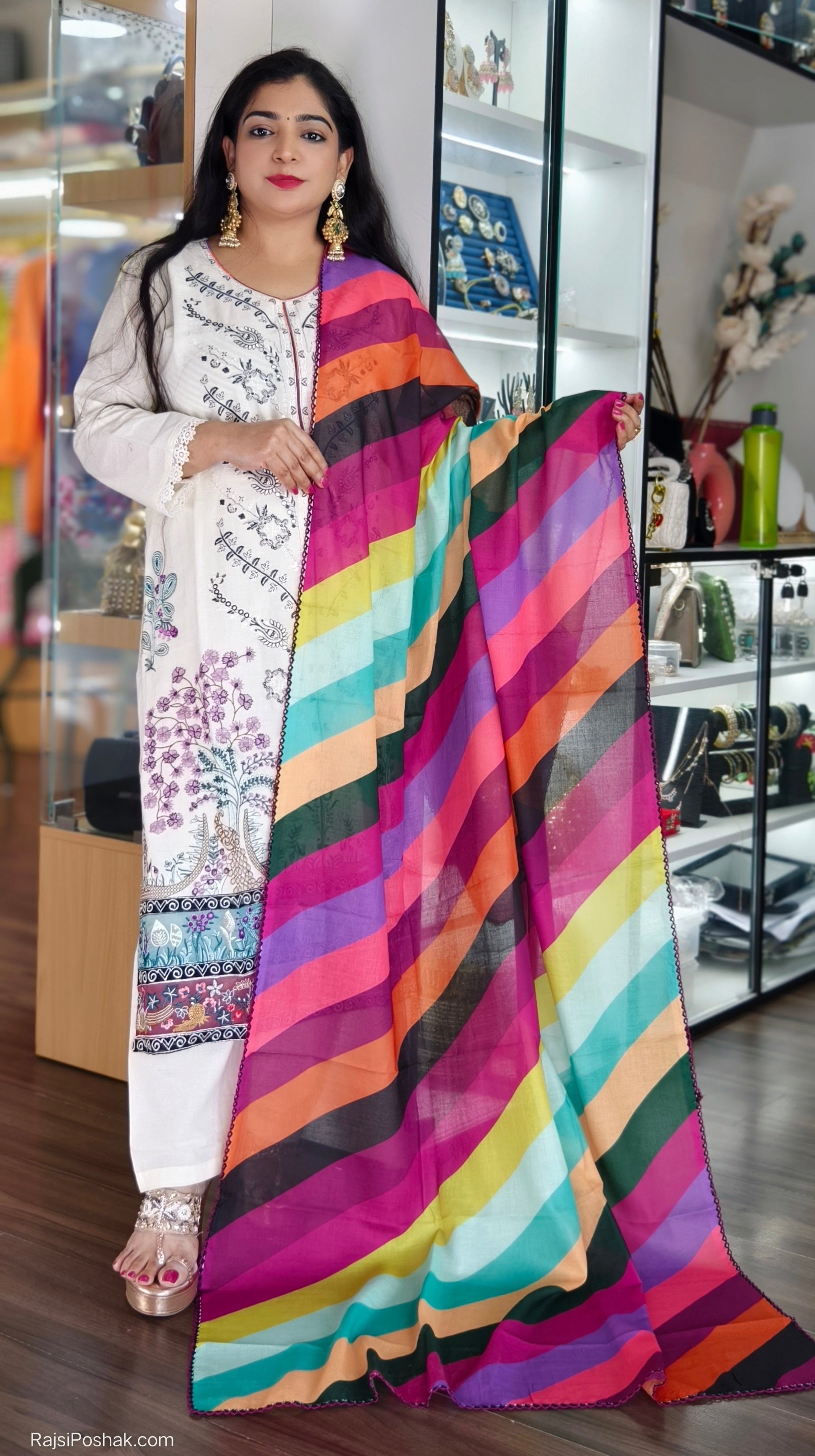 Brighten up your wardrobe with this vibrant Multicolor Lawn Cotton fabric, adorned with a stunning digital print. The soft, breathable cotton fabric ensures comfort, while the rich, eye-catching colors and intricate digital design bring a modern twist to traditional patterns. Perfect for casual outings or a day of relaxation, this versatile piece offers both style and comfort in one beautiful package.