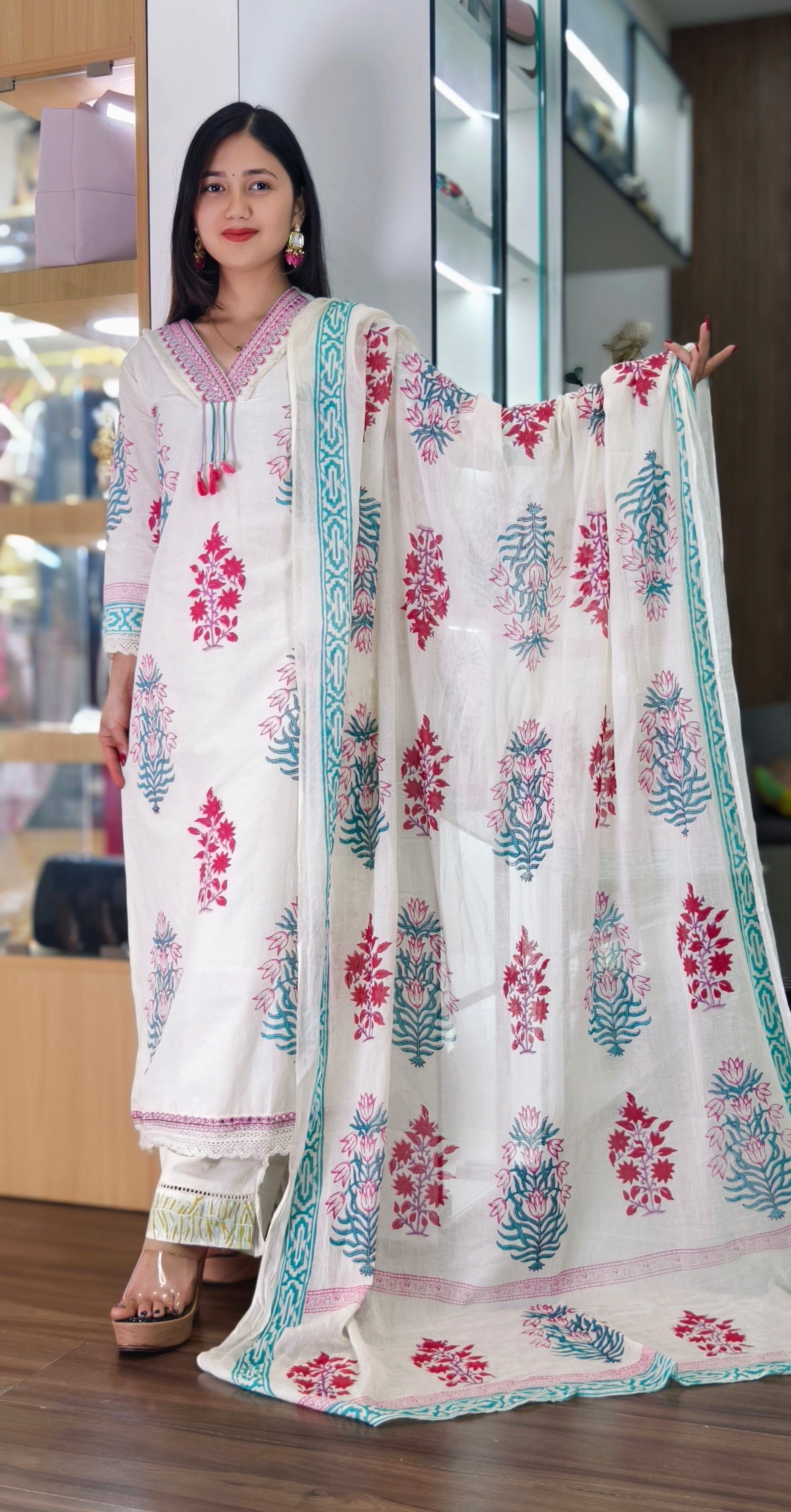 Fabric                        Kurta (COTTON),Pant (COTTON),Dupatta (COTTON)