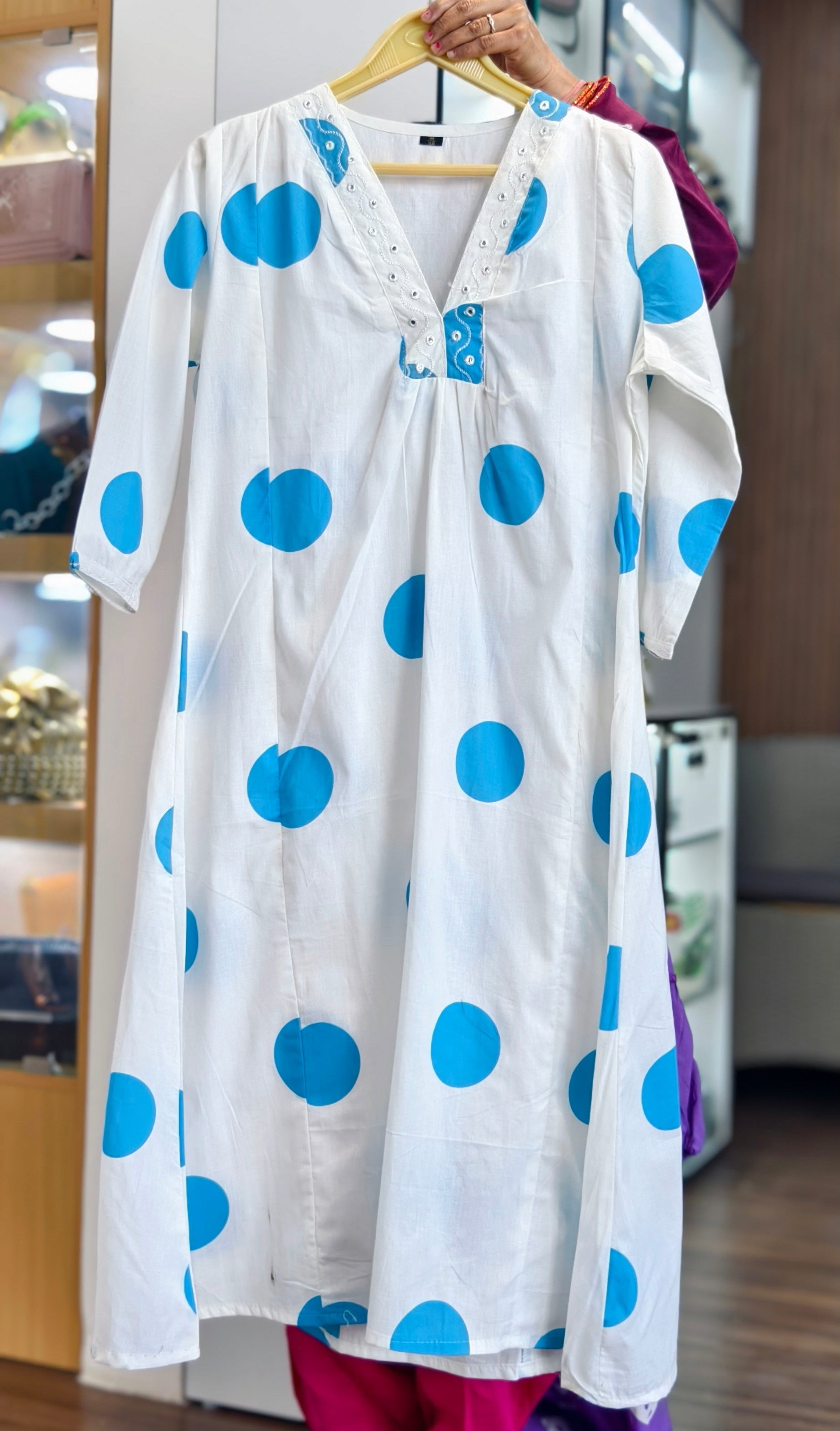 A must have WHITE POLKA DOT 2 PC A LINE SUIT WITH PLAZO in your wardrobe.