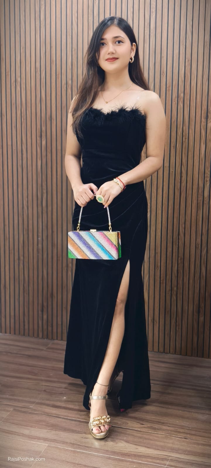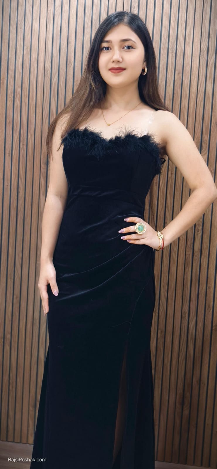 OFF-SHOULDER BACKLESS VELVET EVENING GOWN INDO WESTERN DRESS