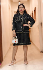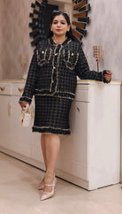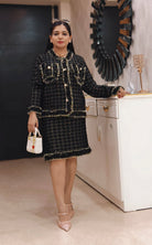 BLACK AND WHITE IMPORTED STRETCHABLE SKIRT COORD SET