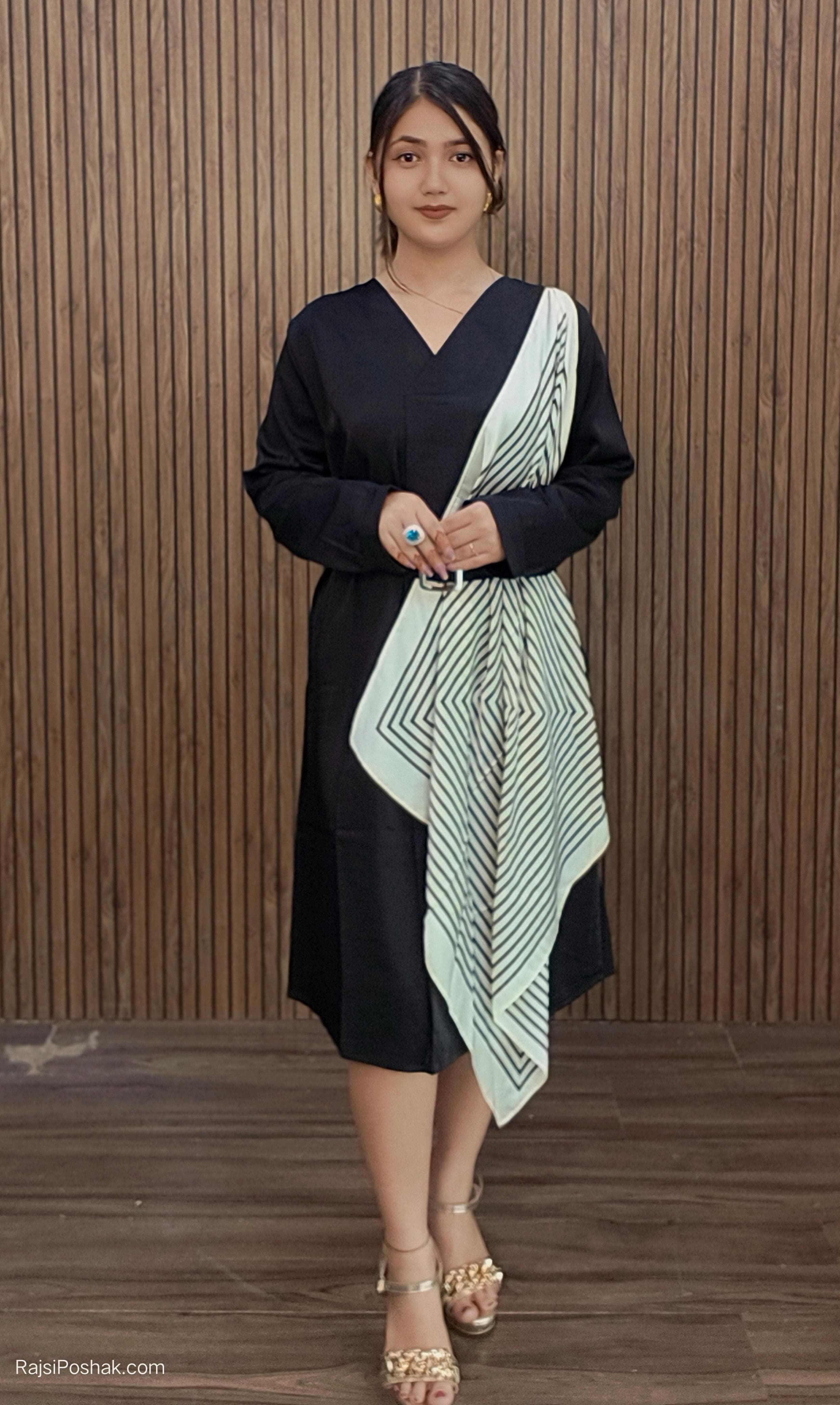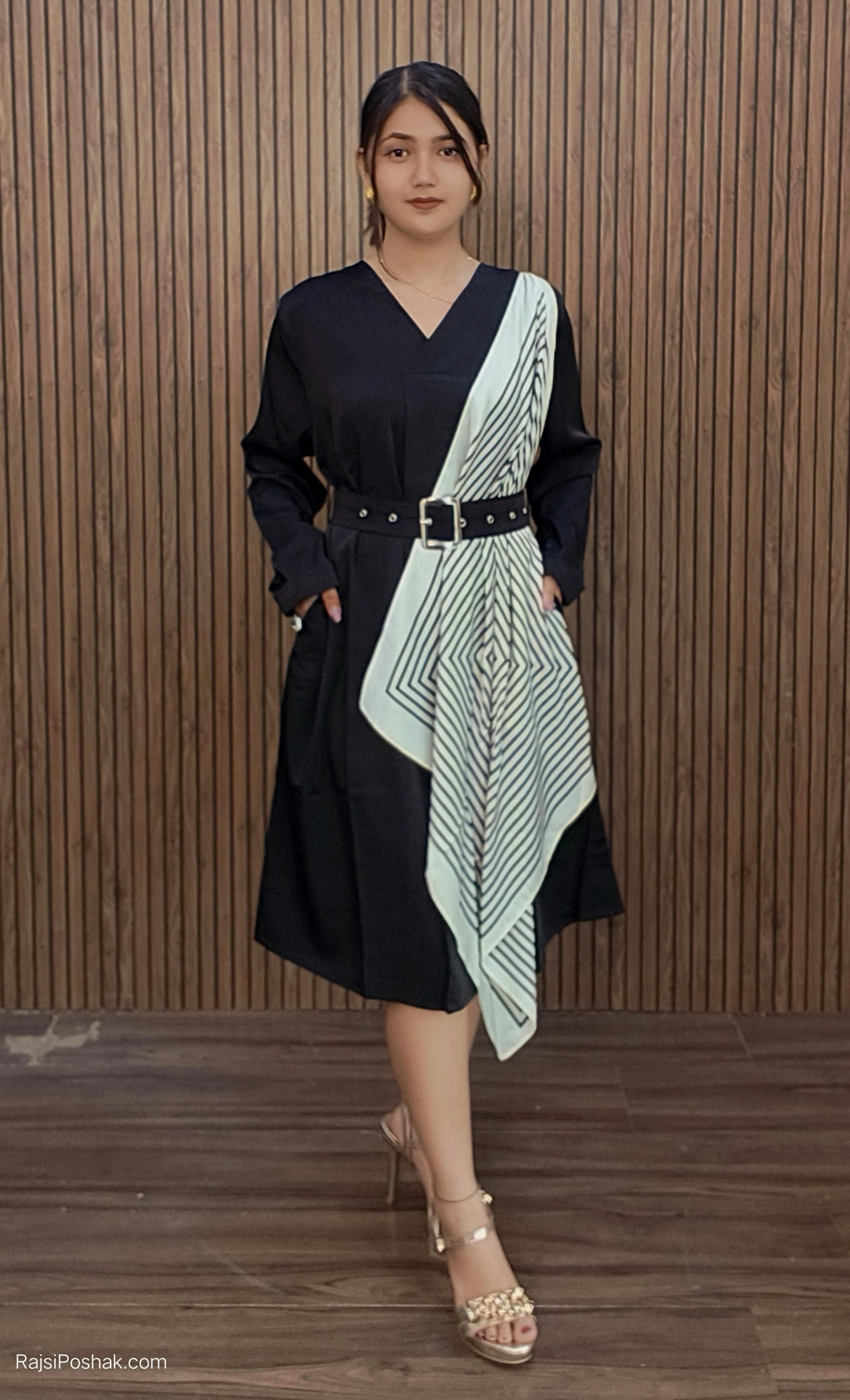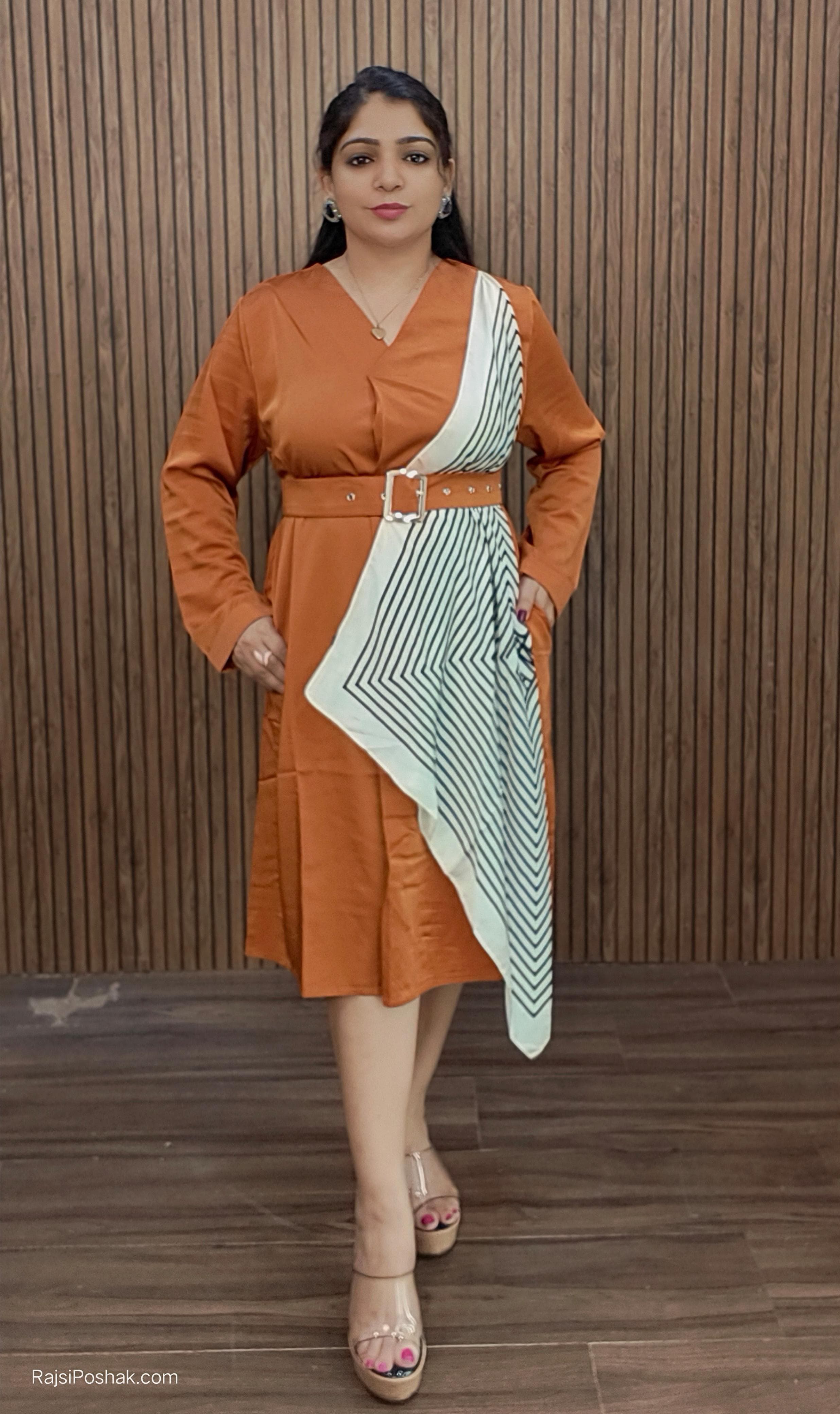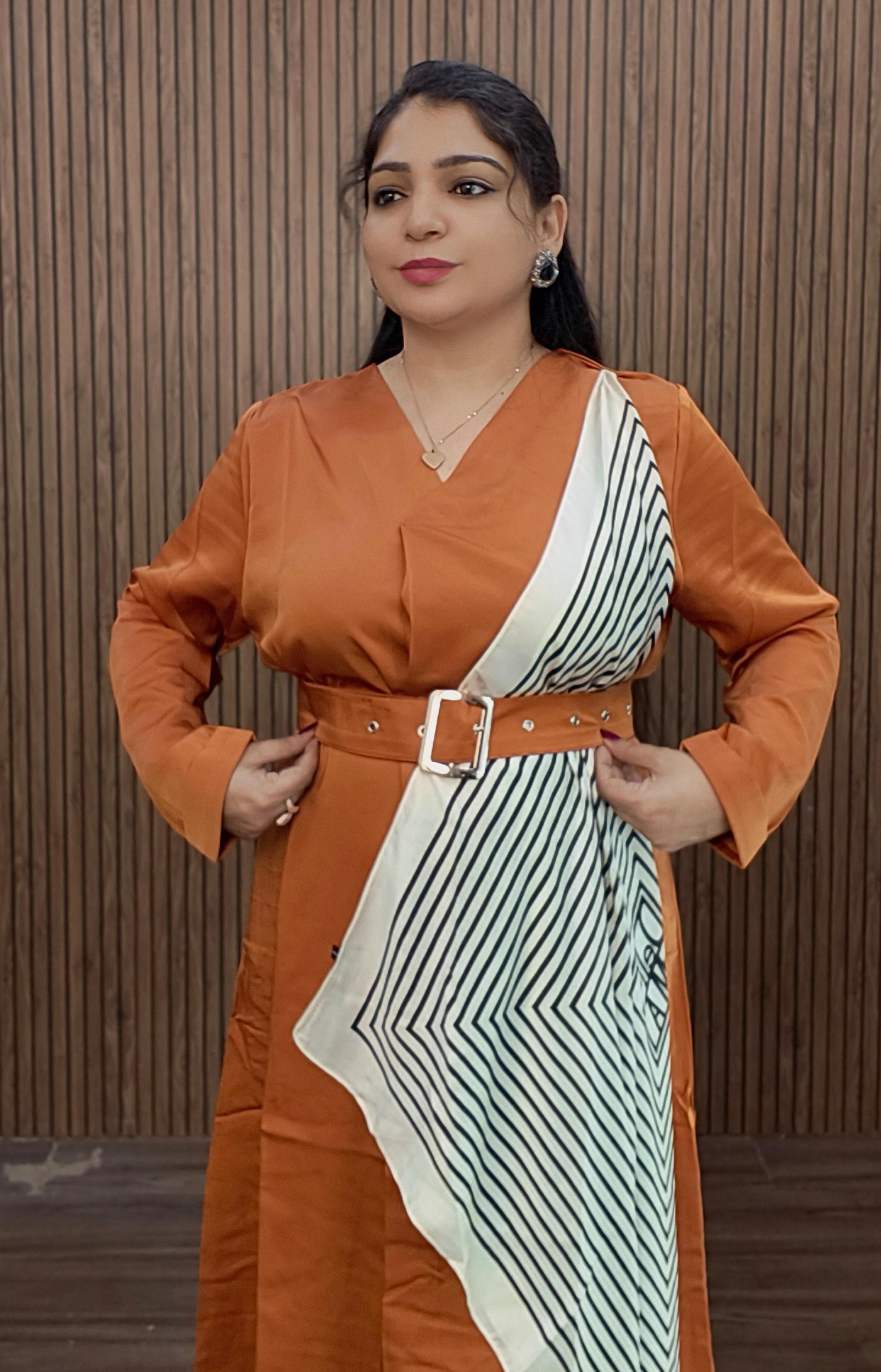A must have CORAL ORANGE & BLACK WRAP 1 PCS. INDO WESTERN DRESS in your wardrobe.