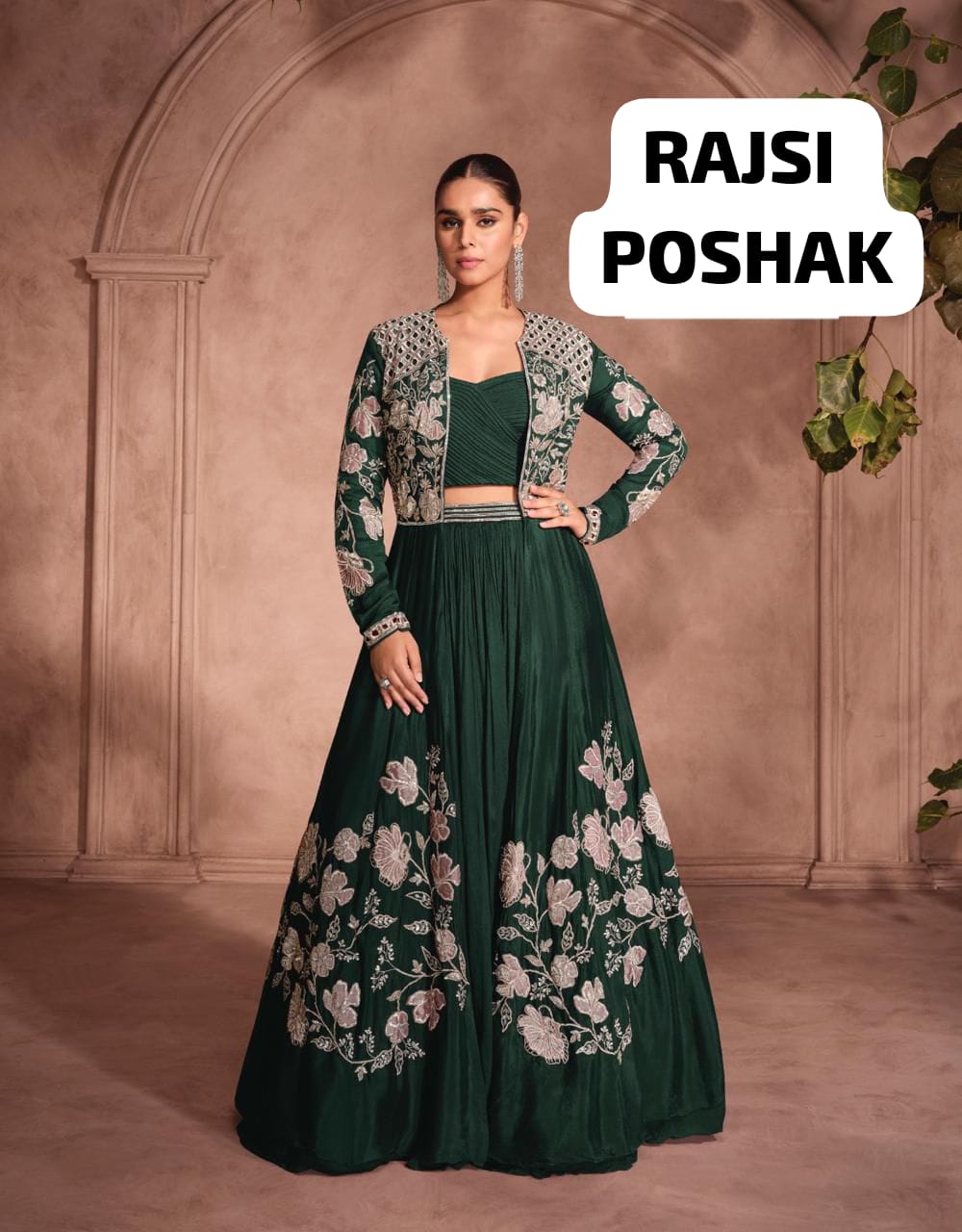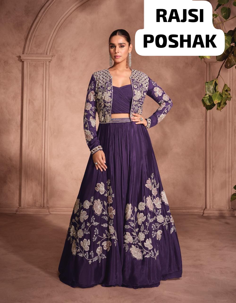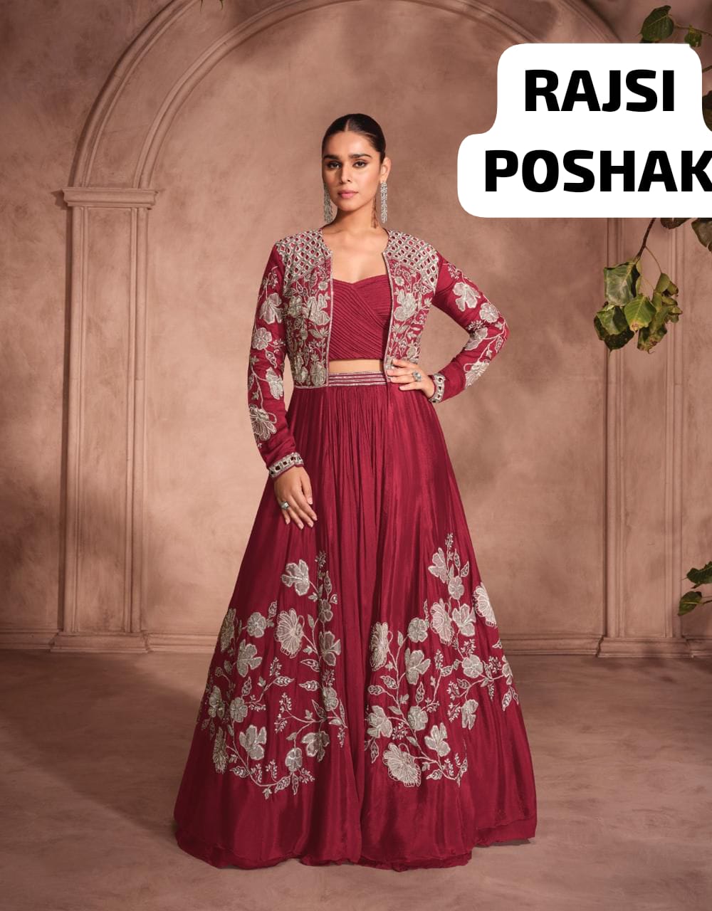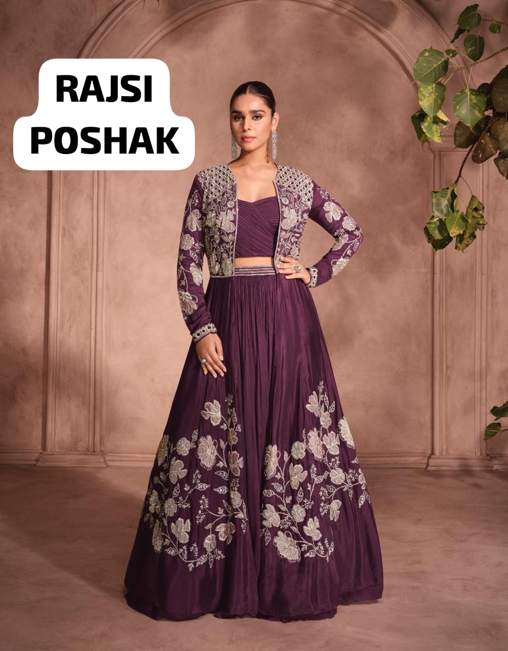 MAROON,GREEN,WINE & PURPLE PURE CHINON INDO WESTERN PARTYWEAR DRESS WITH JACKET