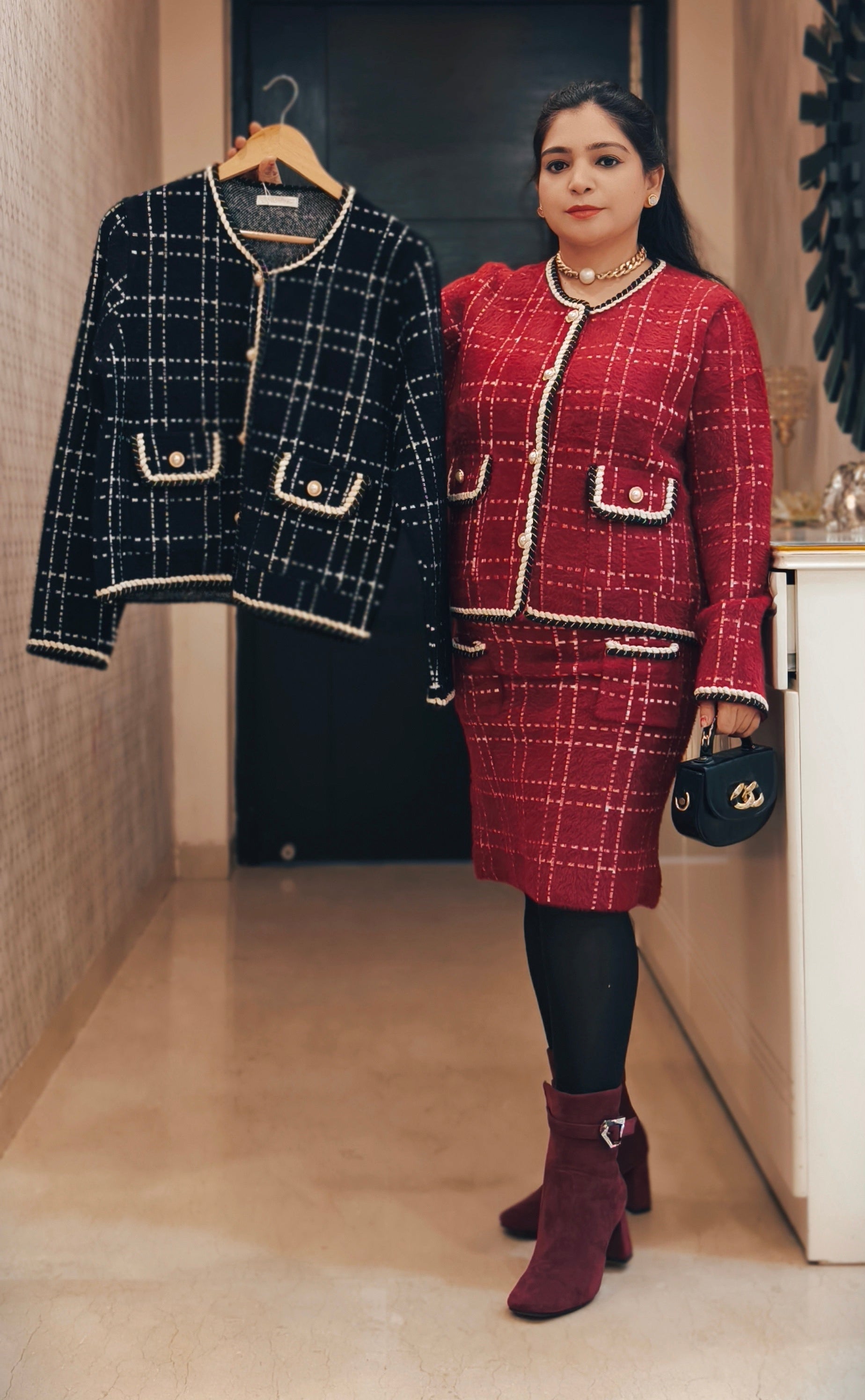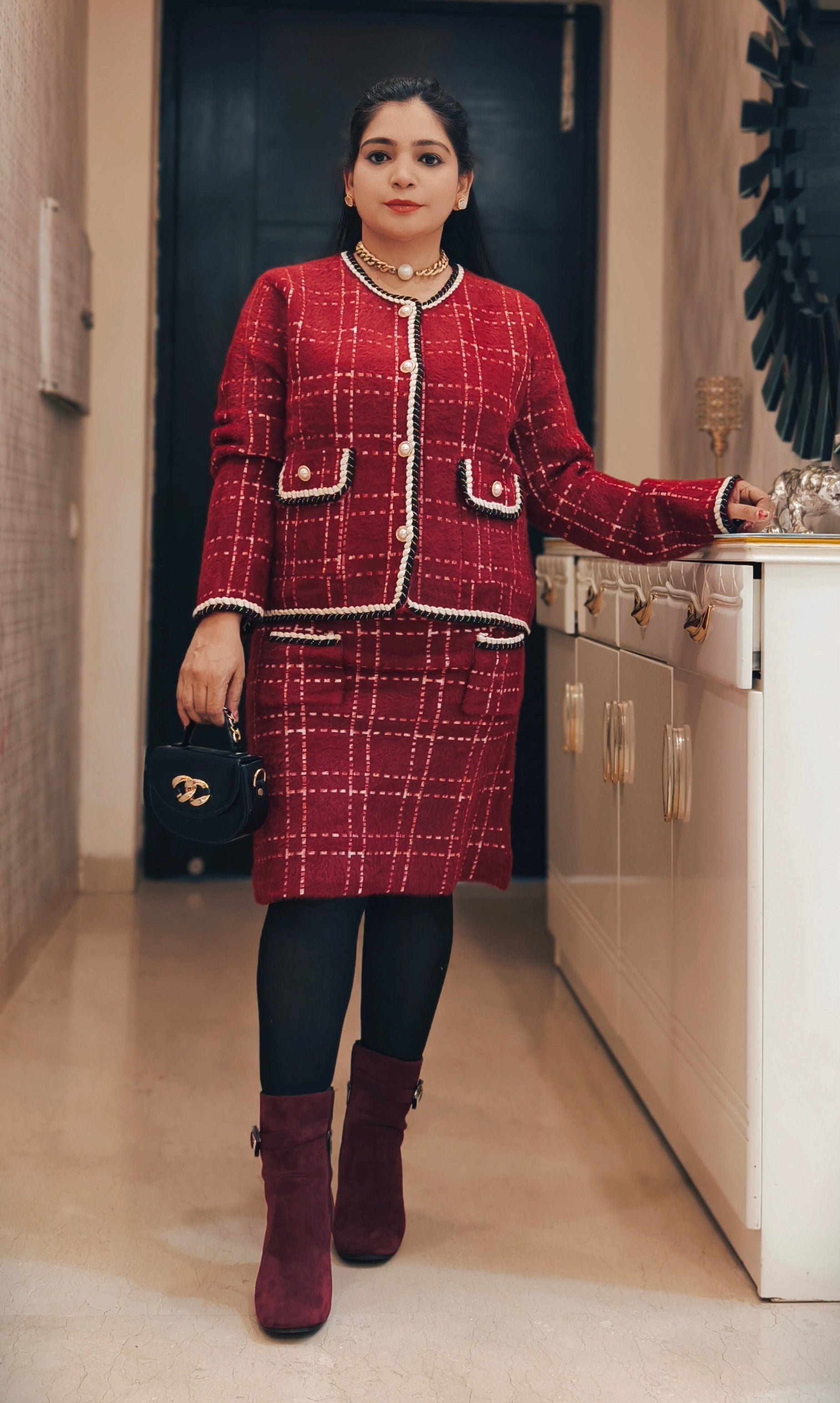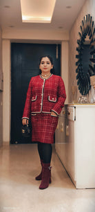 RED AND BLACK IMPORTED STRETCHABLE SKIRT COORD SET