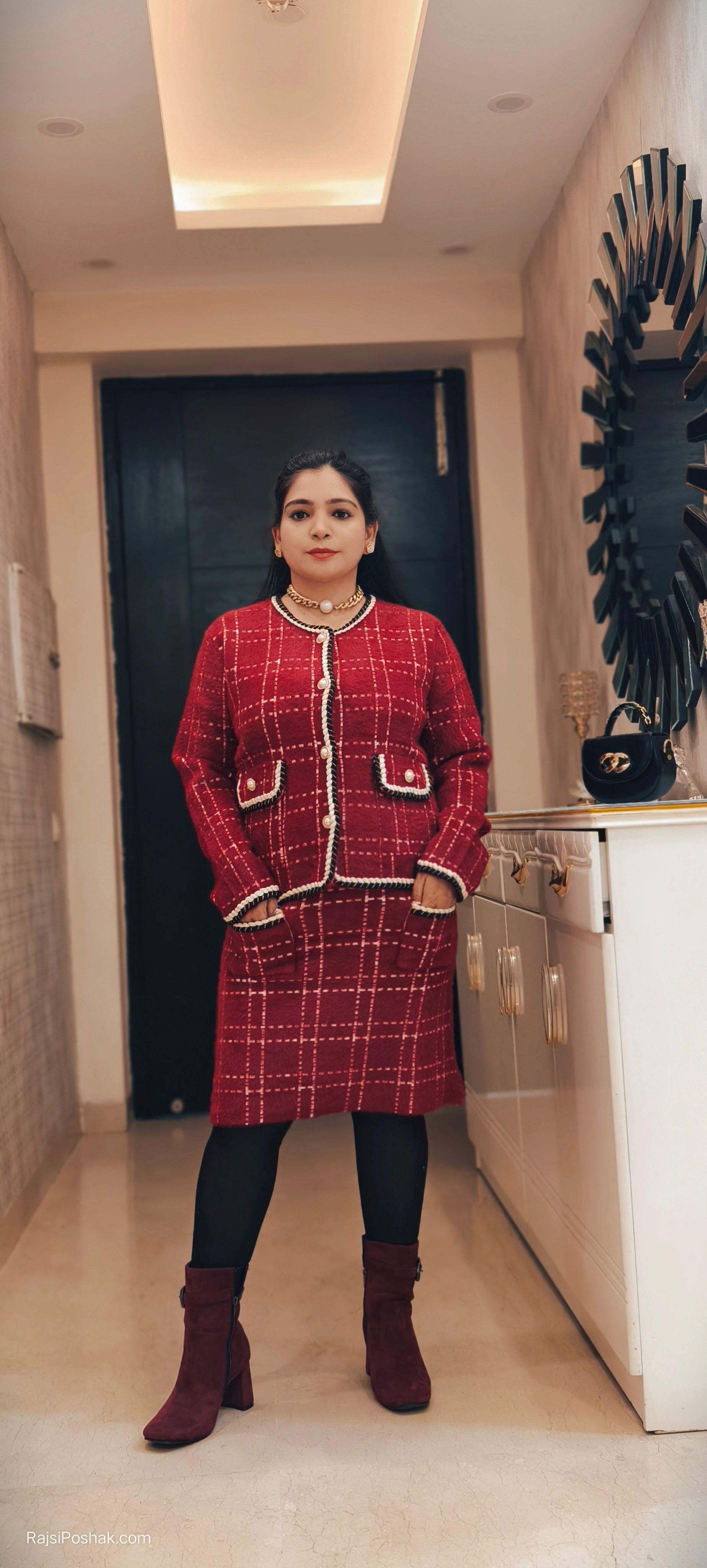 A must have RED AND BLACK IMPORTED STRETCHABLE SKIRT COORD SET in your wardrobe. PARTY WEAR Dress for any special occasion.