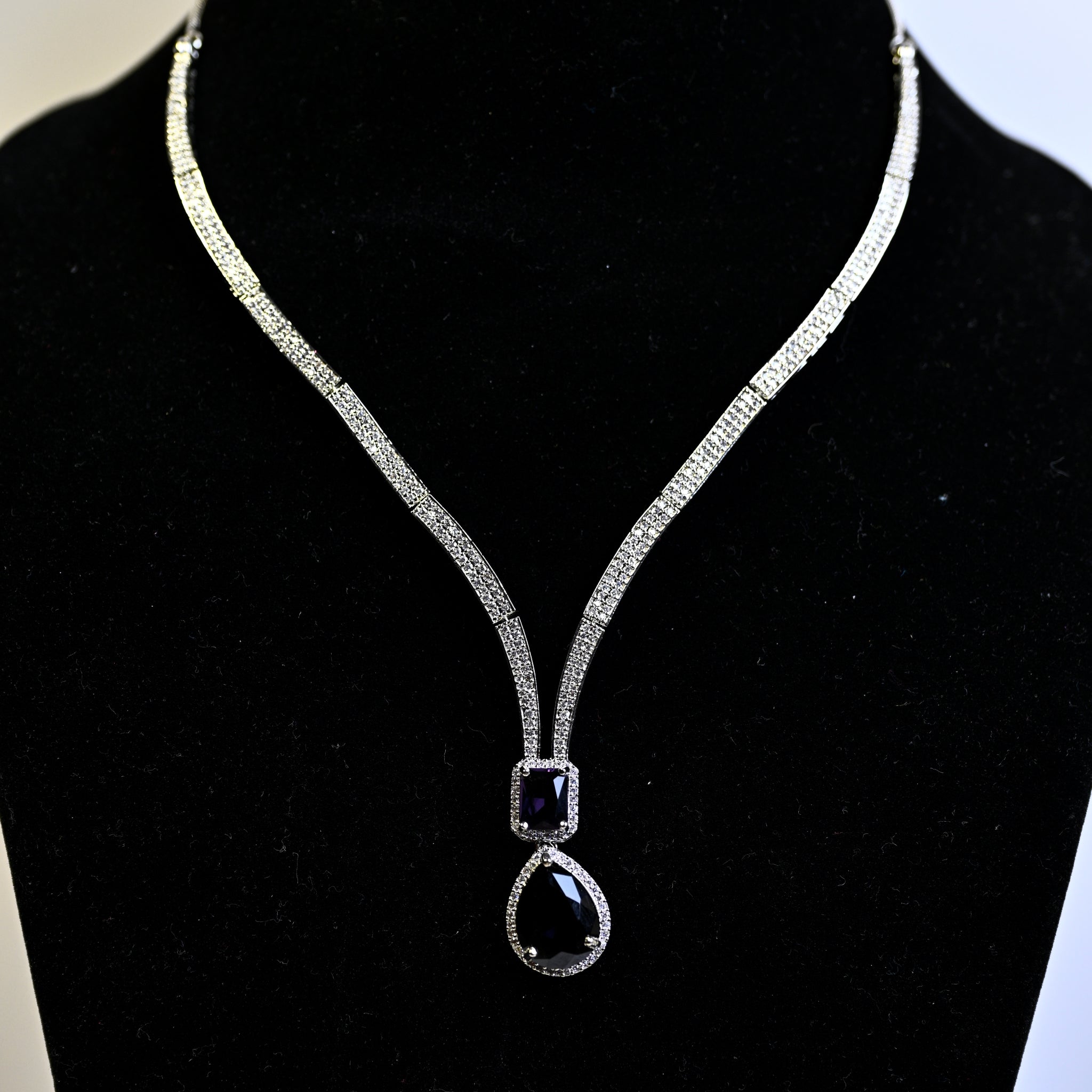 This necklace blends modern aesthetics with a Western-inspired theme, featuring intricate patterns and designs typical of contemporary fashion trends. Crafted from high-quality materials, ensuring durability and a polished finish that enhances its overall appeal. Adorned with AD (American Diamond) stones, providing a brilliant sparkle that mimics the look of real diamonds, adding elegance to the piece.
