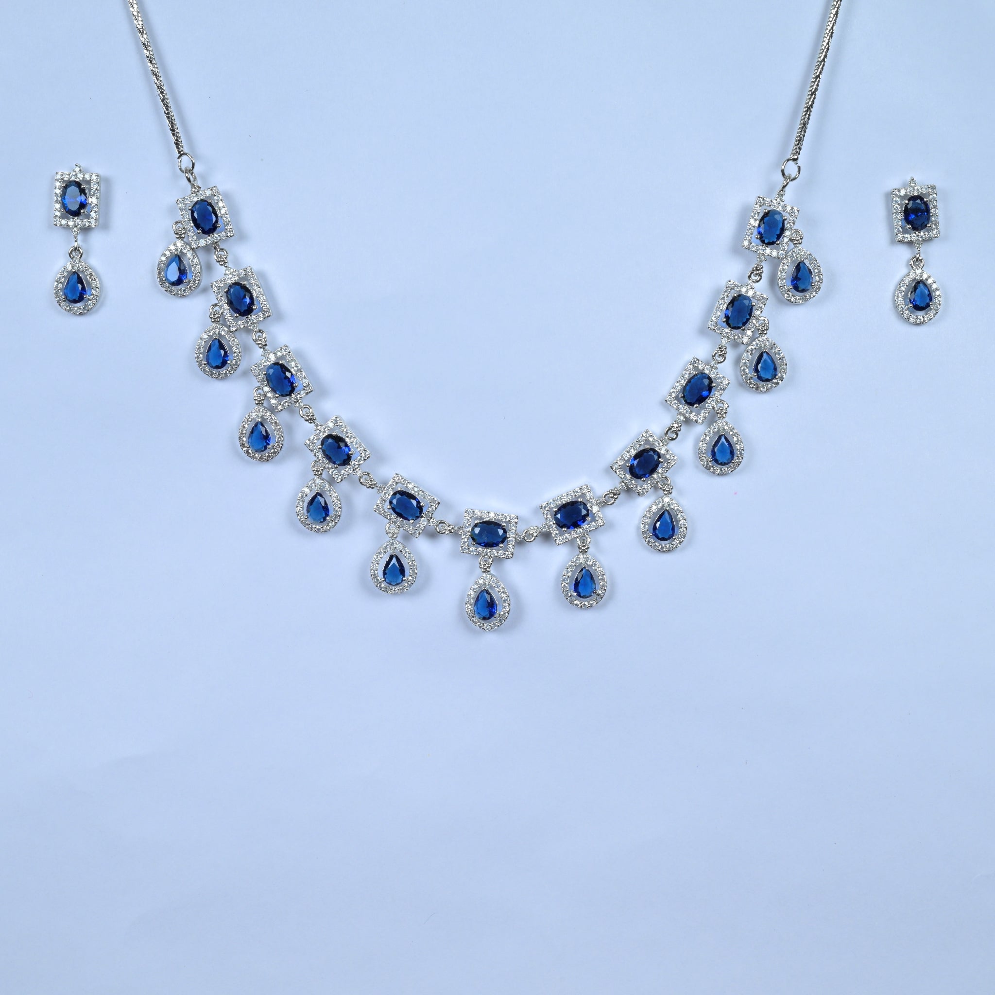Exquisite Silver-Plated Necklace with Blue Diamond Accent