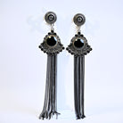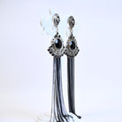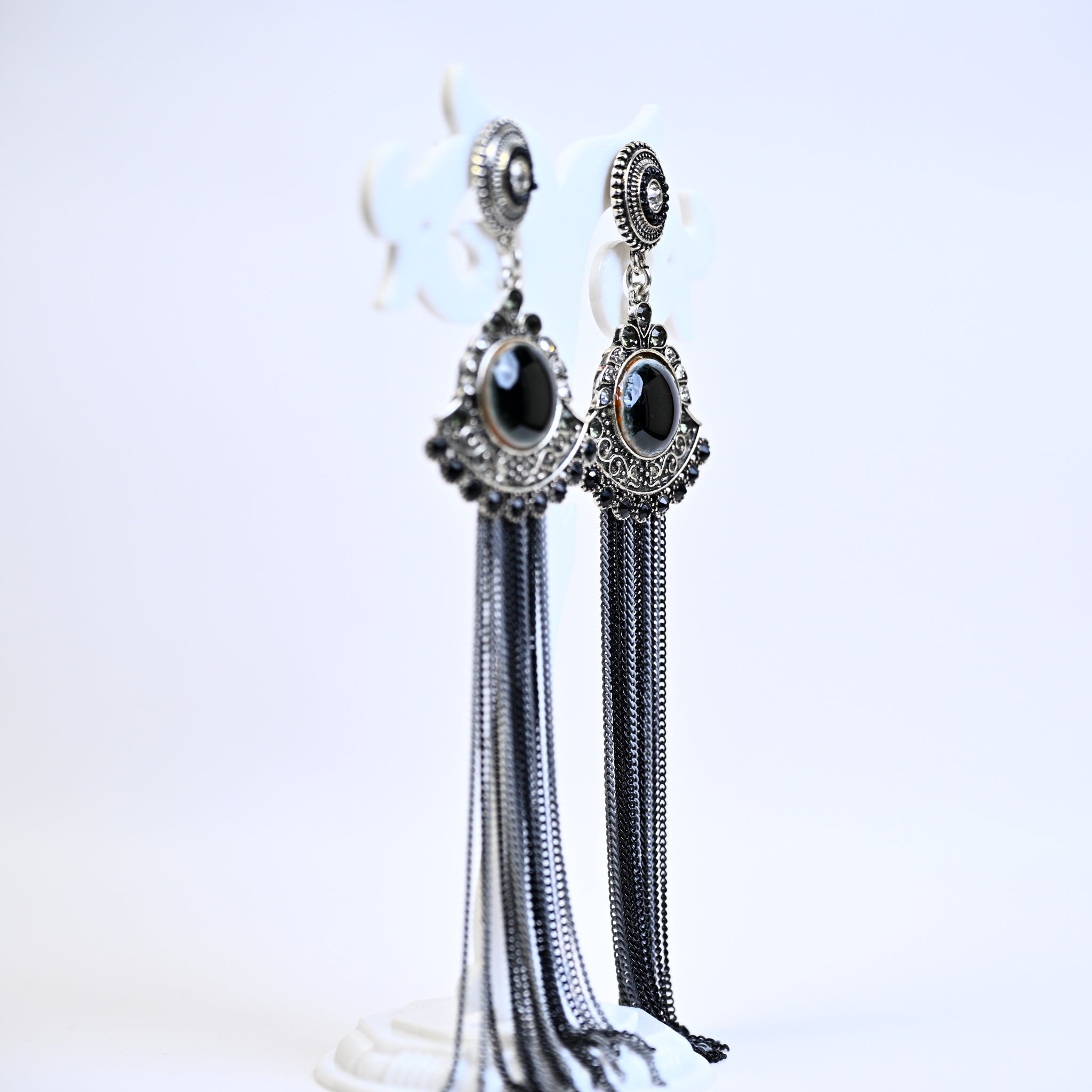 Floral-Shaped Crystal Long Chain Dangler Earrings in Black Gold Plated Brass for Women and Girls