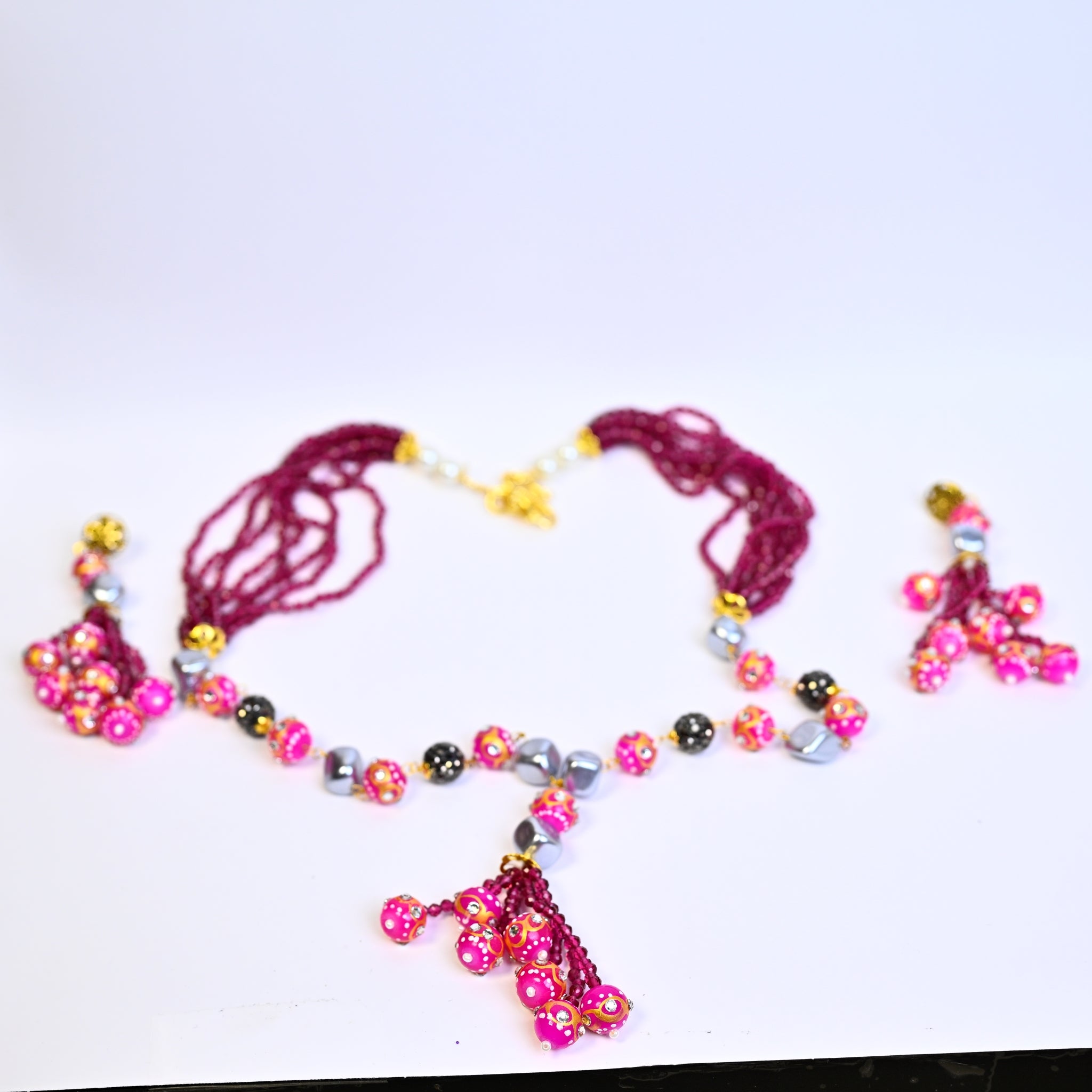 Gold-Plated Amethyst Crystal Necklace and Earring Set