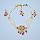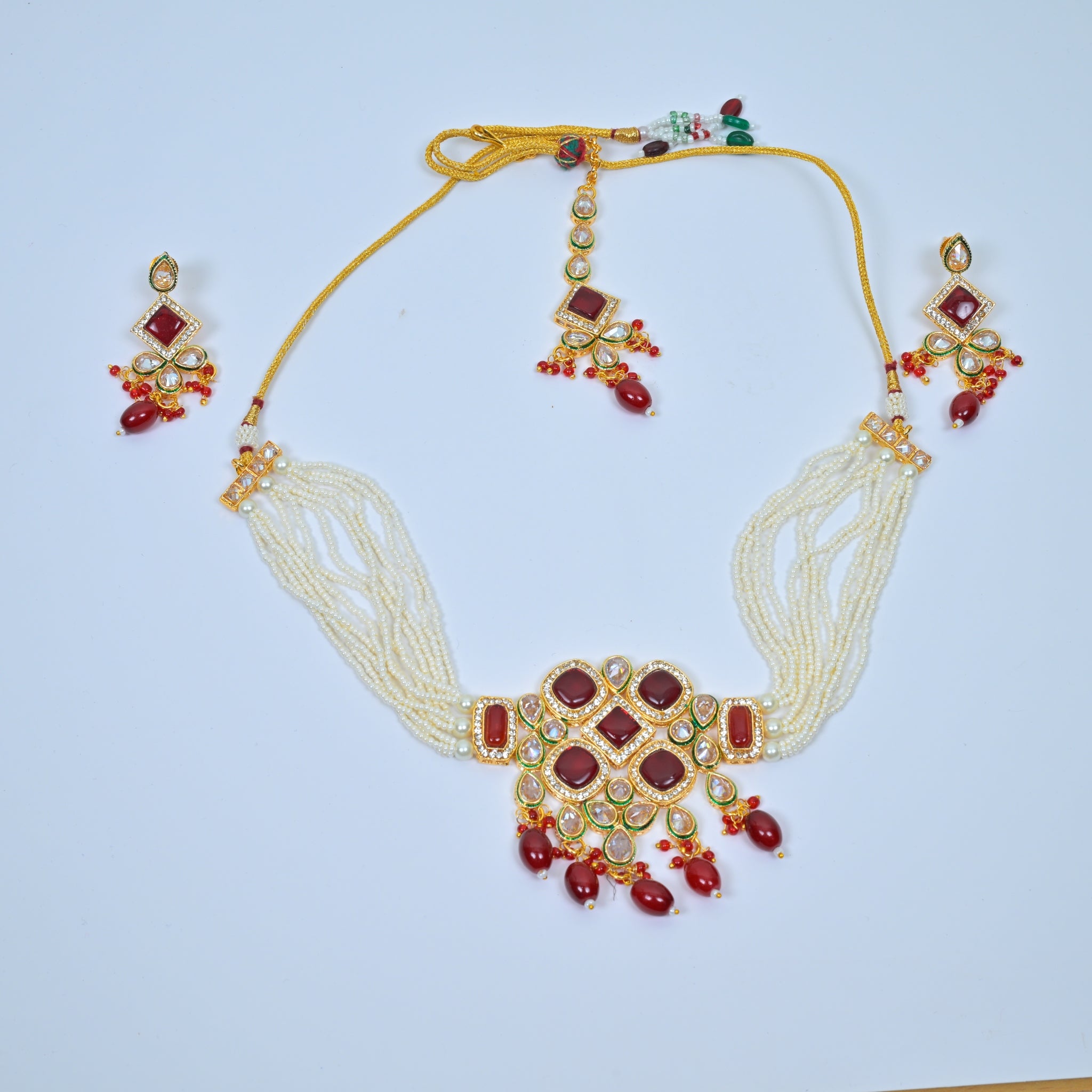GOLD-PLATED ETHNIC PINK STONE AND KUNDAN CHOKER NECKLACE AND EARRINGS SET