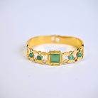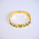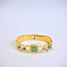 Crafted from genuine malachite stones and high-quality gold, showcasing a combination of natural beauty and luxurious metalwork typical of the 1960s era. The bracelet features malachite stones, known for their vibrant green color and unique banding patterns, set in a classic or vintage-inspired gold setting.
