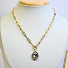 It features a stylish paperclip chain design, characterized by its interlocking rectangular links, which give it a modern and minimalist aesthetic. The necklace is typically designed to rest elegantly on the neckline, providing a versatile and flattering fit.