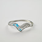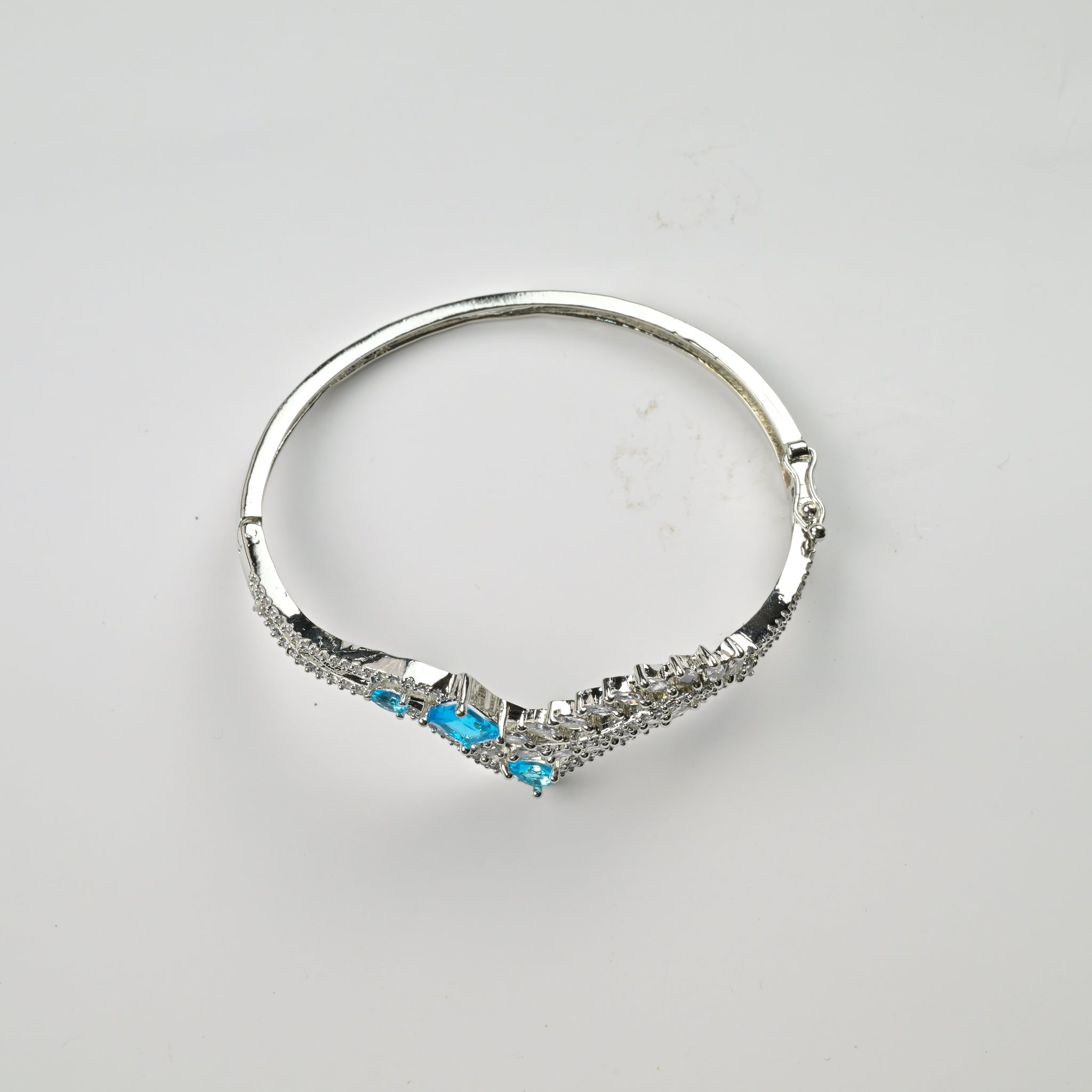 Featuring a sophisticated rhodium-plated finish, this bracelet gleams with the brilliance of American Diamond accents, offering a luxurious and contemporary touch. The bangle-style design ensures a classic yet modern look, making it perfect for both formal occasions and everyday elegance.