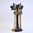 Crafted from high-quality alloy, plated with luxurious gold to enhance durability and provide a polished finish. Adorned with white pearls, known for their classic and timeless appeal, adding elegance and sophistication to the earrings. The earrings feature a traditional drop style, showcasing the pearls delicately suspended from the gold-plated alloy setting.
