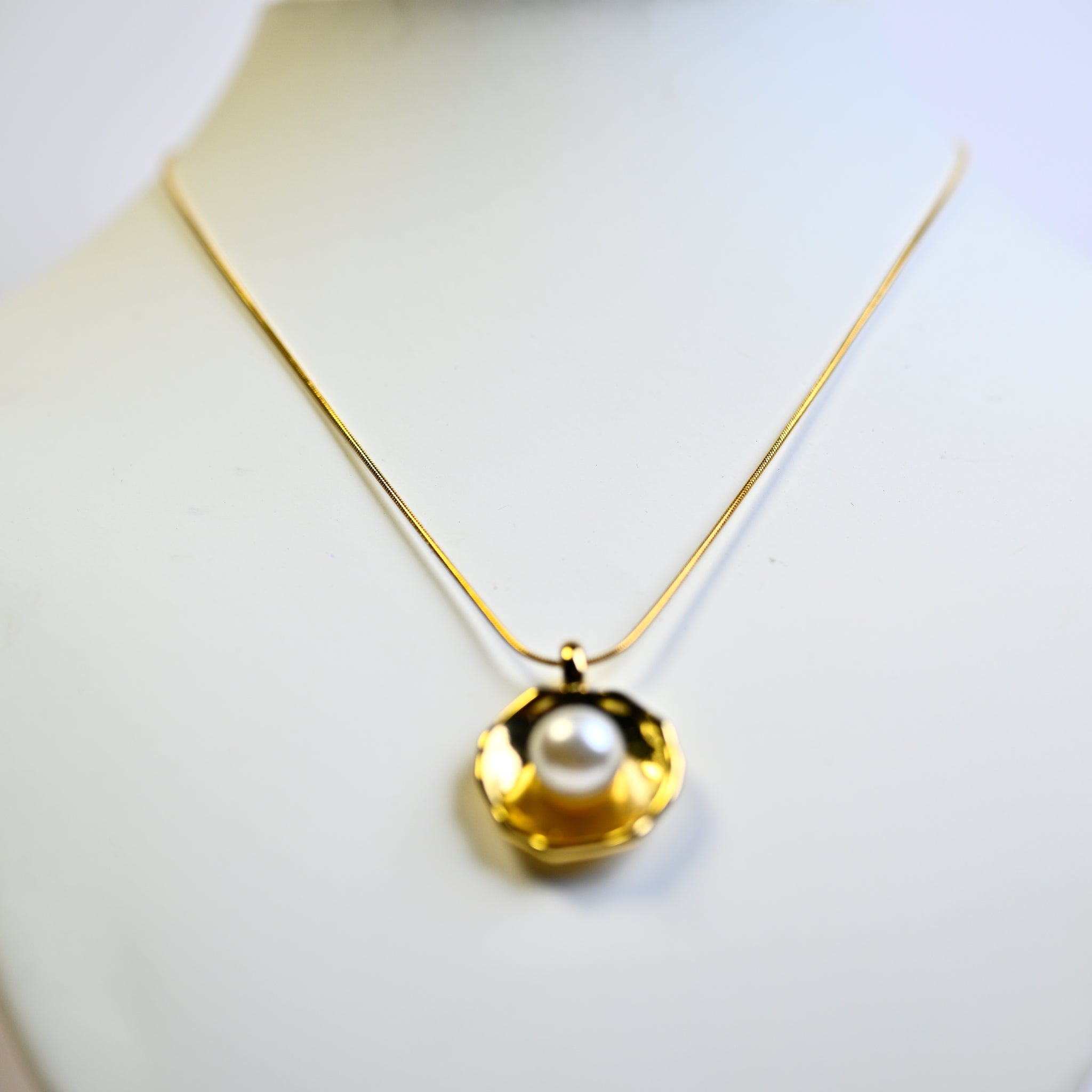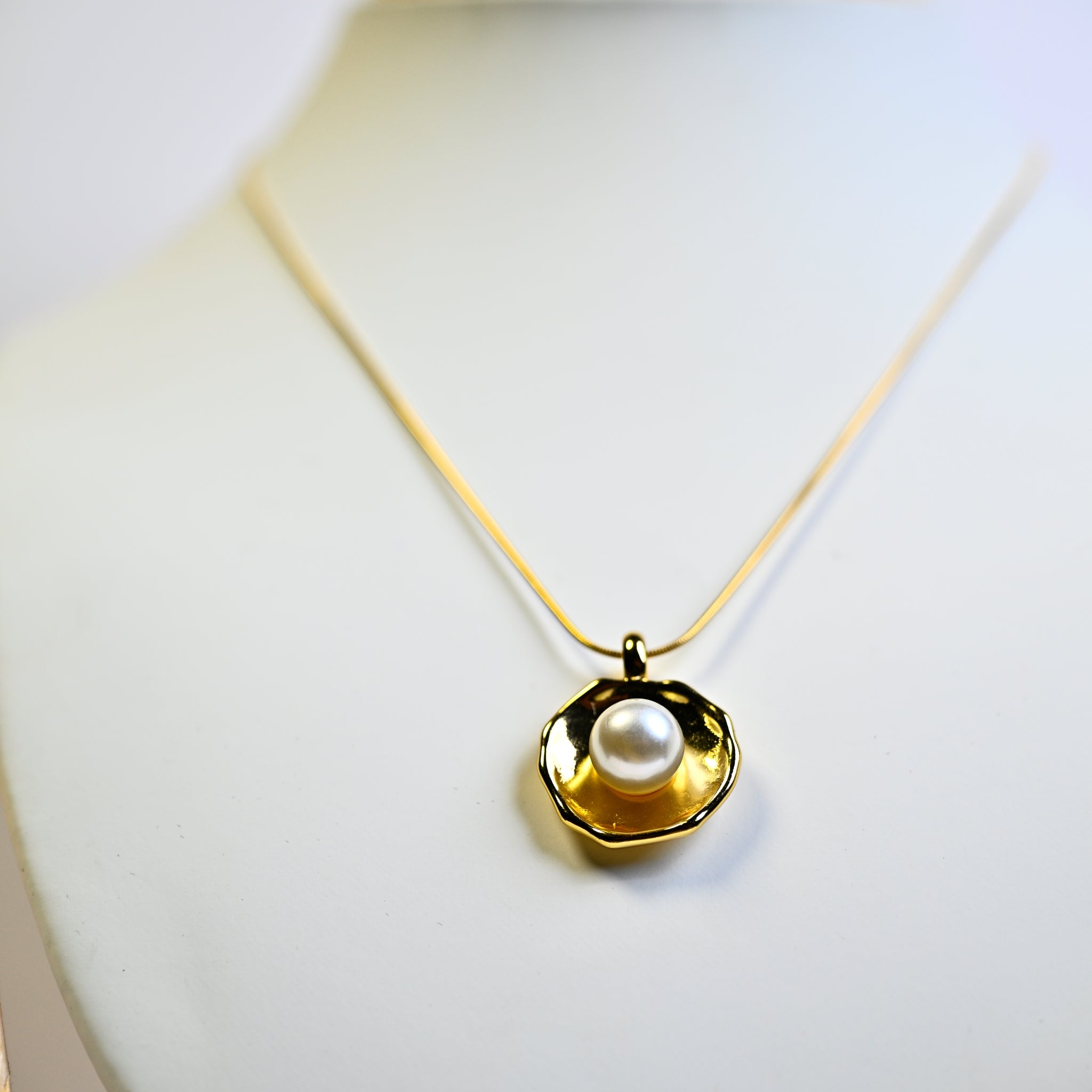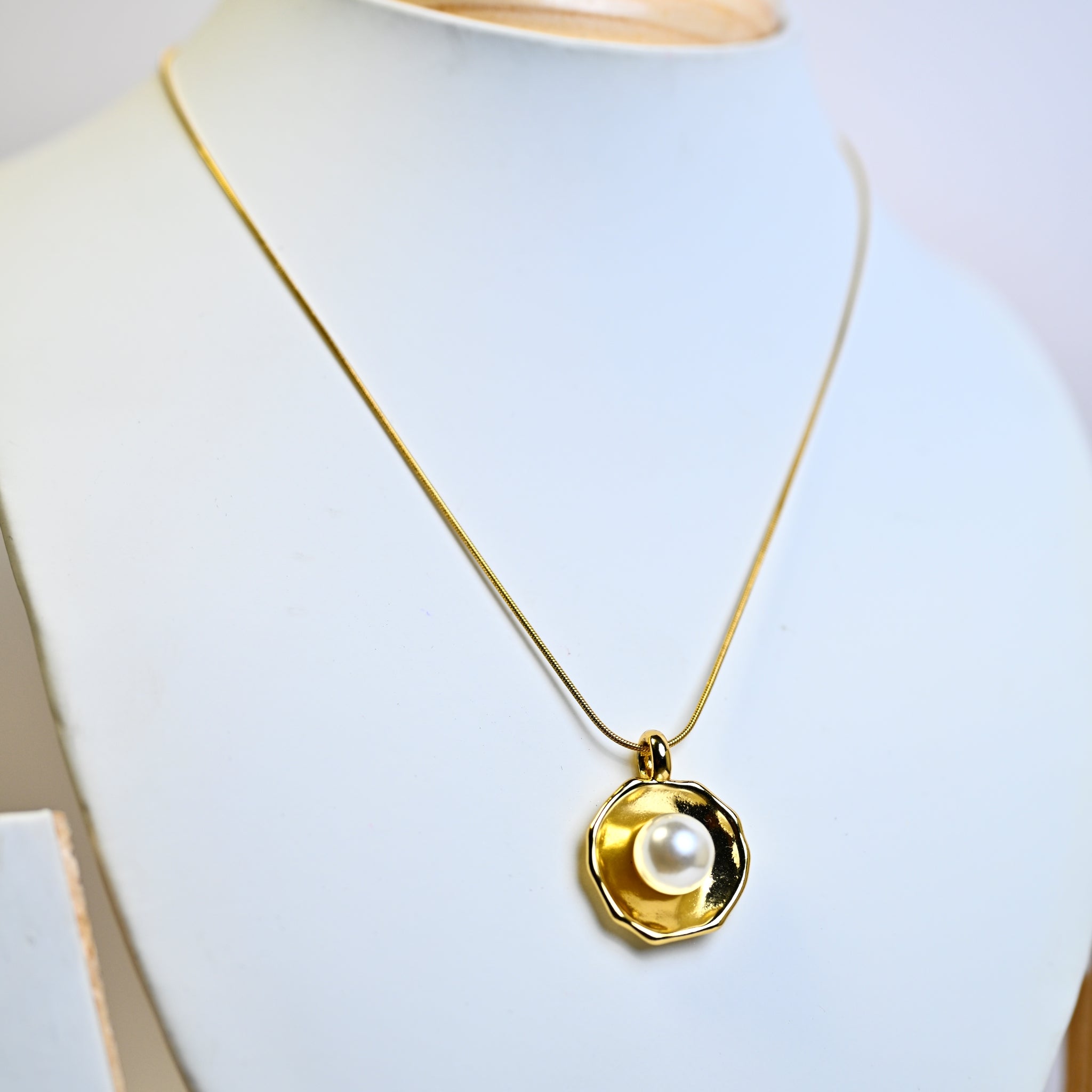 Necklace with Faux Pearl Pendant in Gold Tone