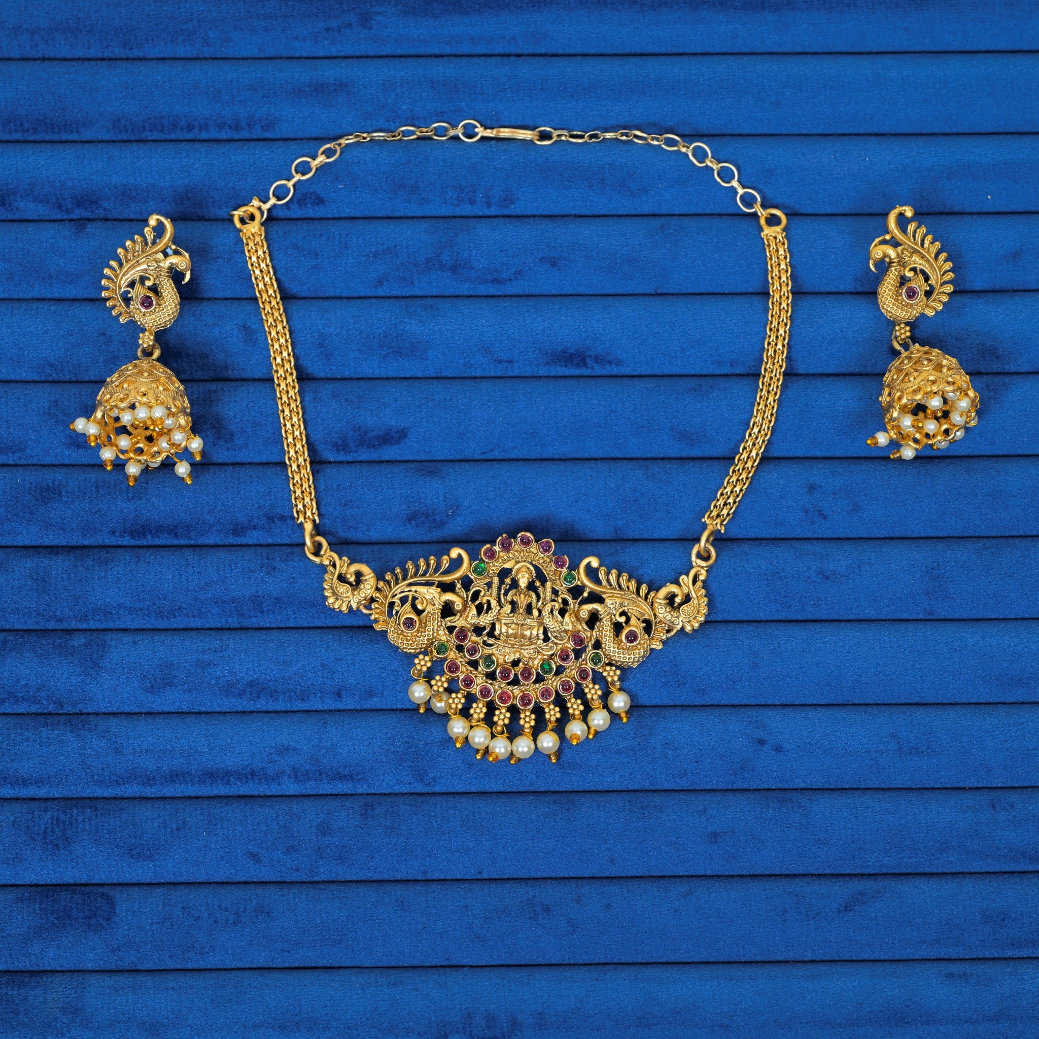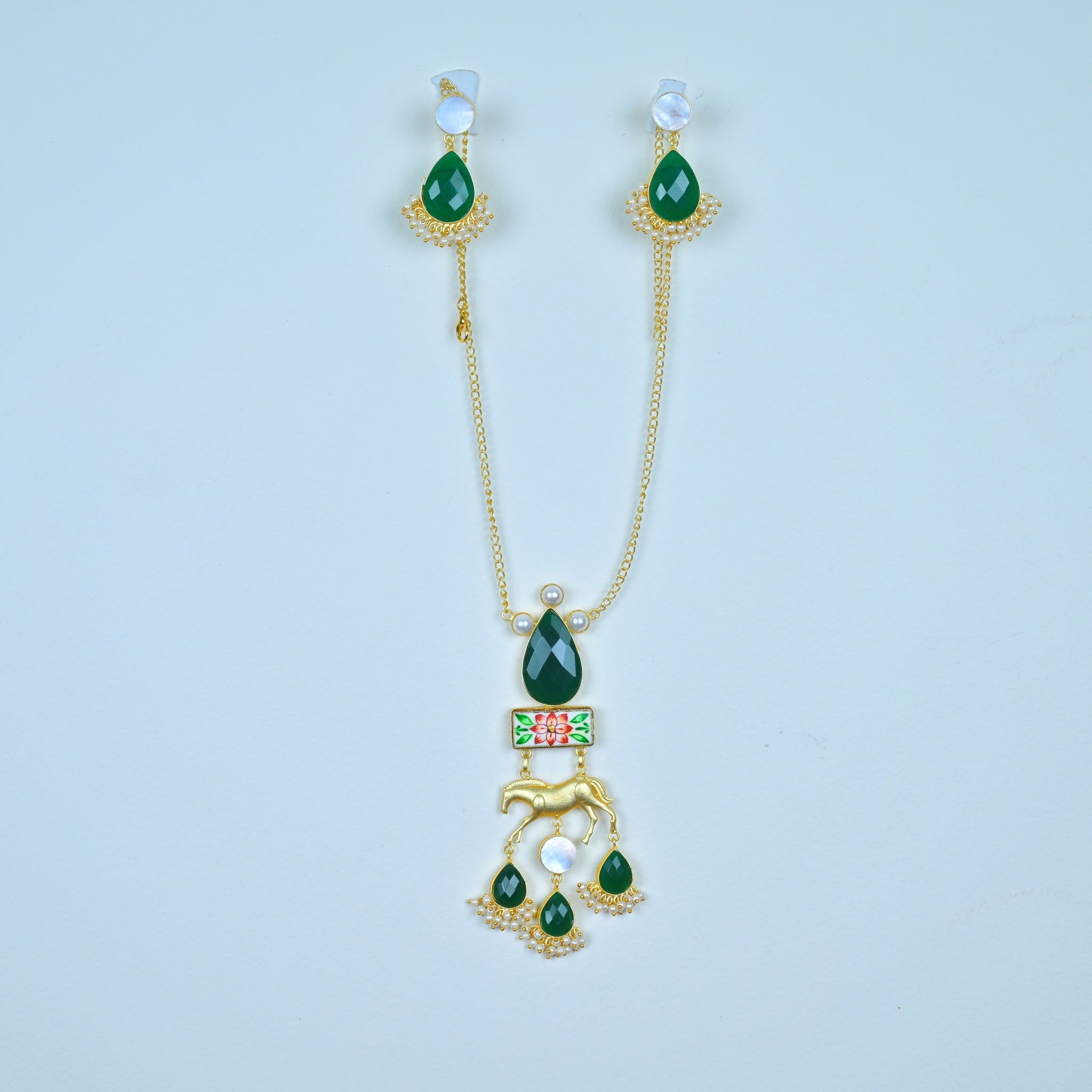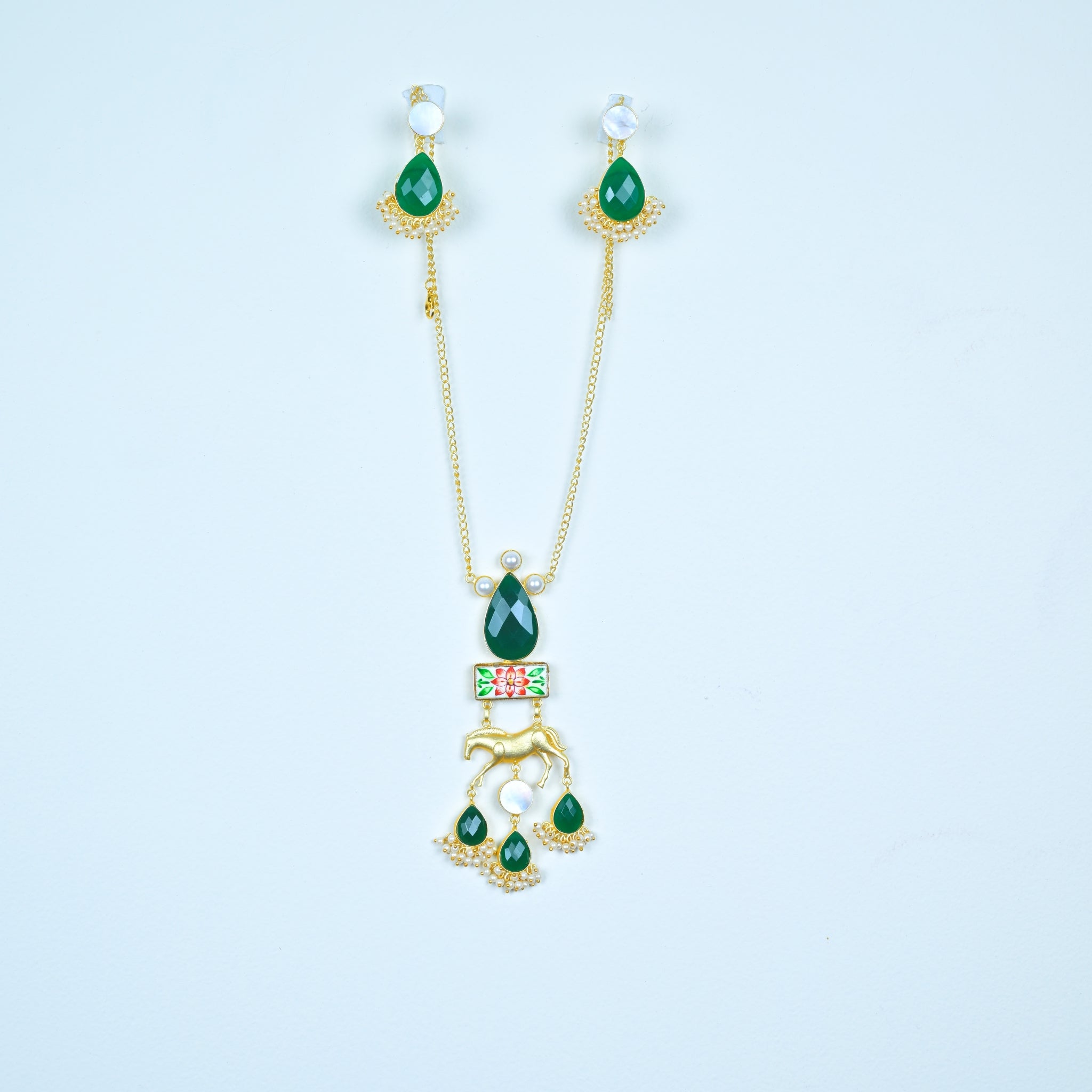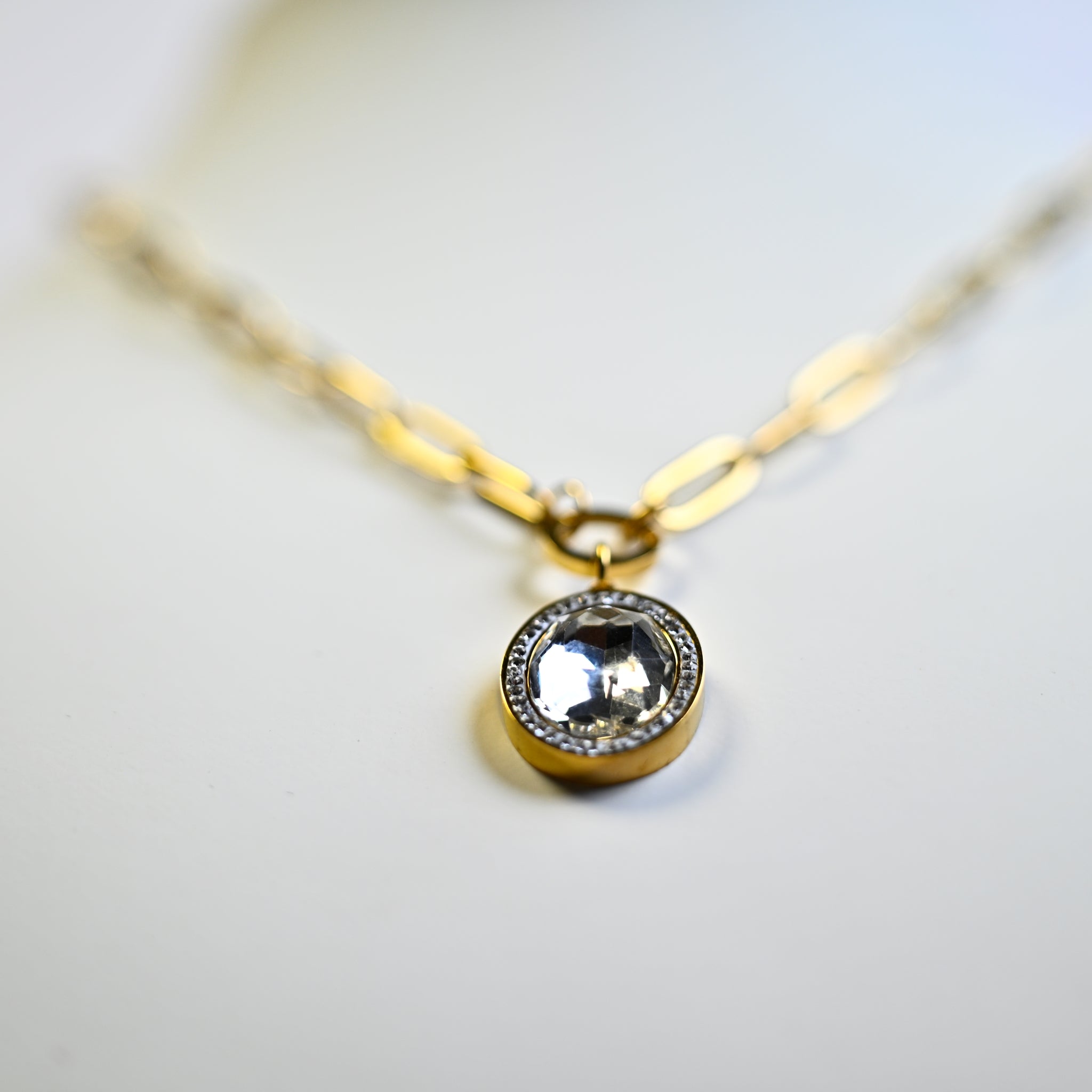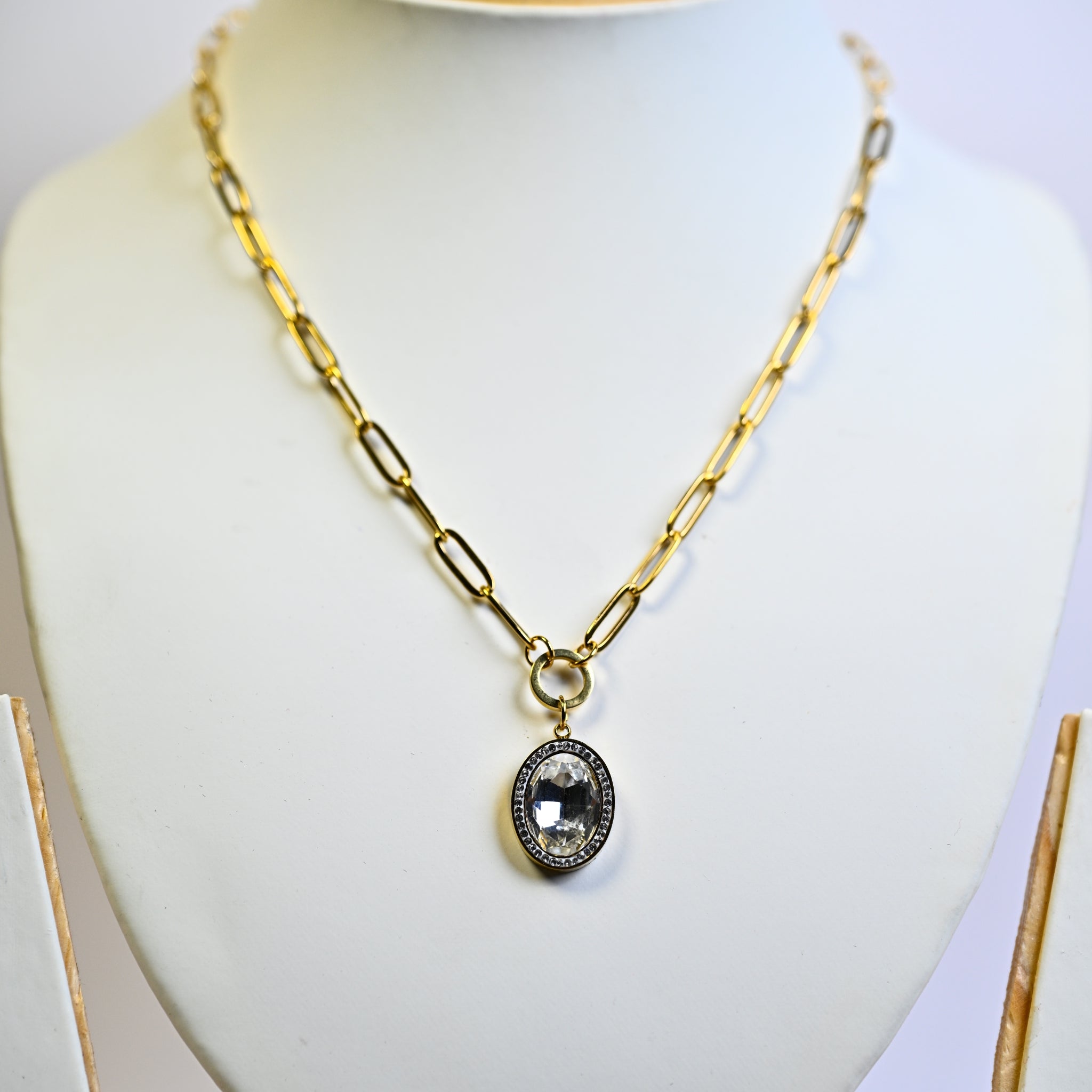 Stone-Studded Pendant with Gold-Plated Chain