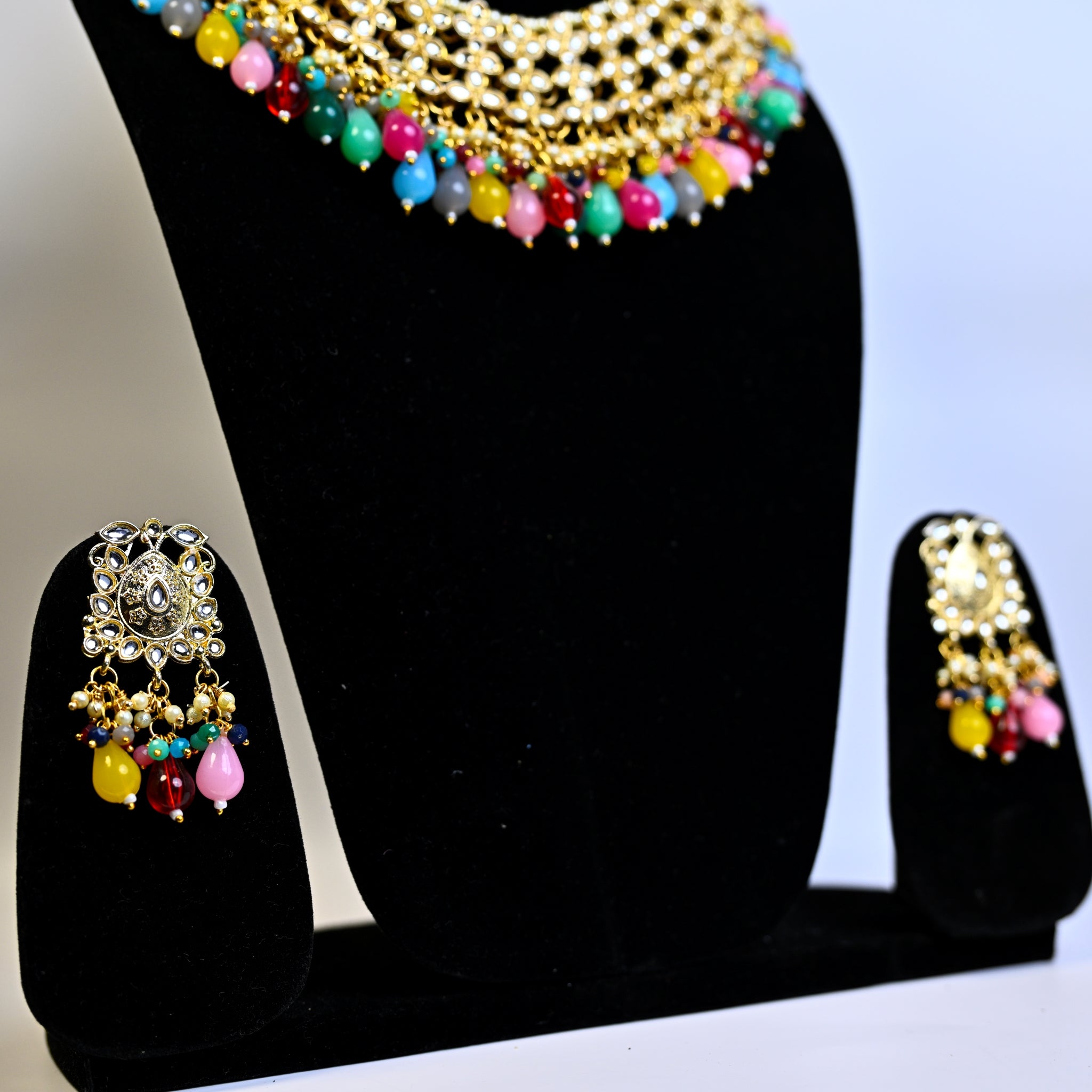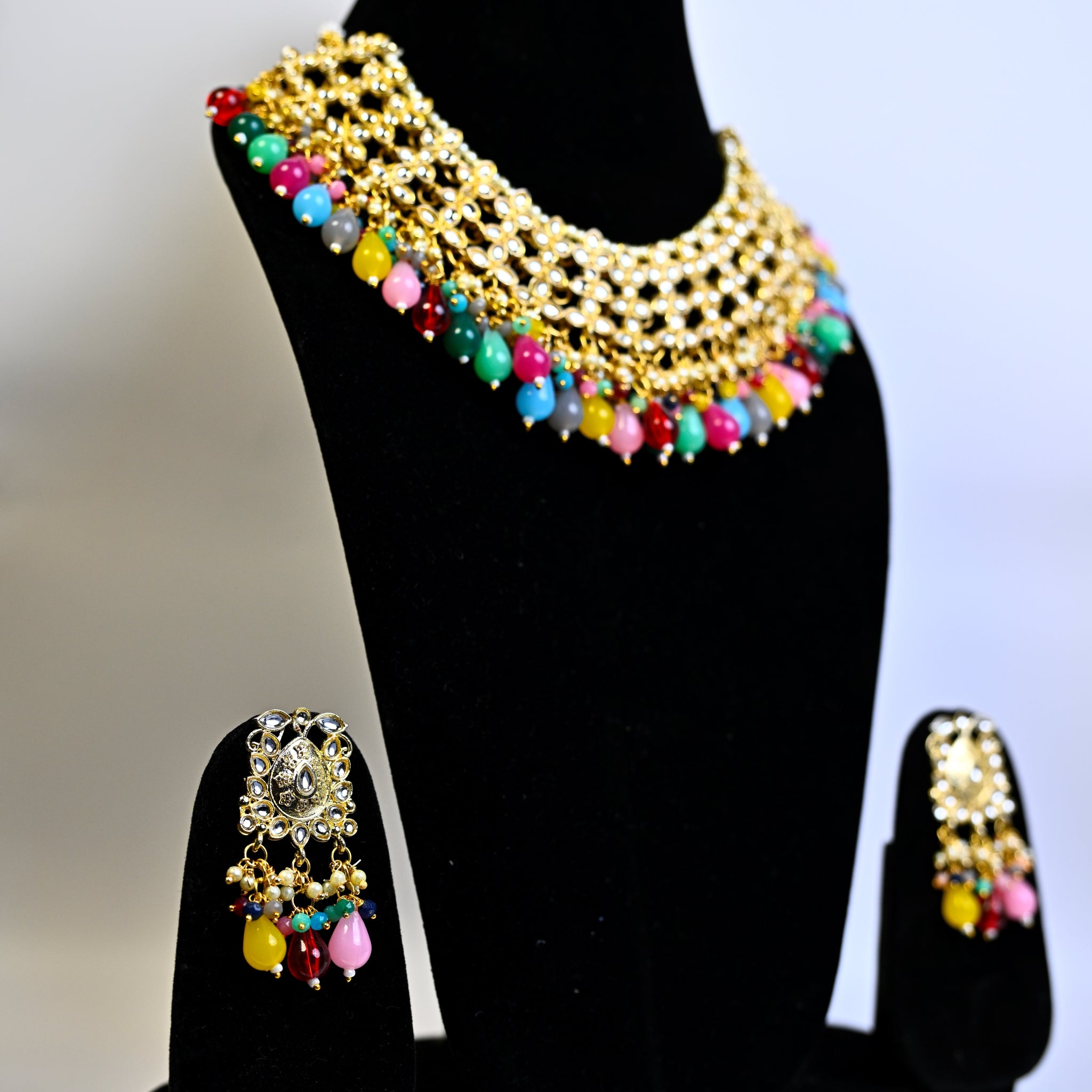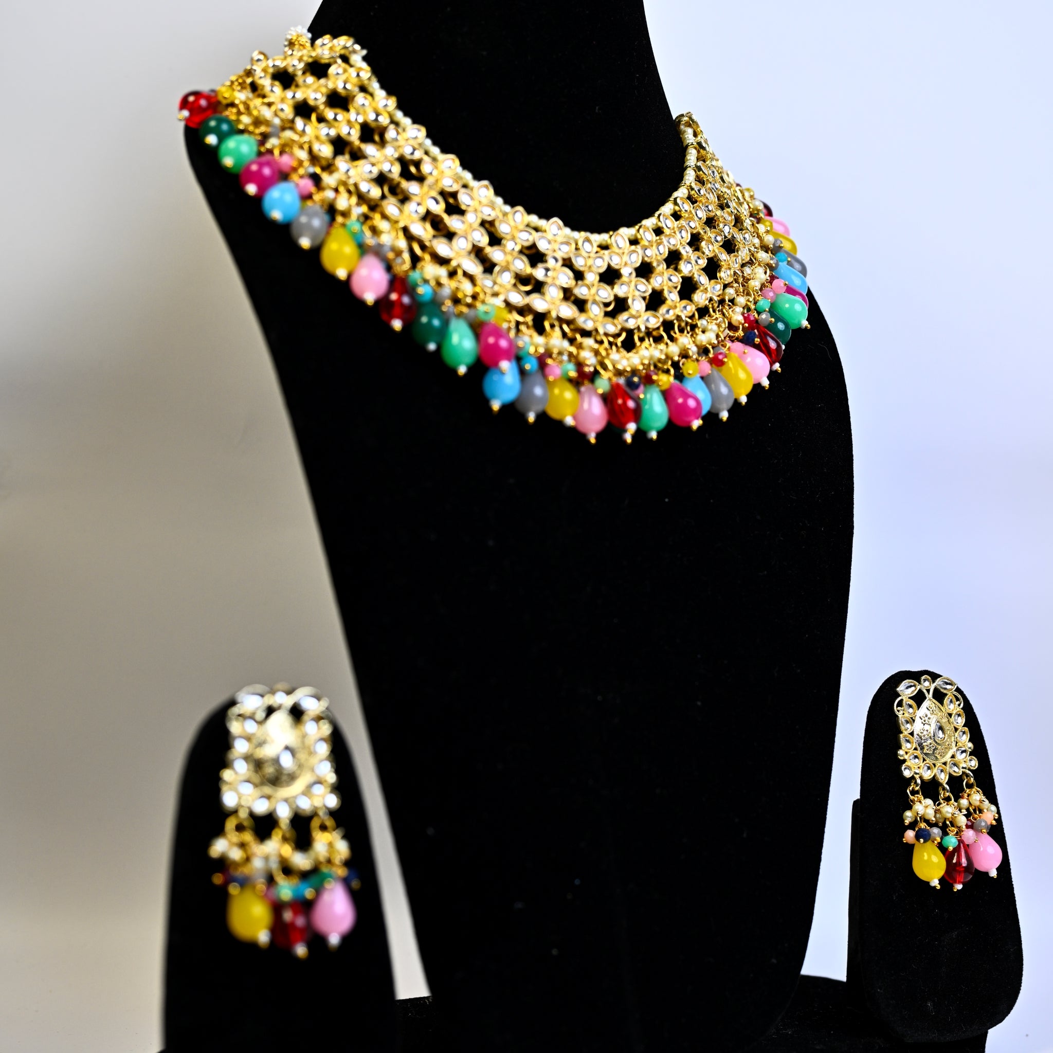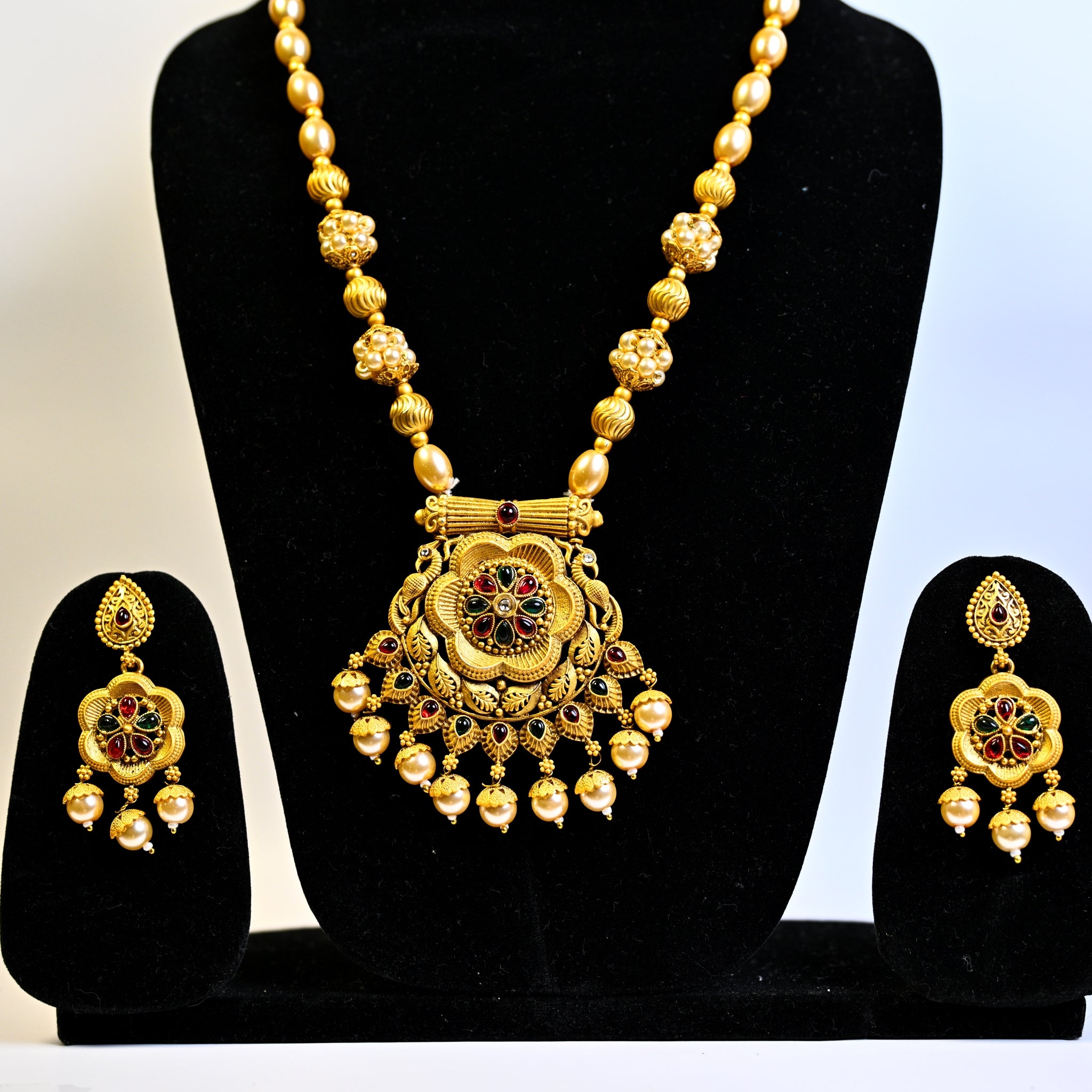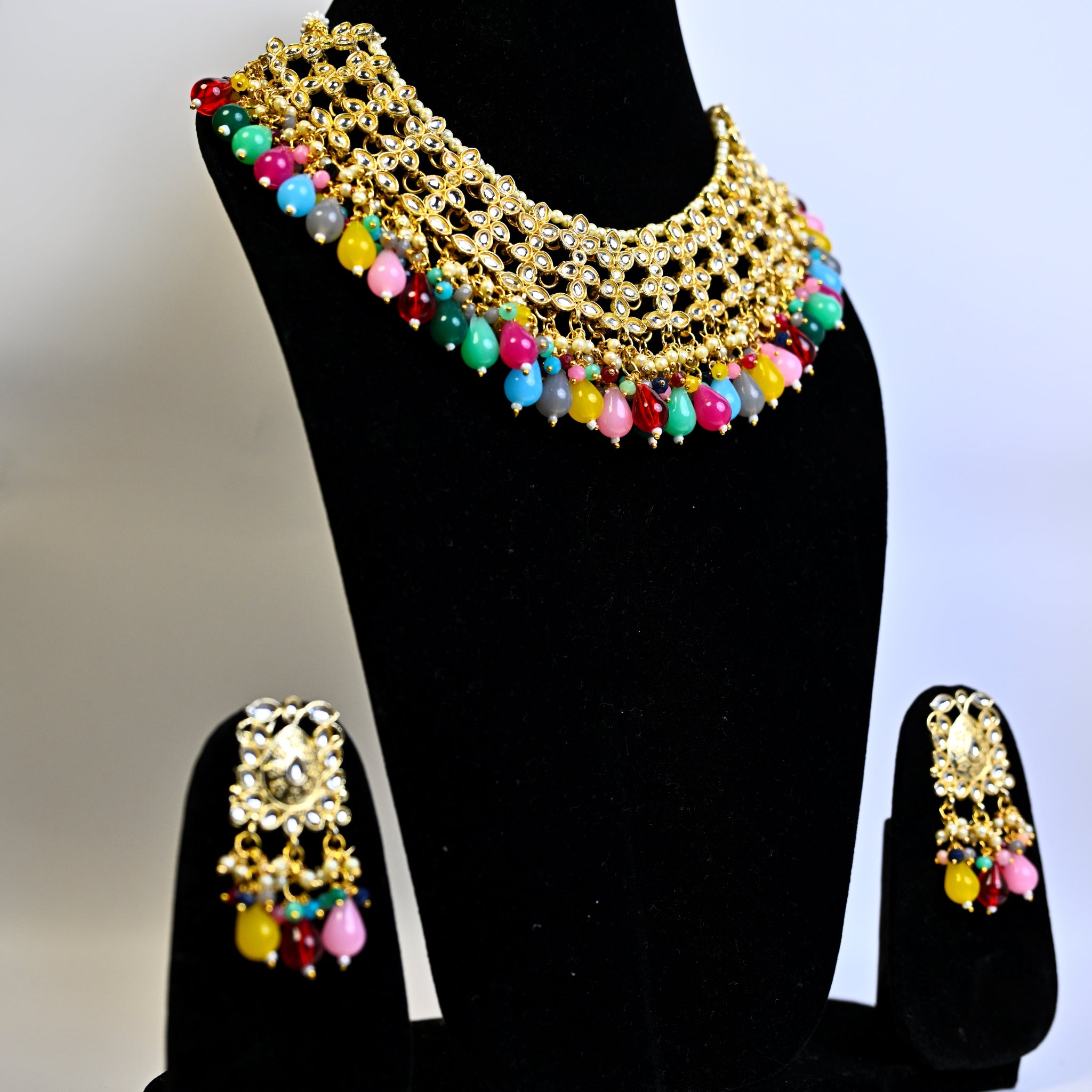 Jewellery Gold Plated Kundan Stone & Beads Necklace Set
