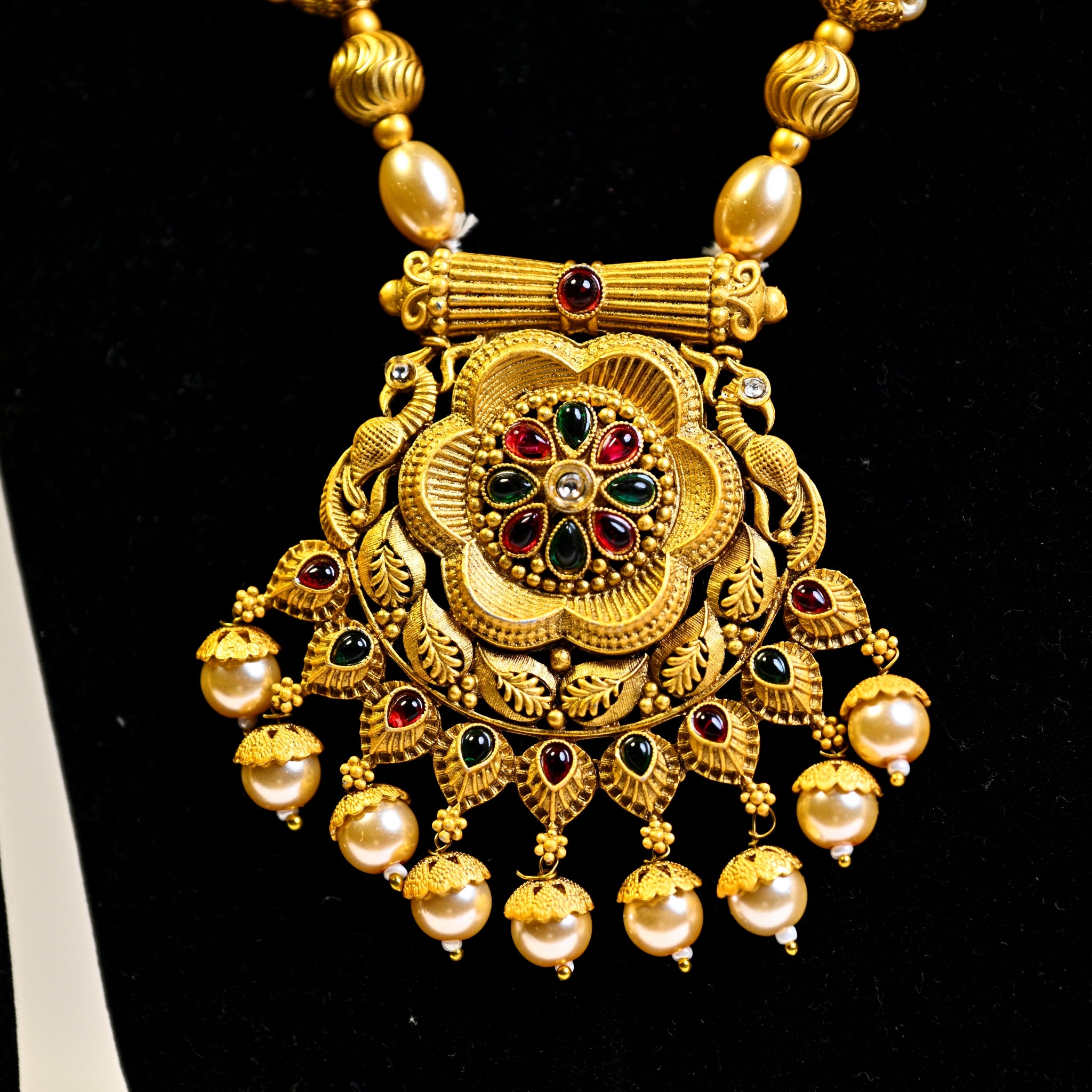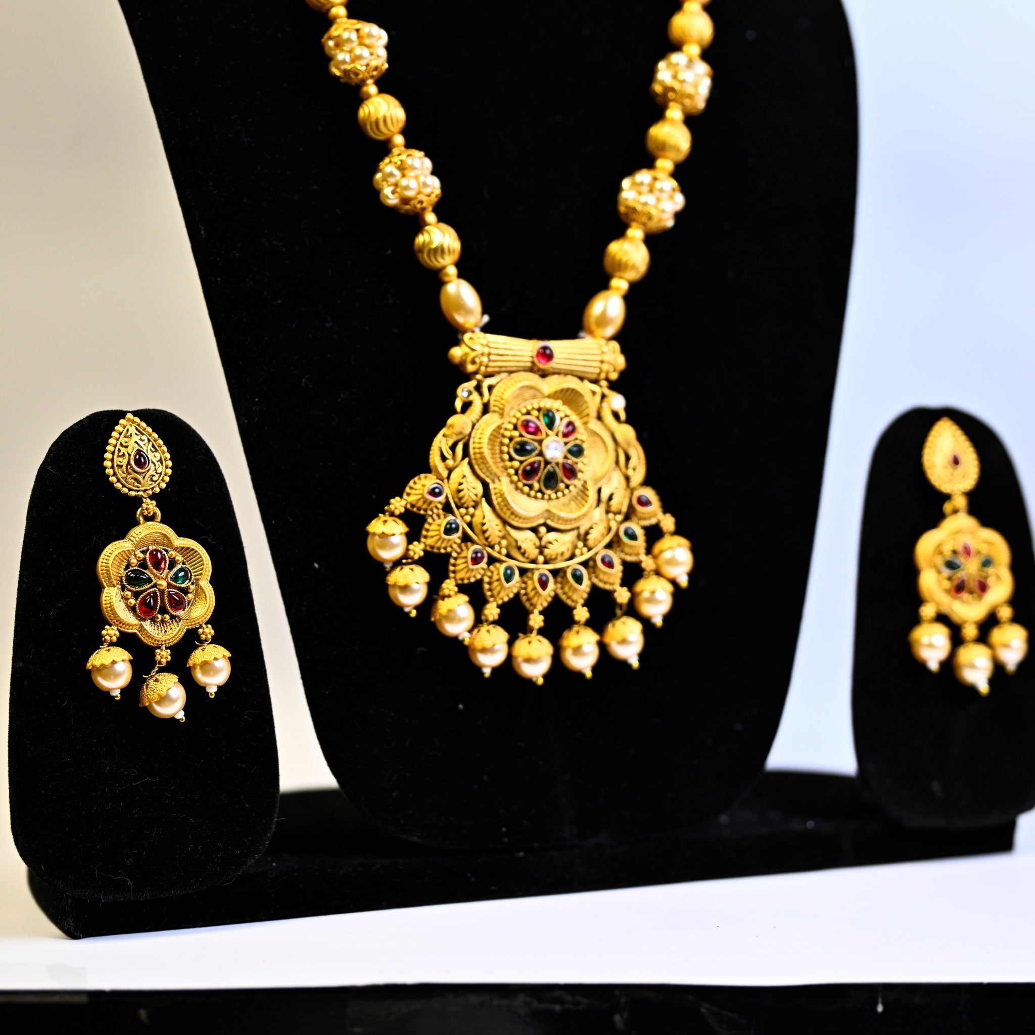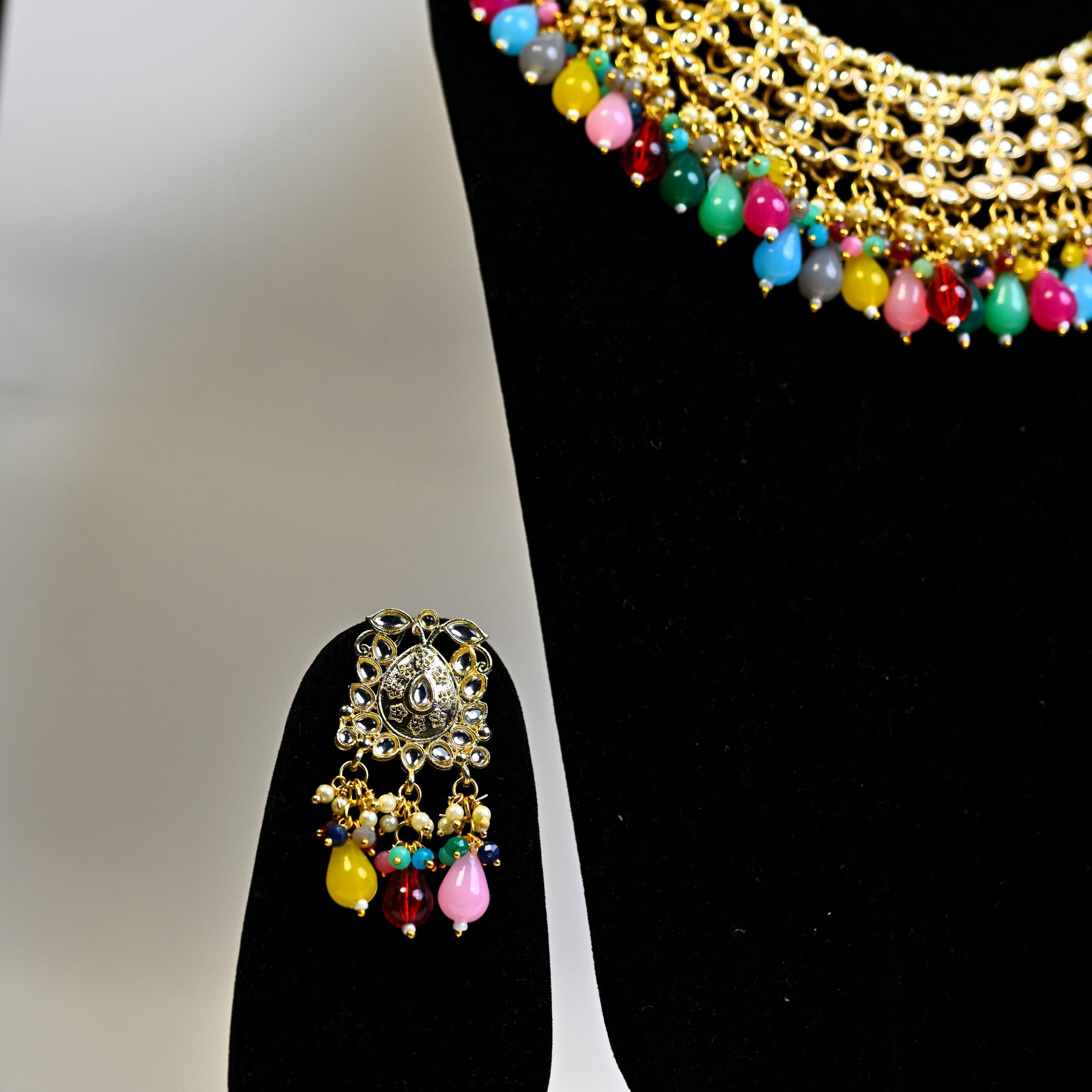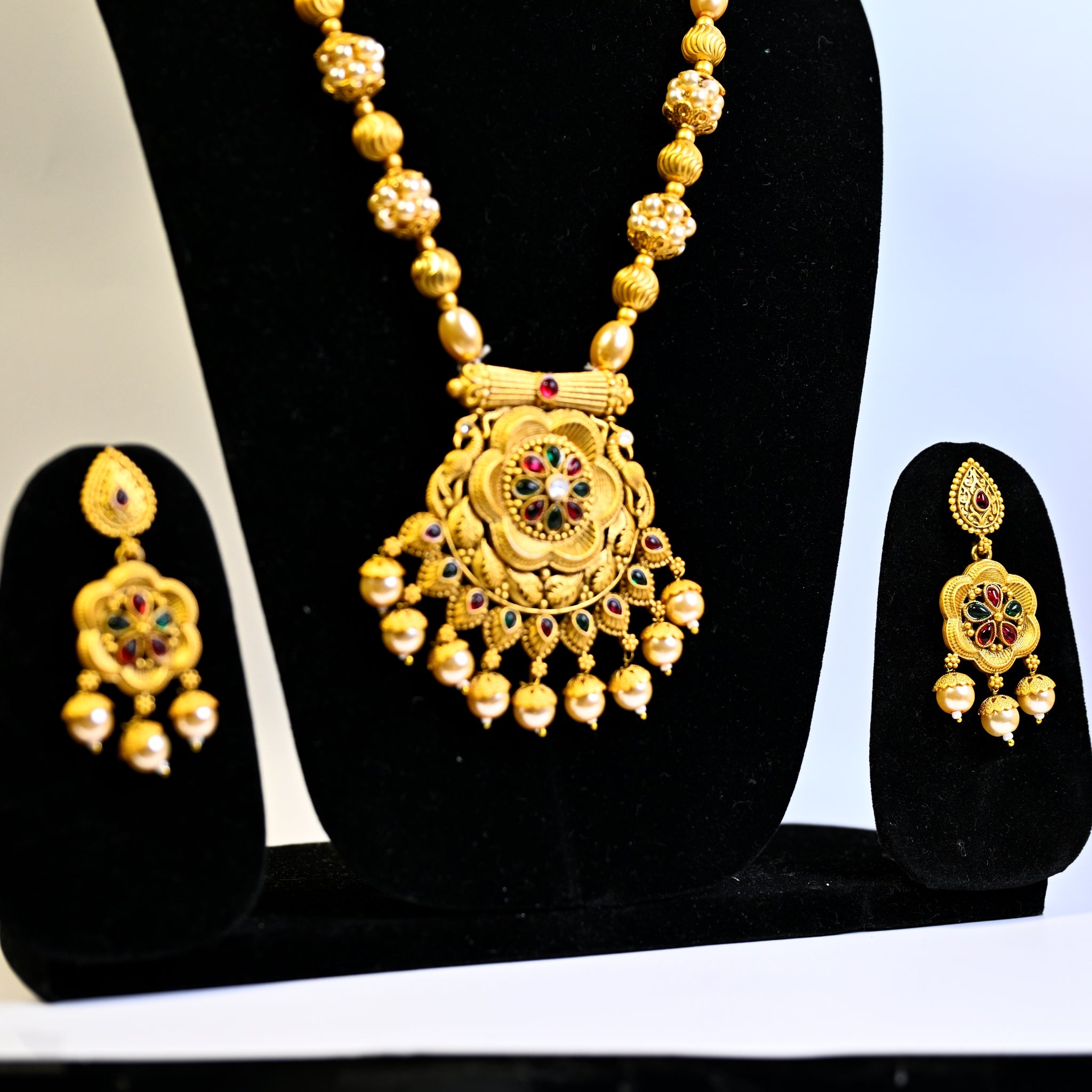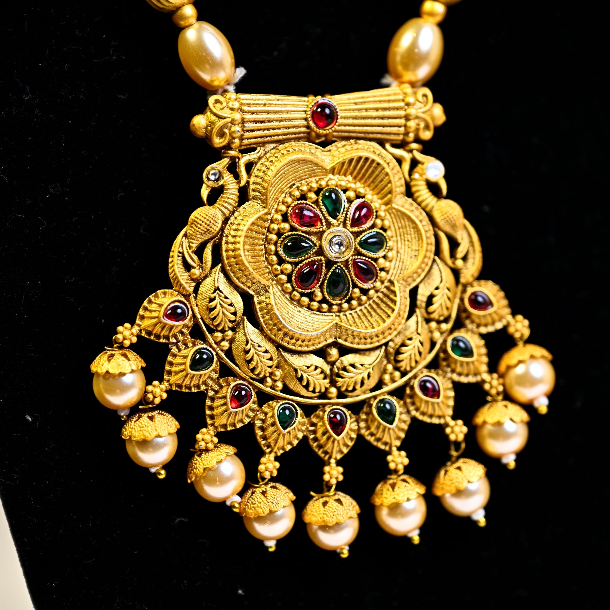 Jewellery Gold Plated Kundan Stone & Beads Necklace Set