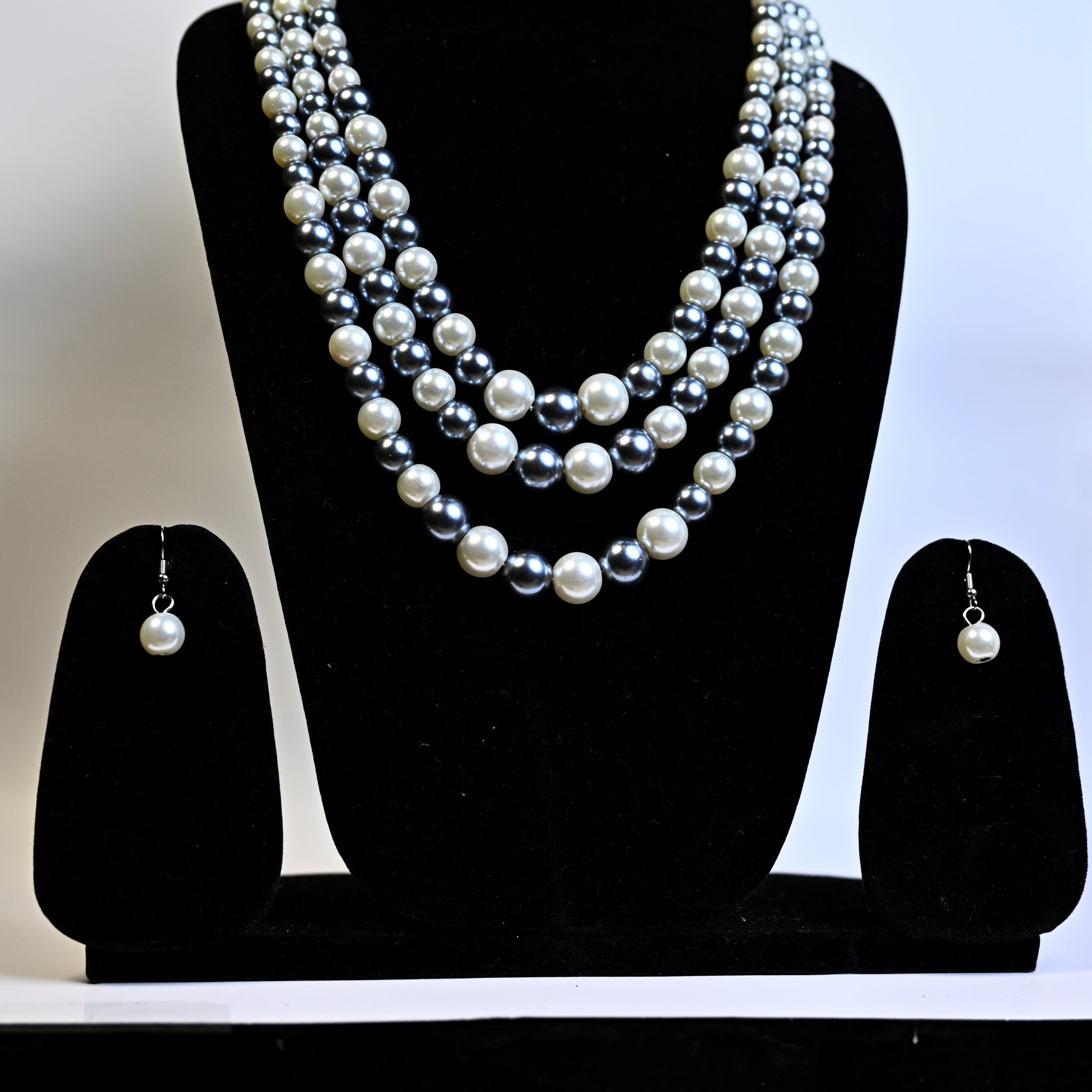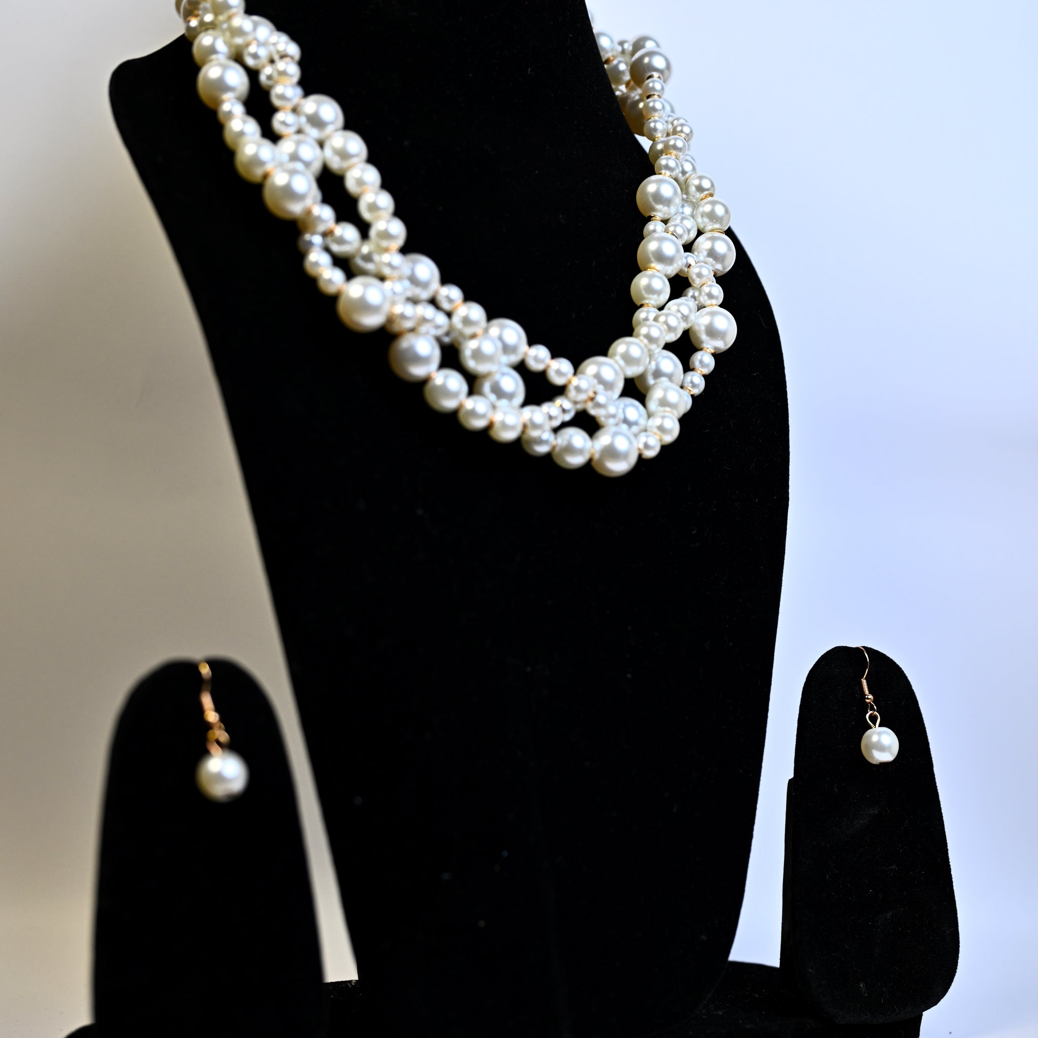CIOOU Pearl Necklace 3 strand Faux Earrings Set