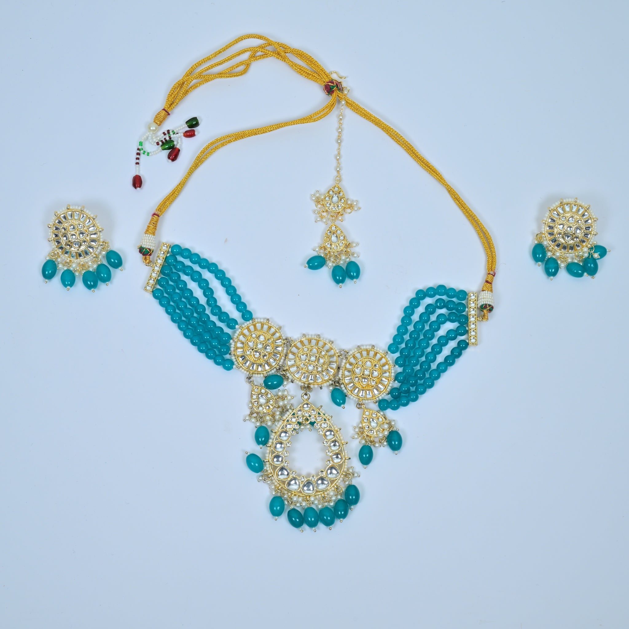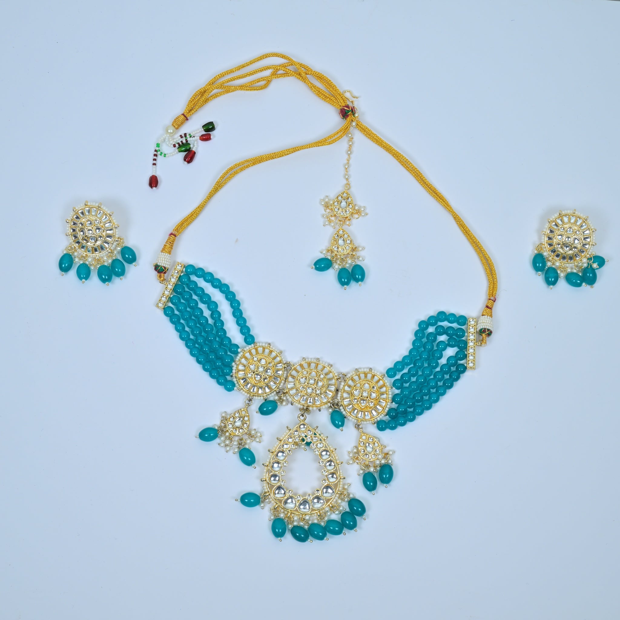 Exquisite Sky Blue Kundan Gold-Plated Necklace, Perfect for Women in Traditional Attire