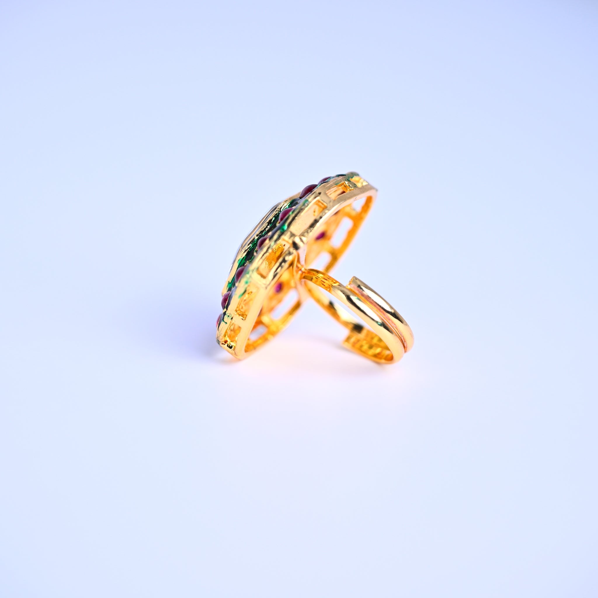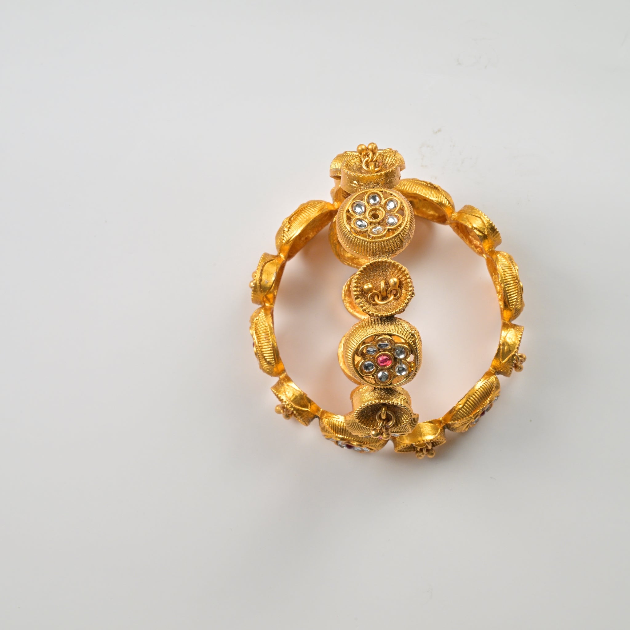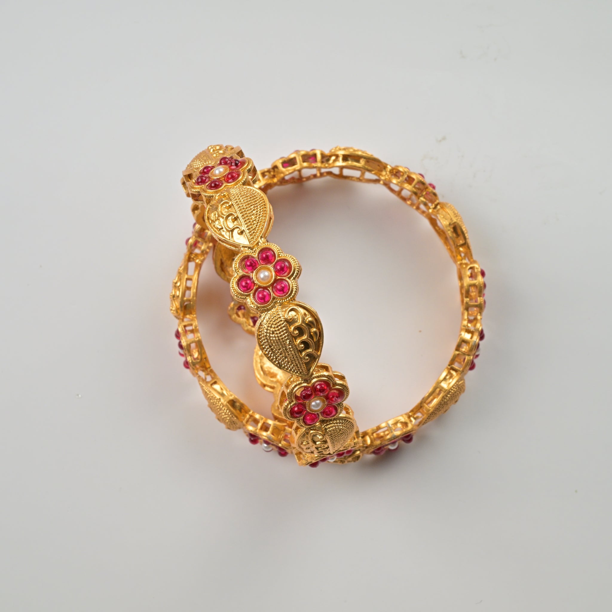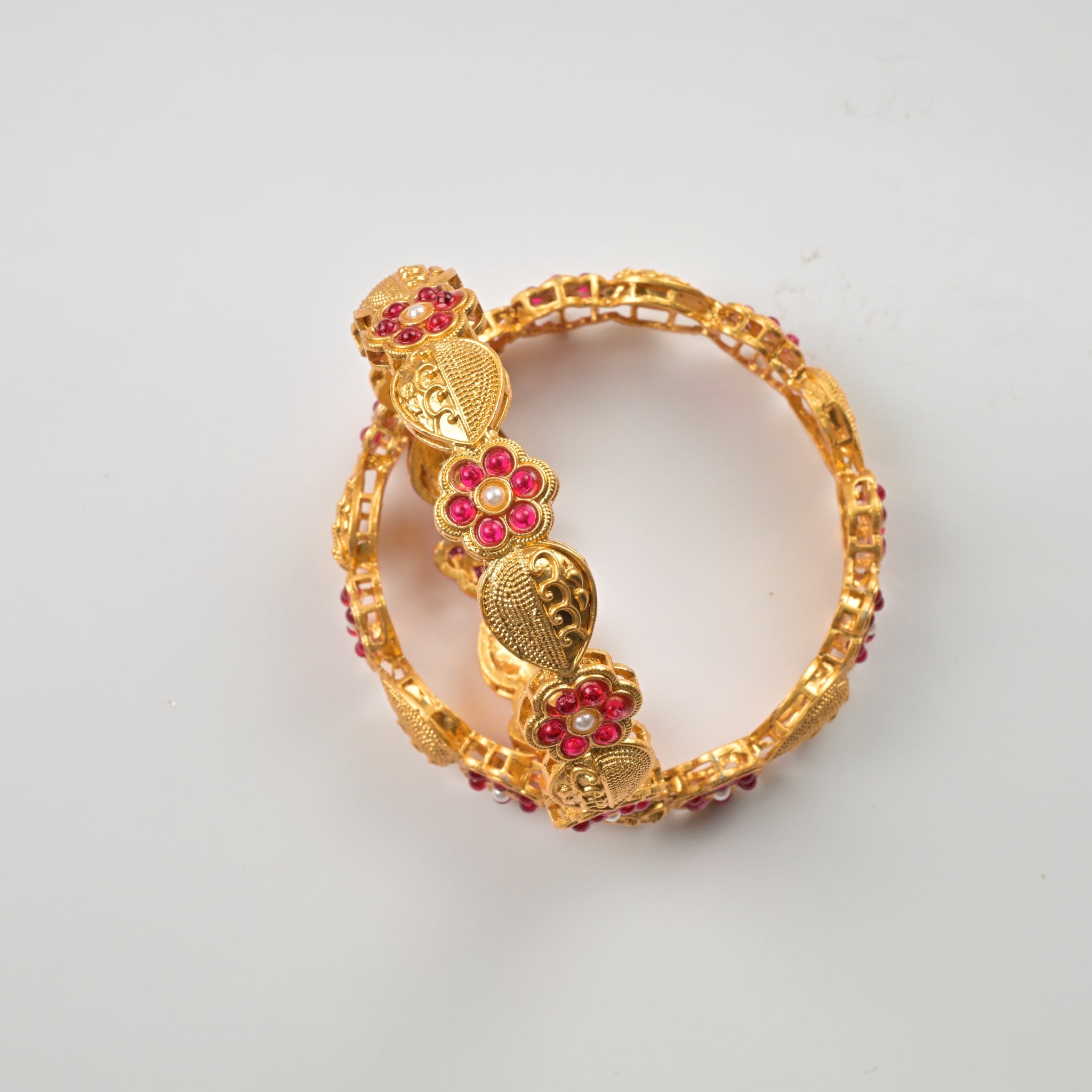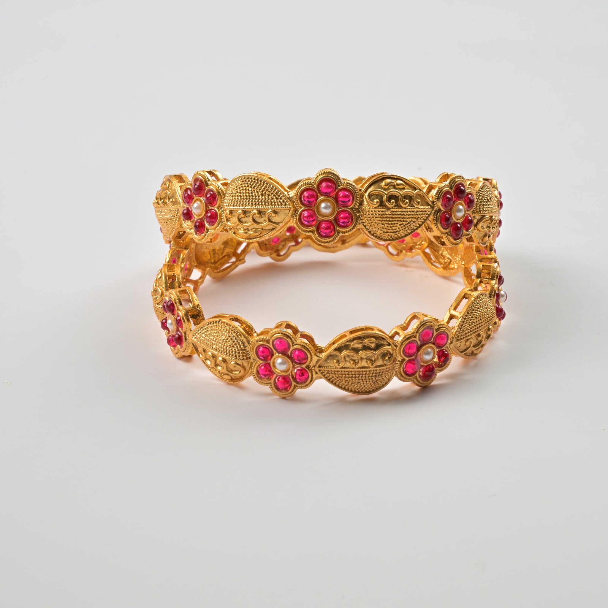 Set of 4 Antique Gold-Plated Bangles with Green Meena and Kundan Work for Women