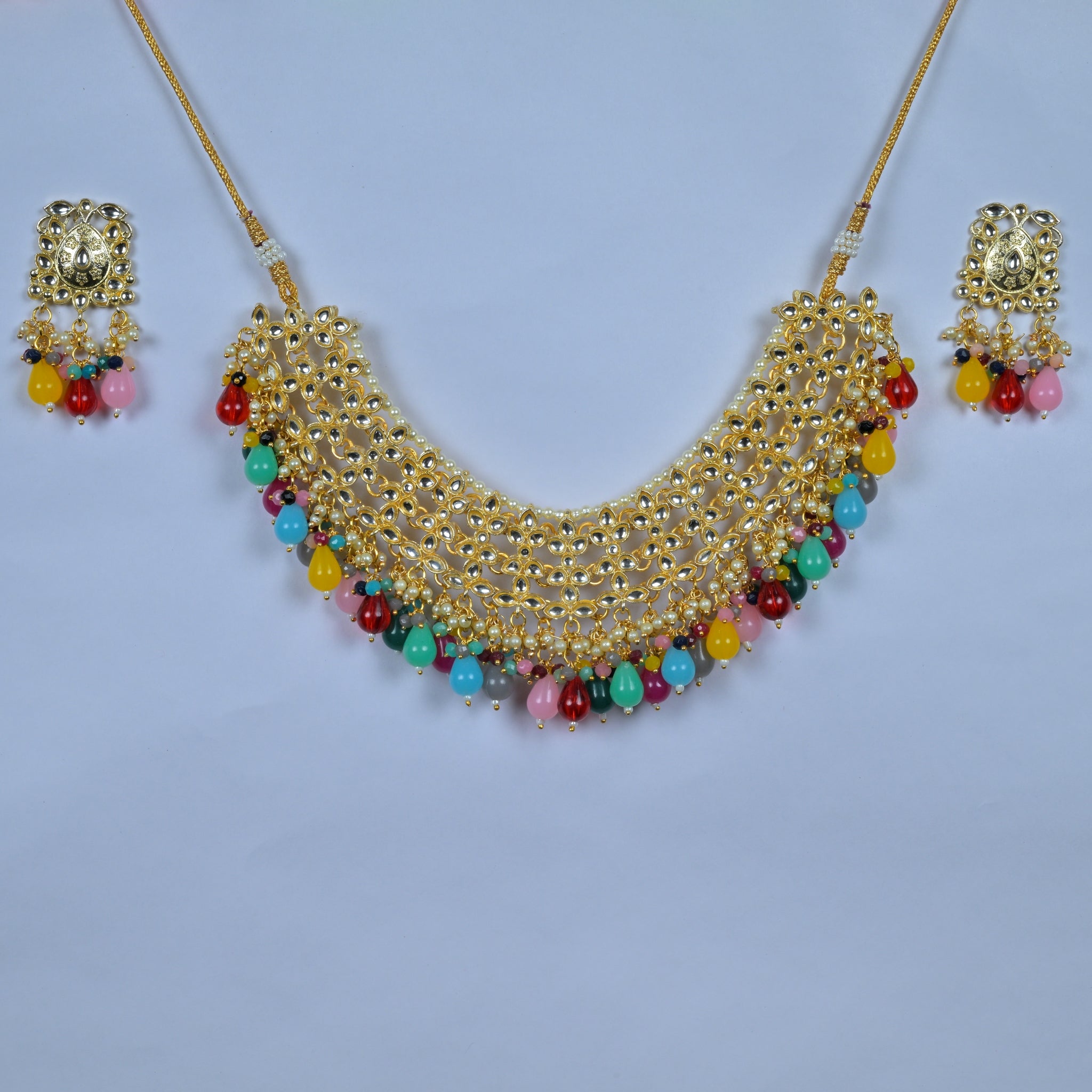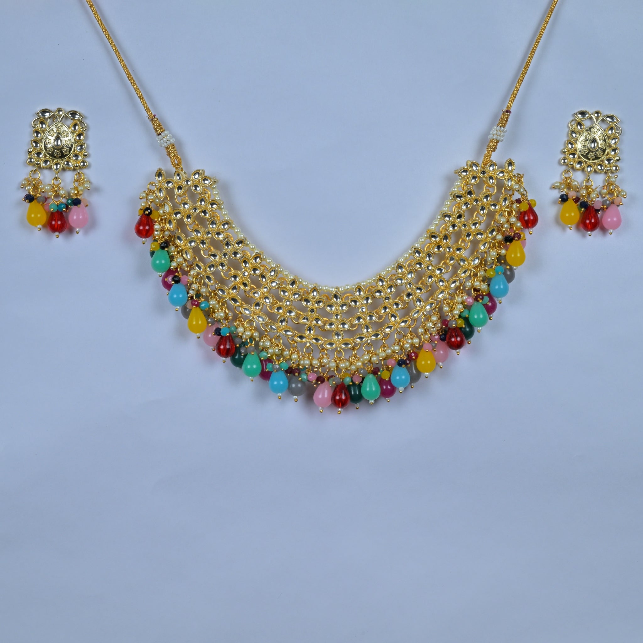 Gold-Plated Kundan and Multicolor Beads Ethnic Choker Necklace