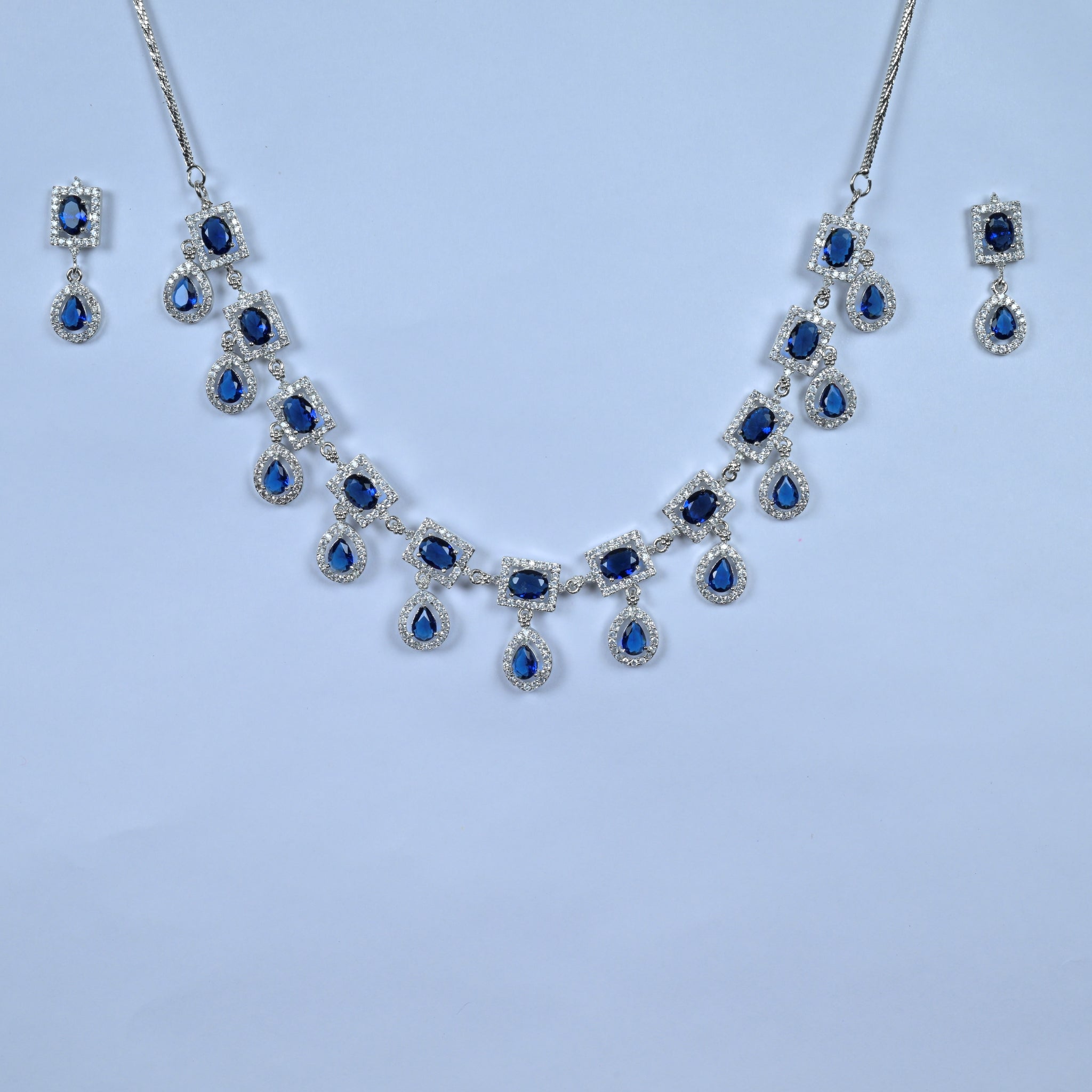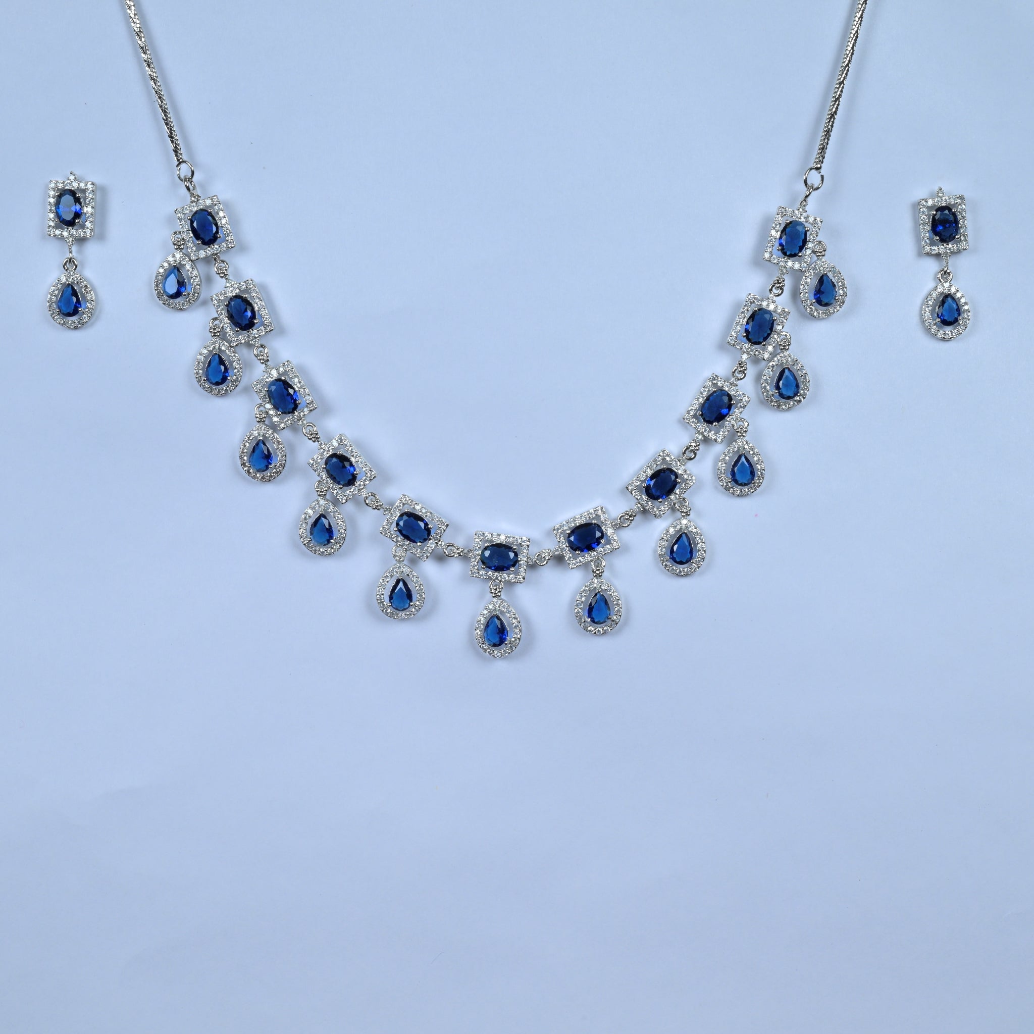 Exquisite Silver-Plated Necklace with Blue Diamond Accent