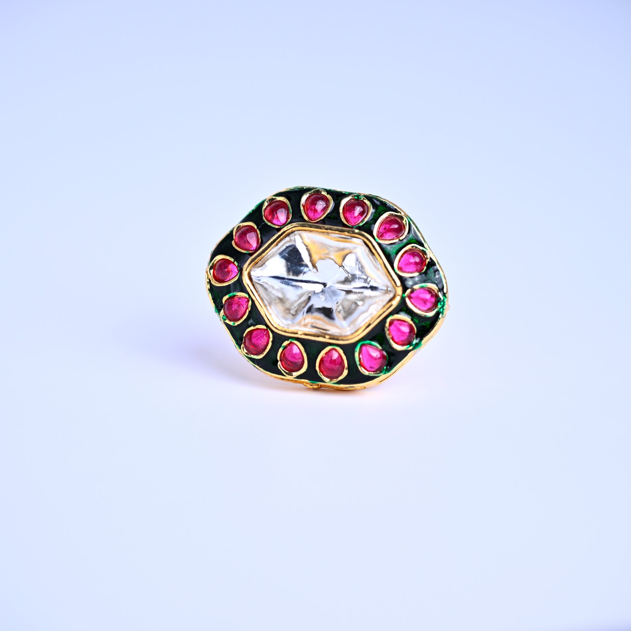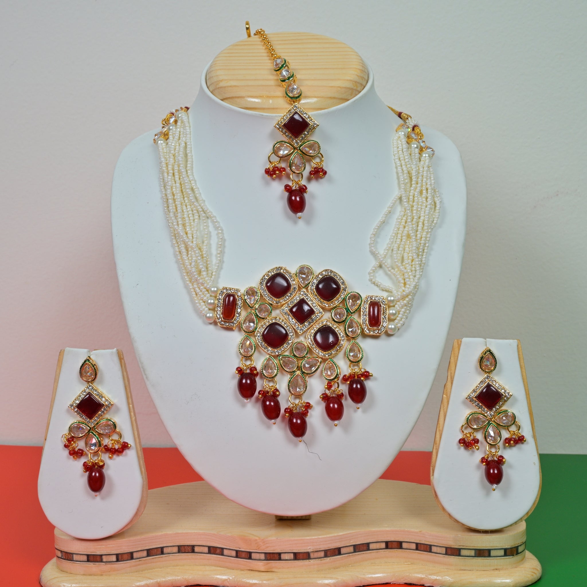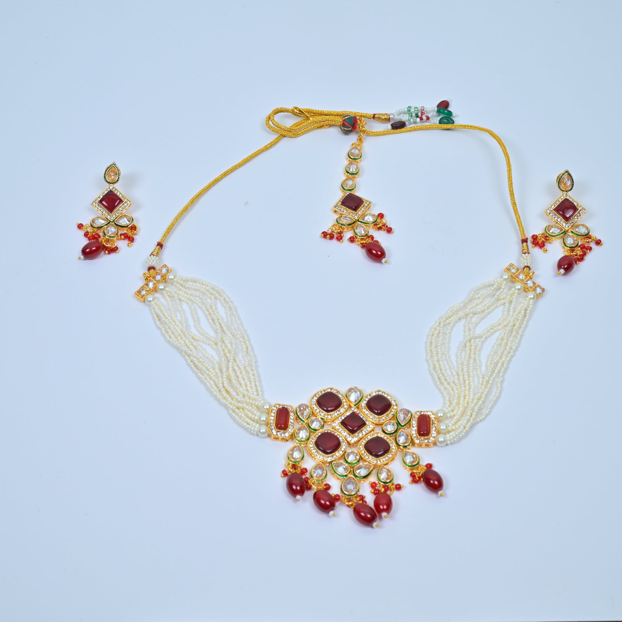 GOLD-PLATED ETHNIC PINK STONE AND KUNDAN CHOKER NECKLACE AND EARRINGS SET