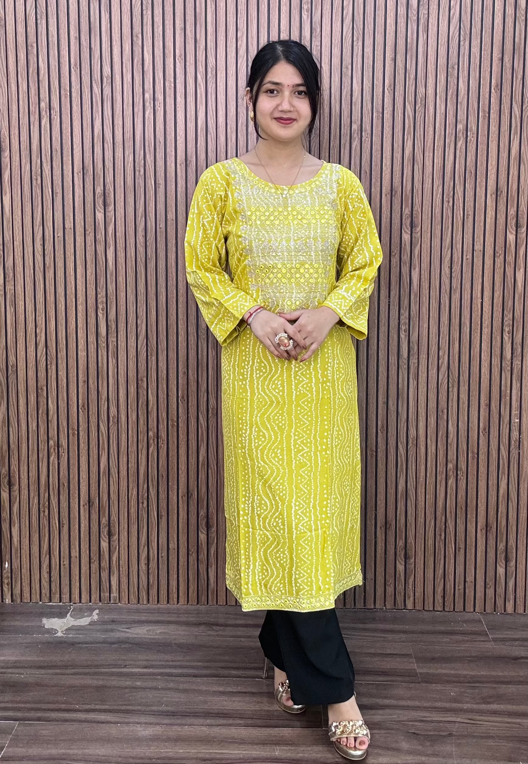 BLACK REYON FABRIC WITH PRINT KURTI