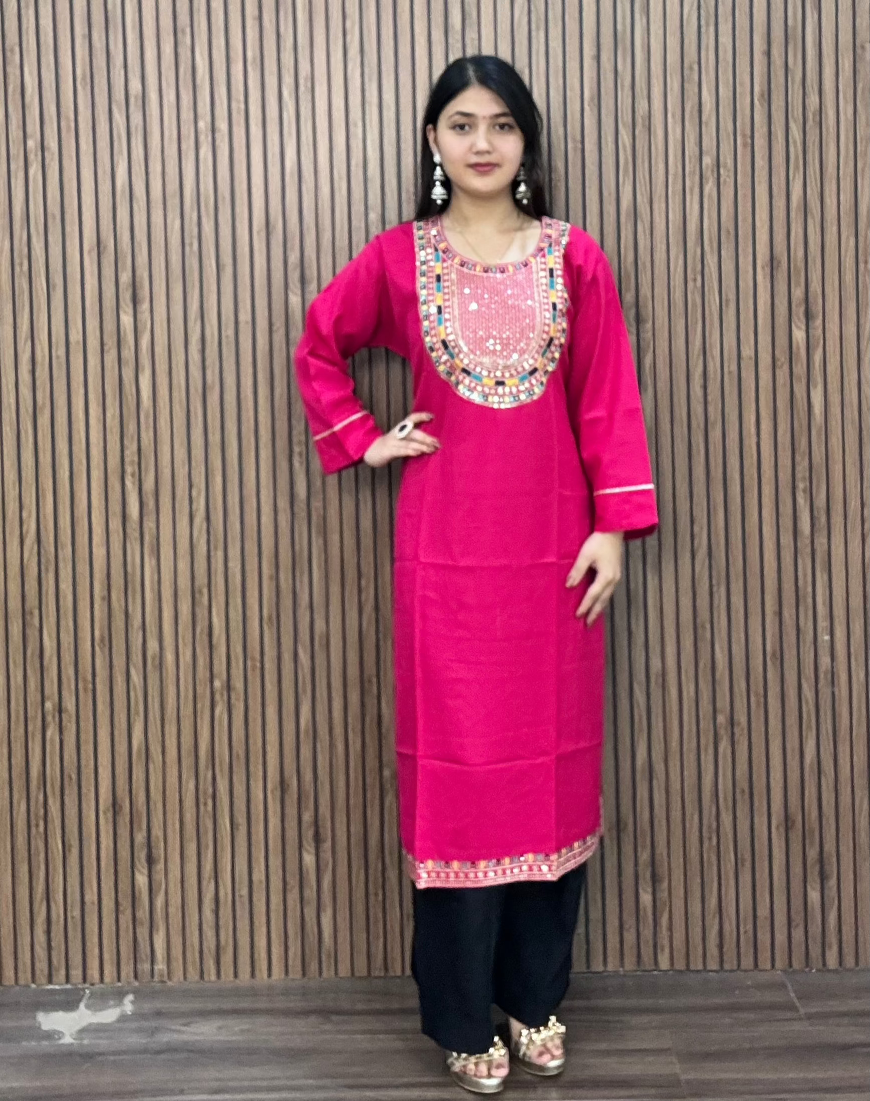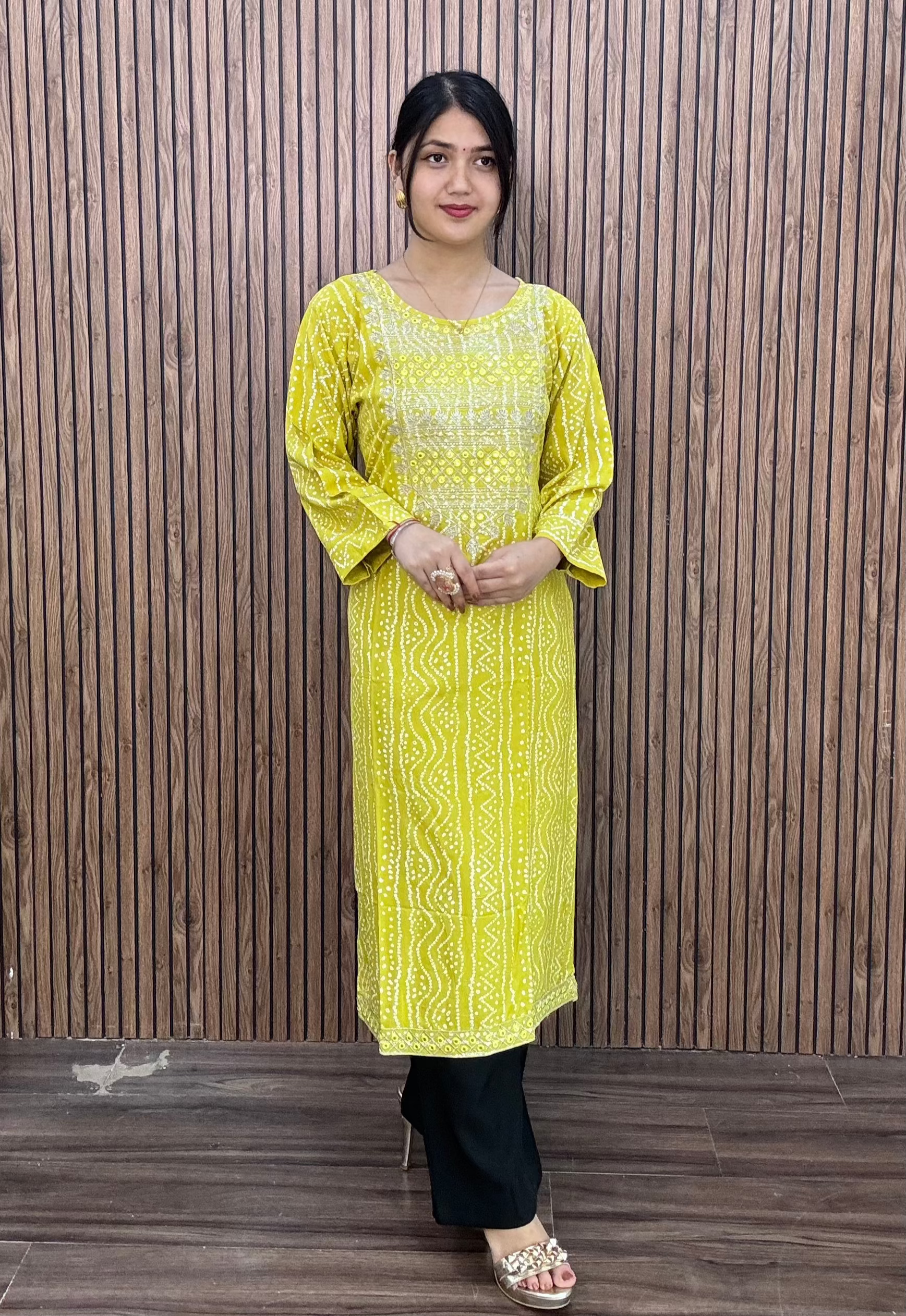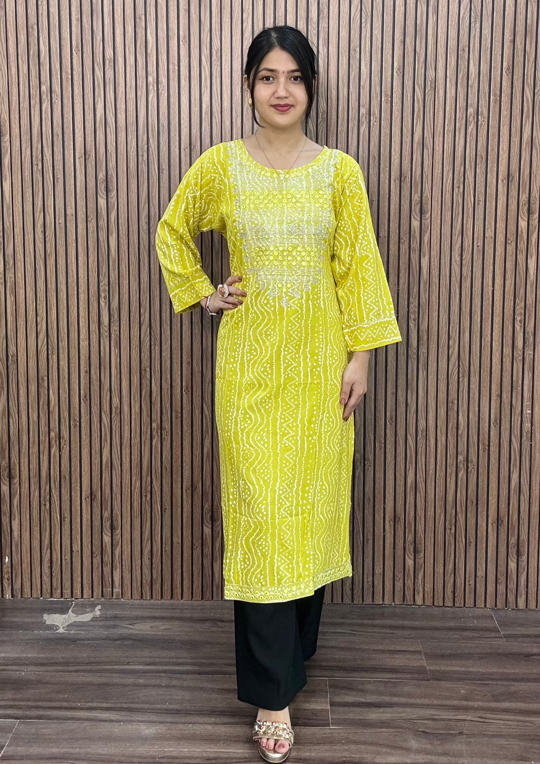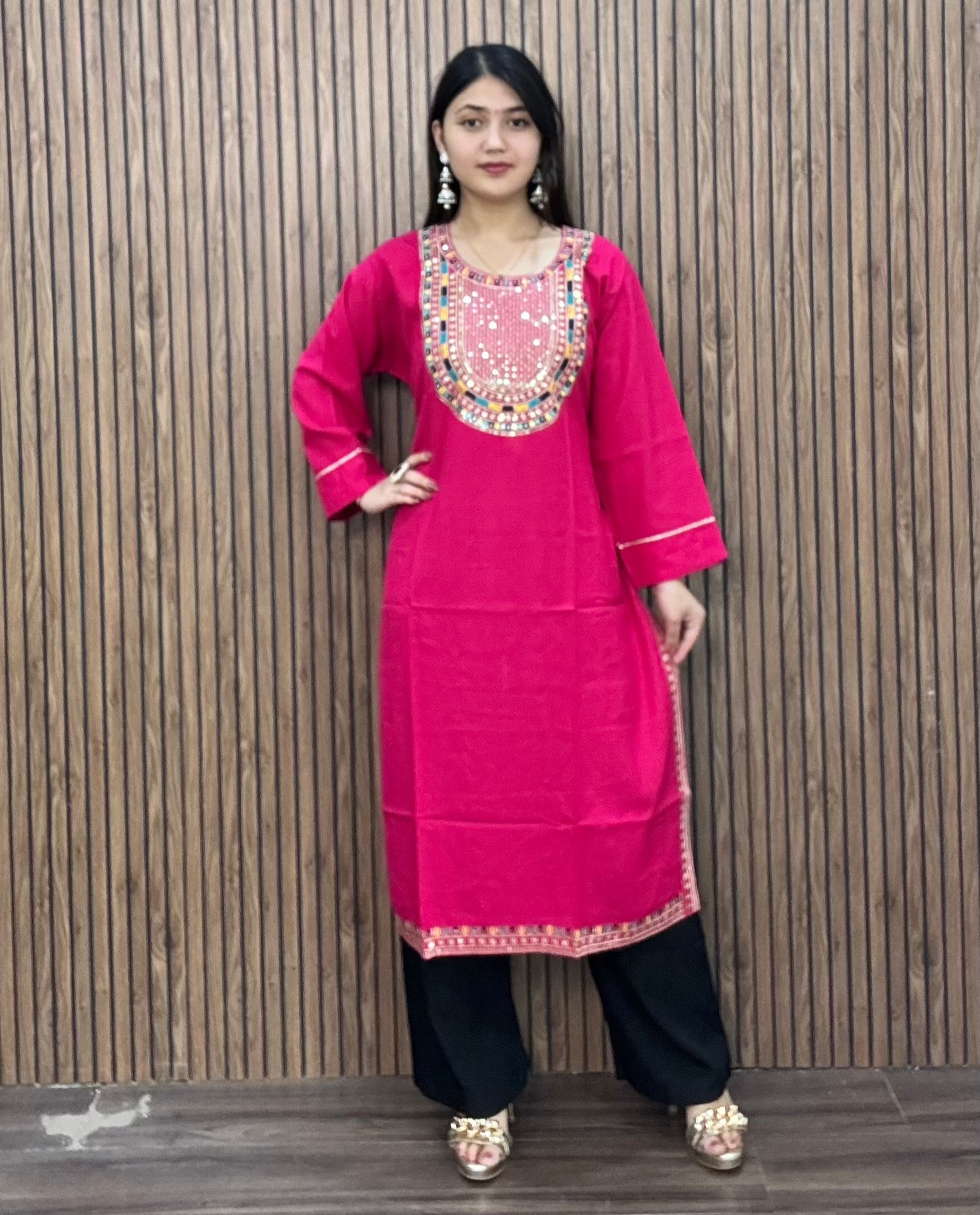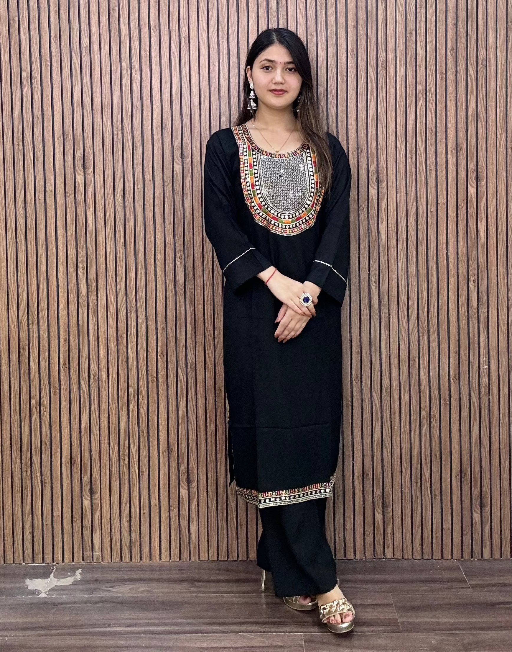 BLACK AND GREEN REYON FABRIC WITH THREADWORK KURTI