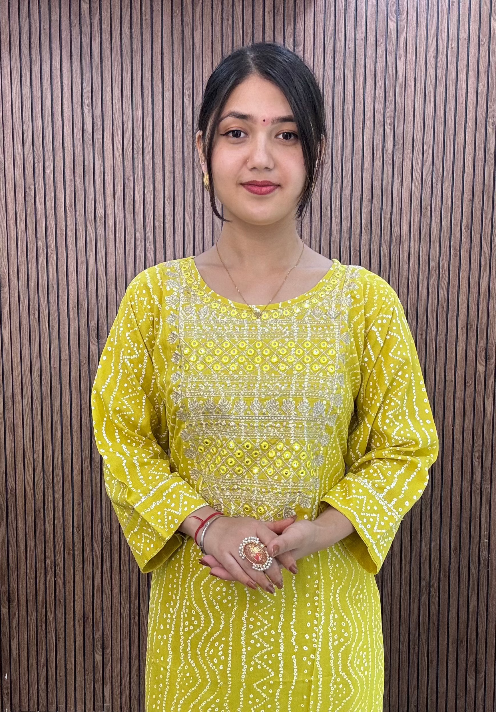 YELLOW SILK COTTON LONG COORDSET WITH PANT