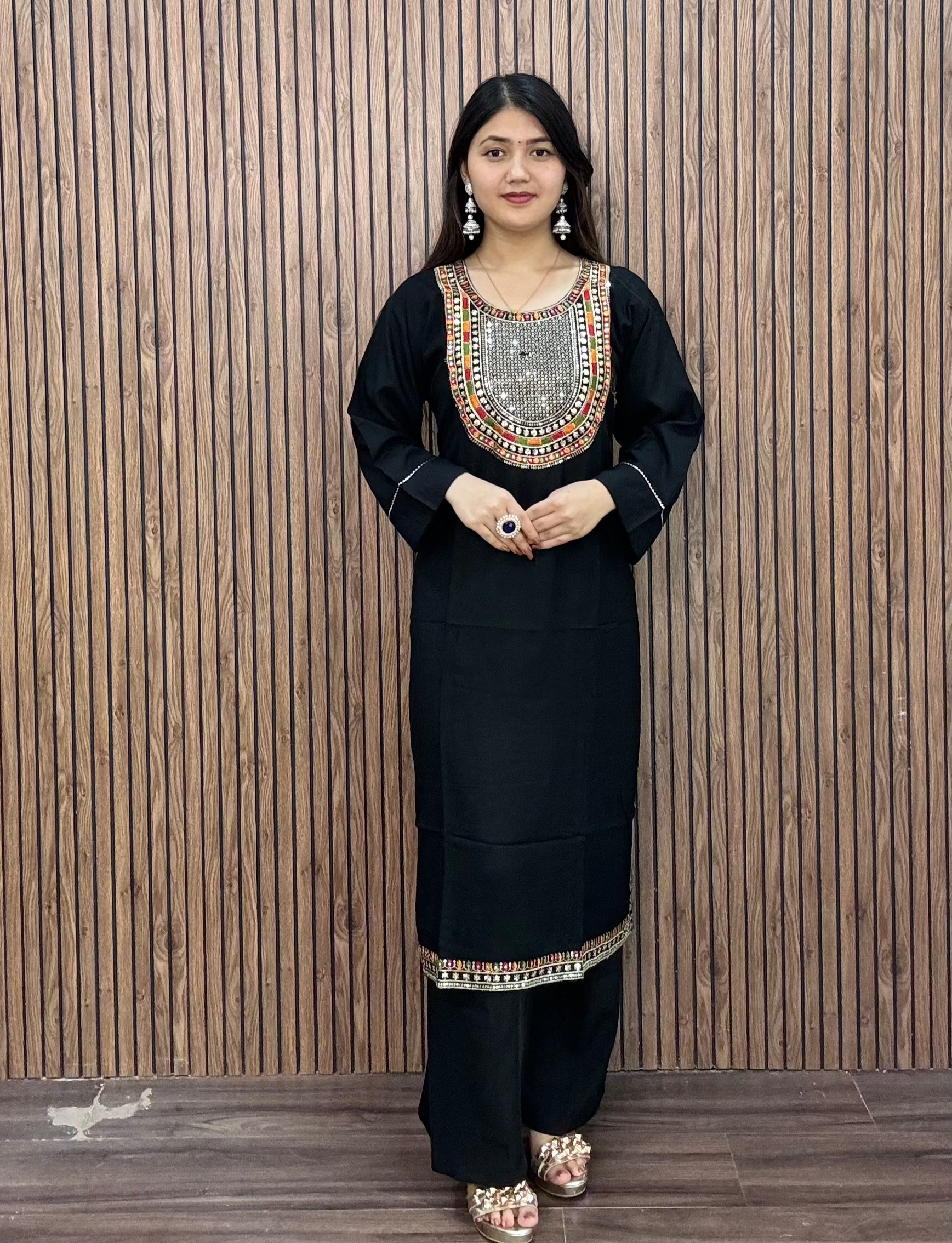 BLACK PREMIUM SILK COORDSET WITH DESIGNER SLEEVE AND COTTON LINING