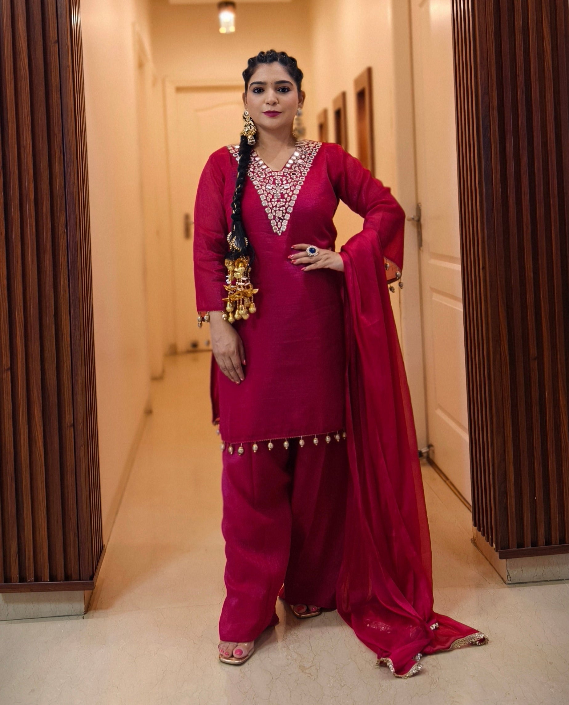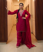 MAGENTA PREMIUM TISSUE SUIT WITH HEAVY DUPATTA AND FARSI SALWAR