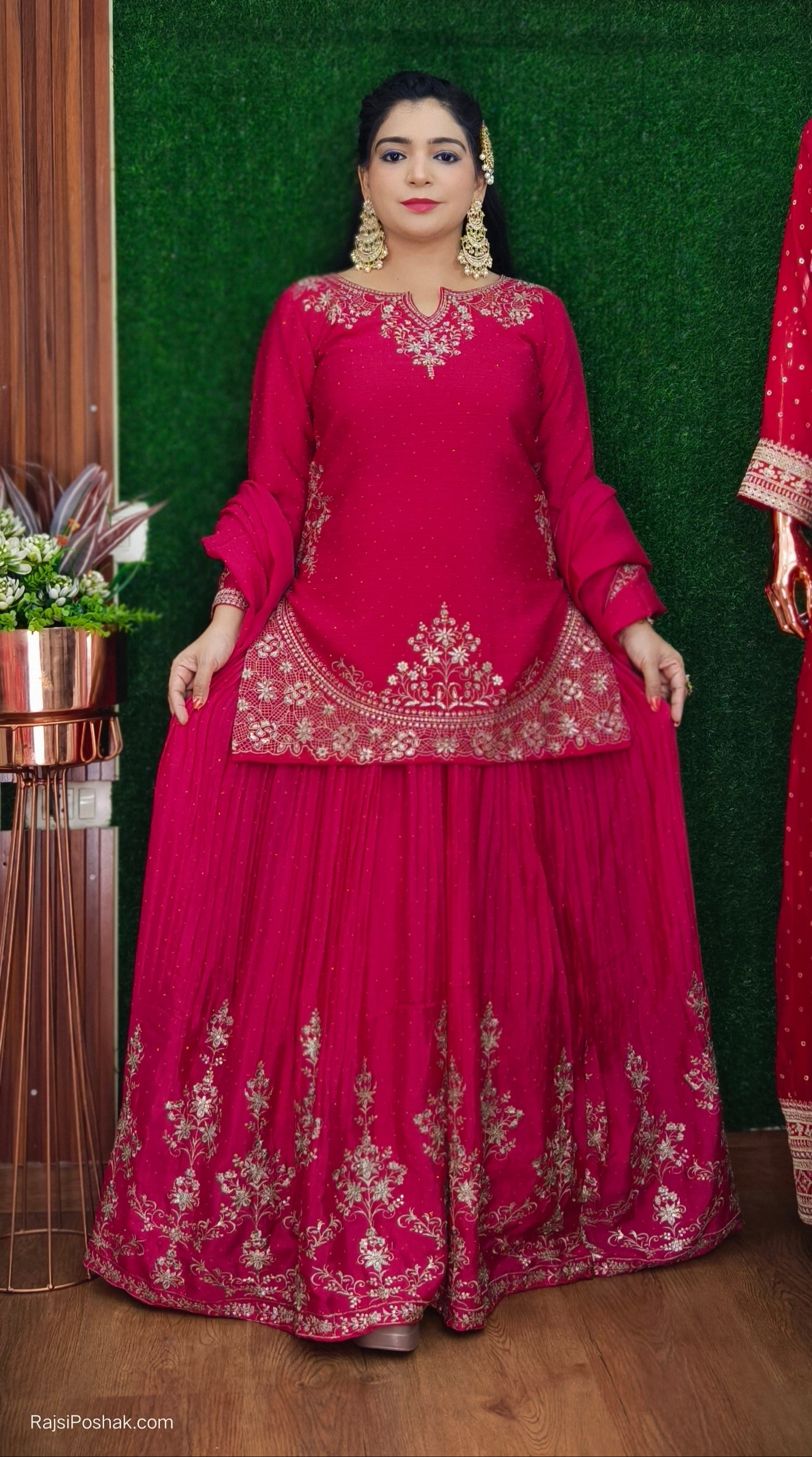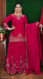 PINK PREMIUM CHINON SUIT WITH HEAVY DUPATTA AND SKIRT