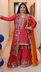 PREMIUM EMBRORAIRED IMPORTED HEAVY SHARARA SUIT WITH FULL CAPE AND WITH REAL MIRROR