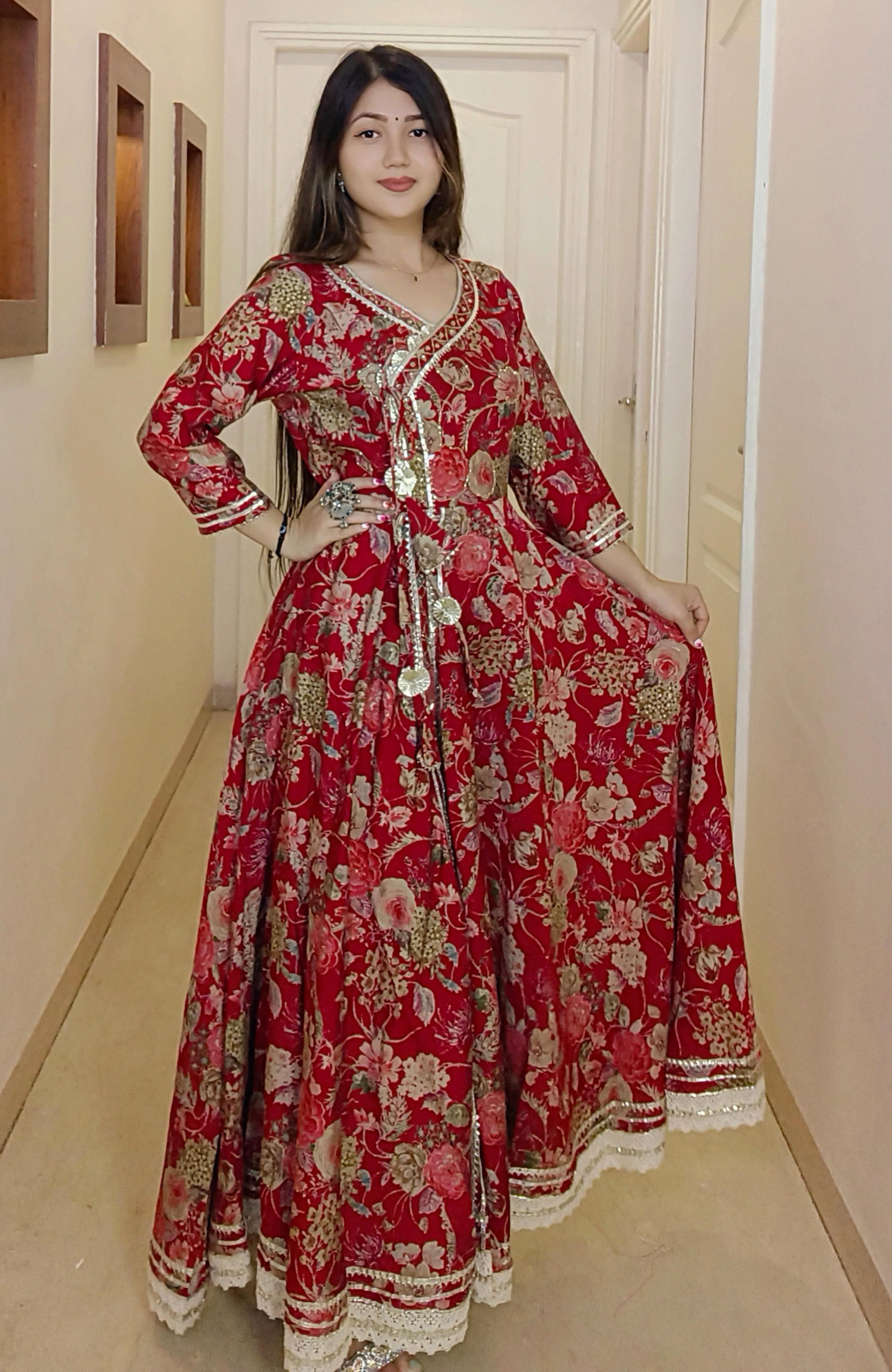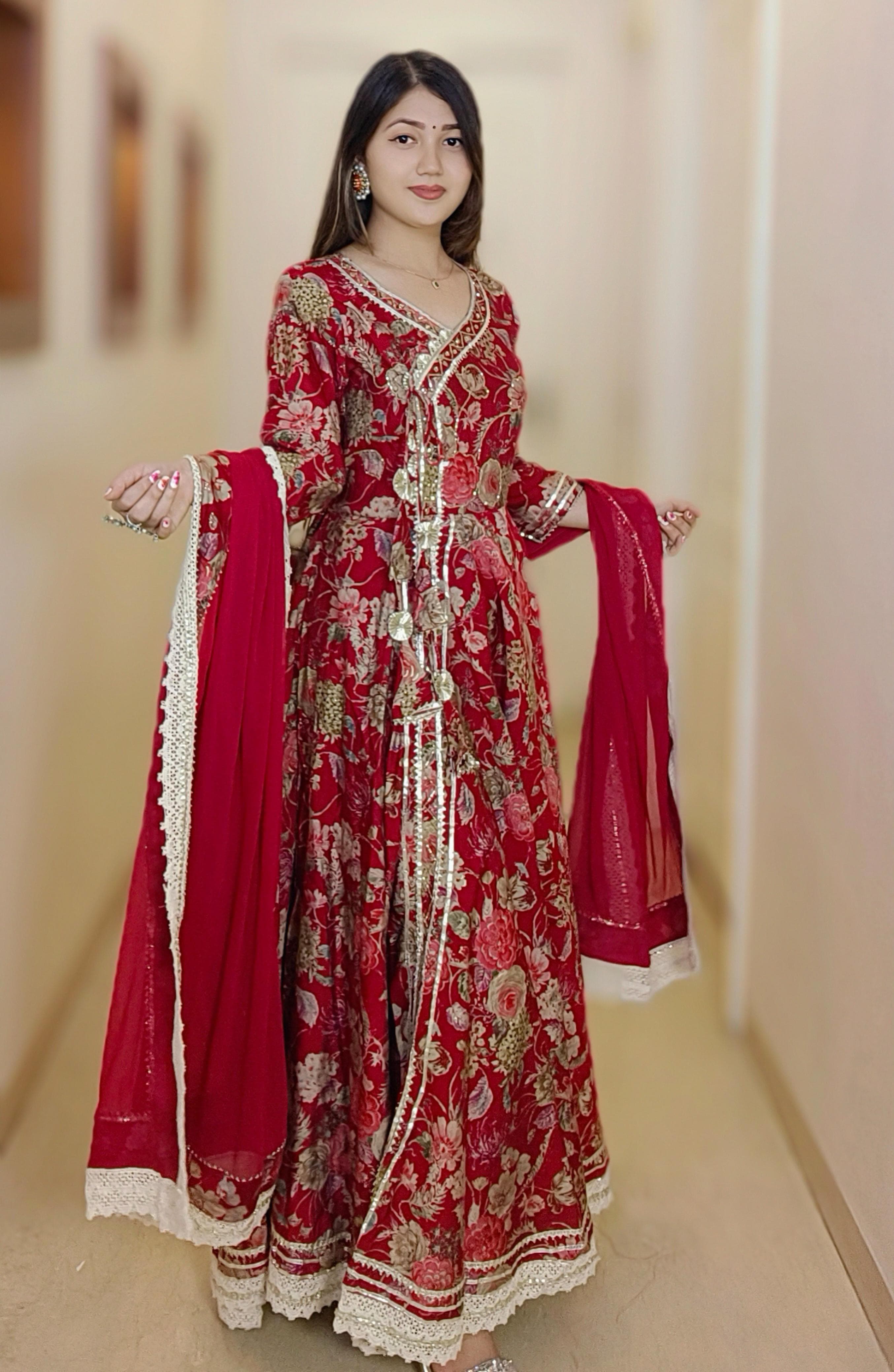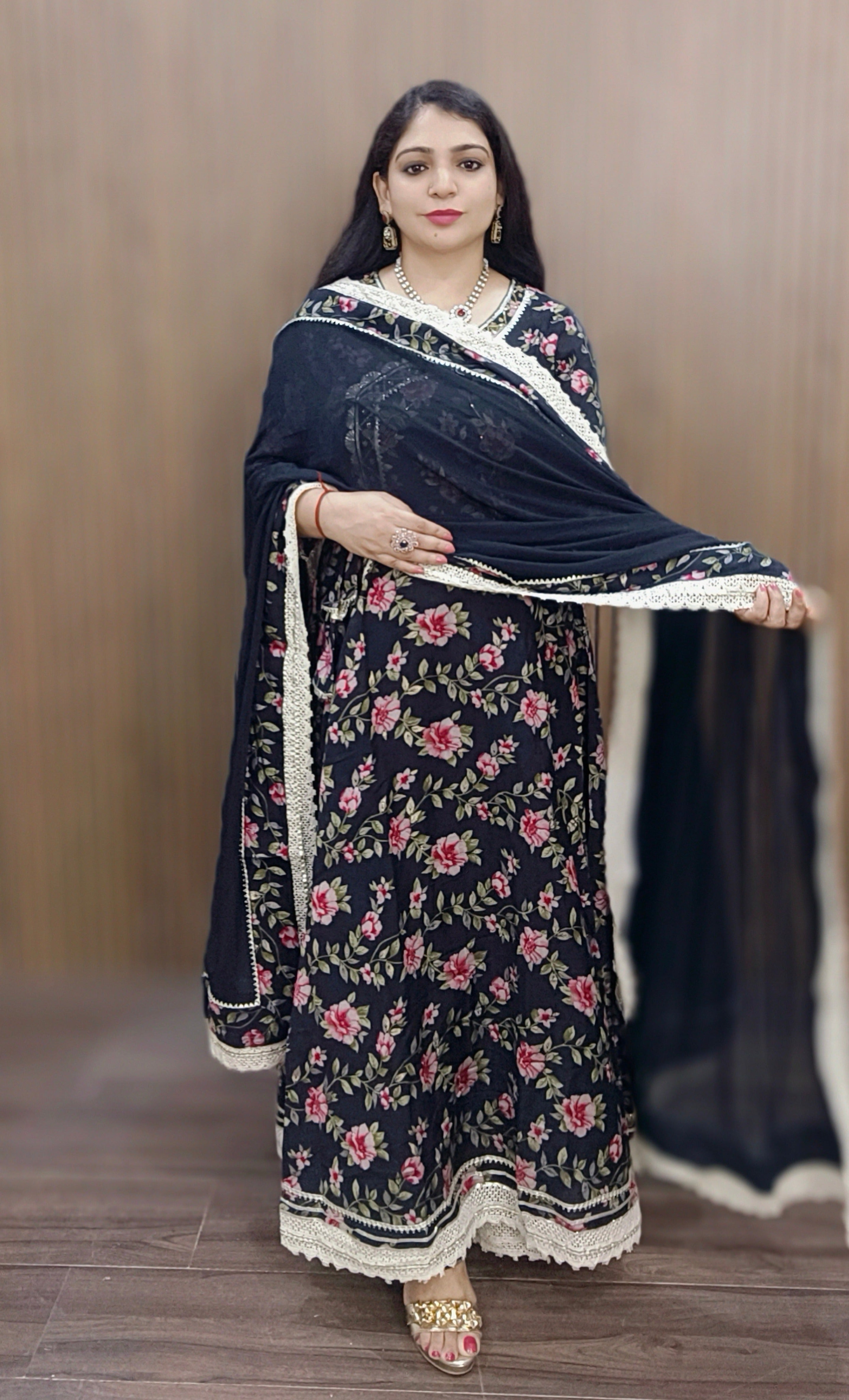 A must have BLACK & MAROON MUSLIN ANARKALI in your wardrobe. It comes with Dupatta.