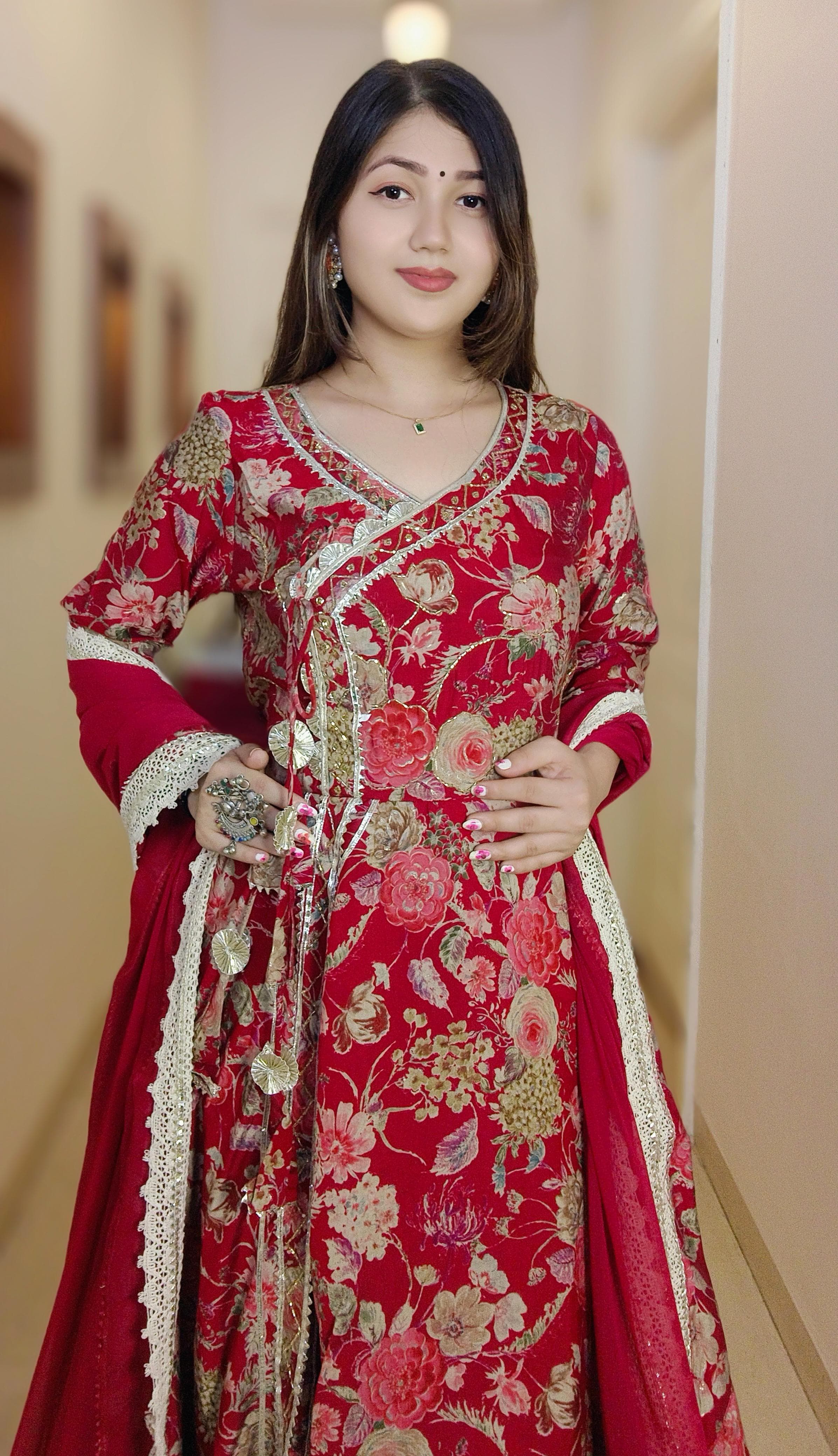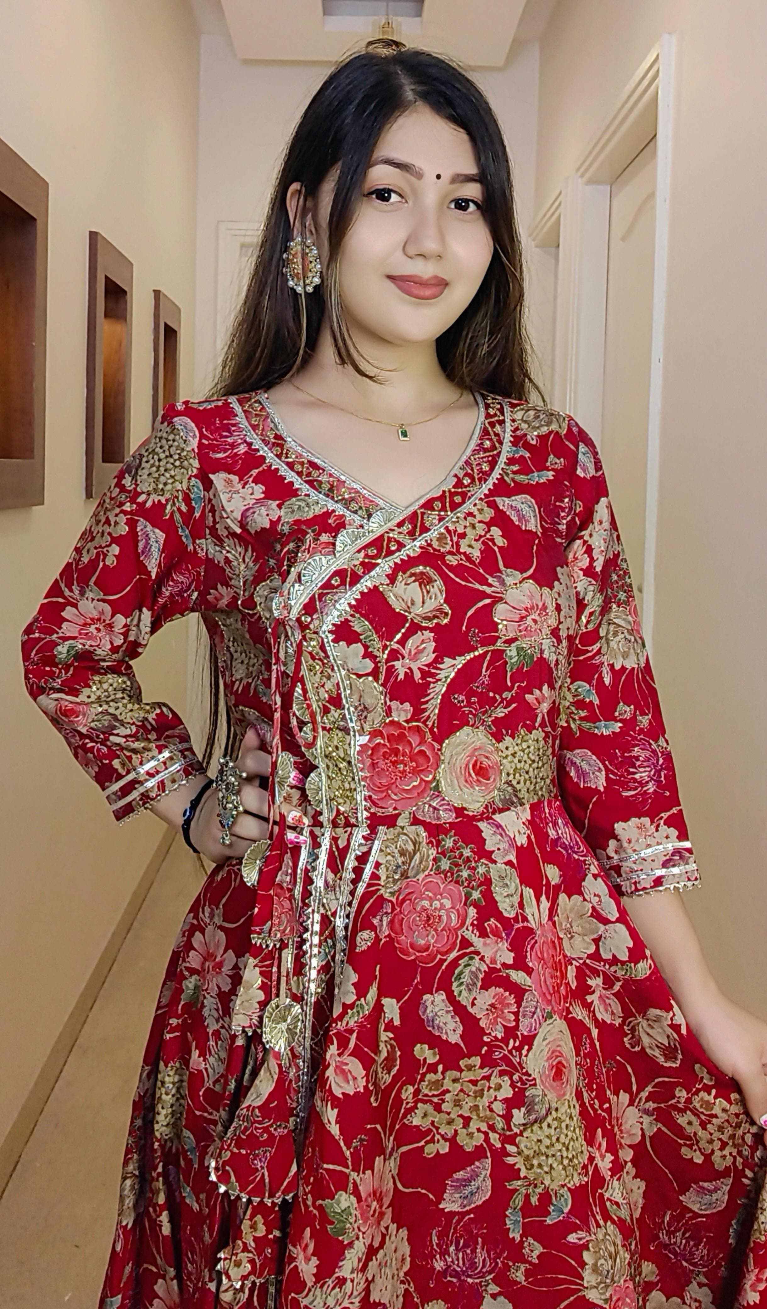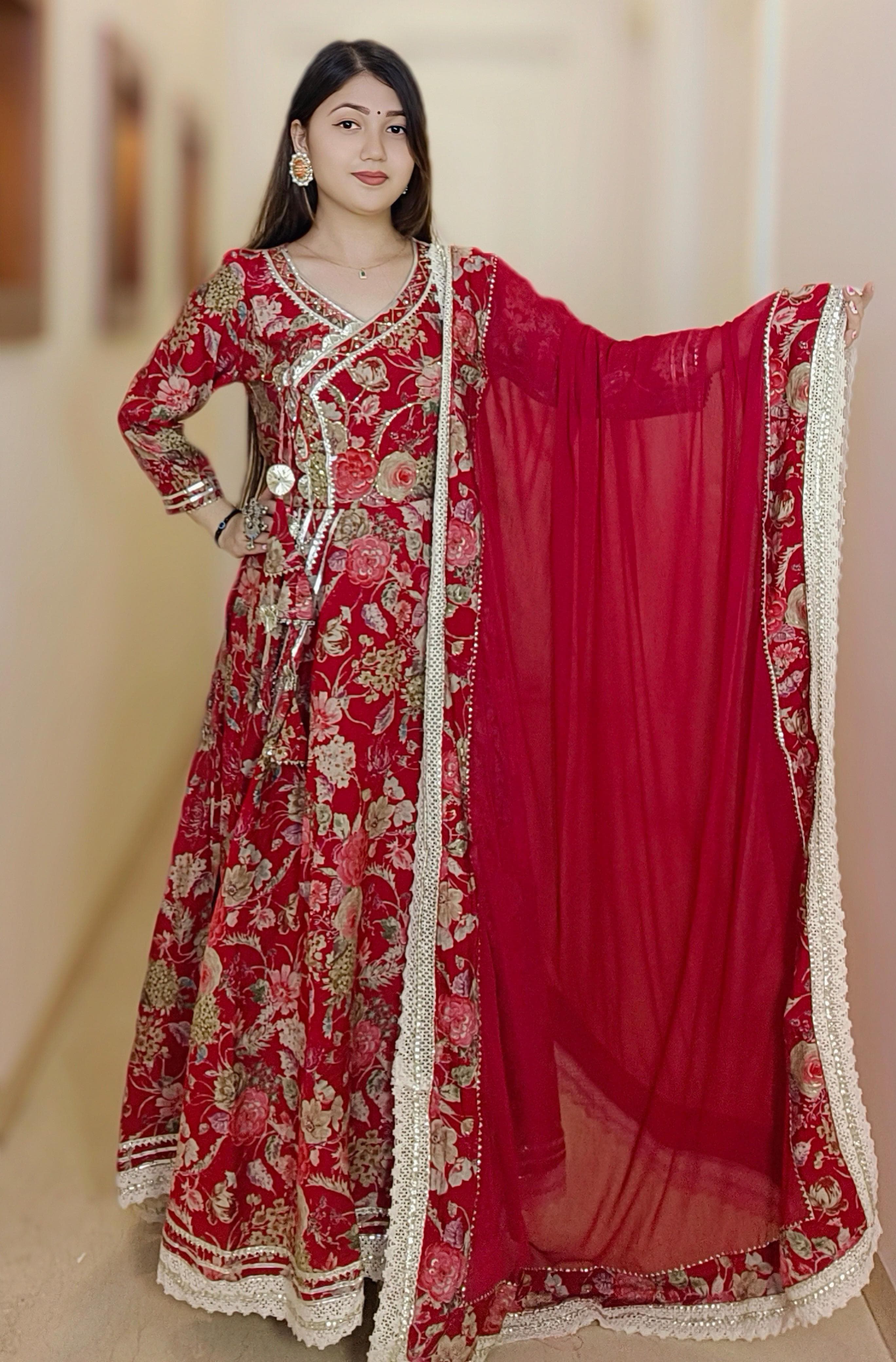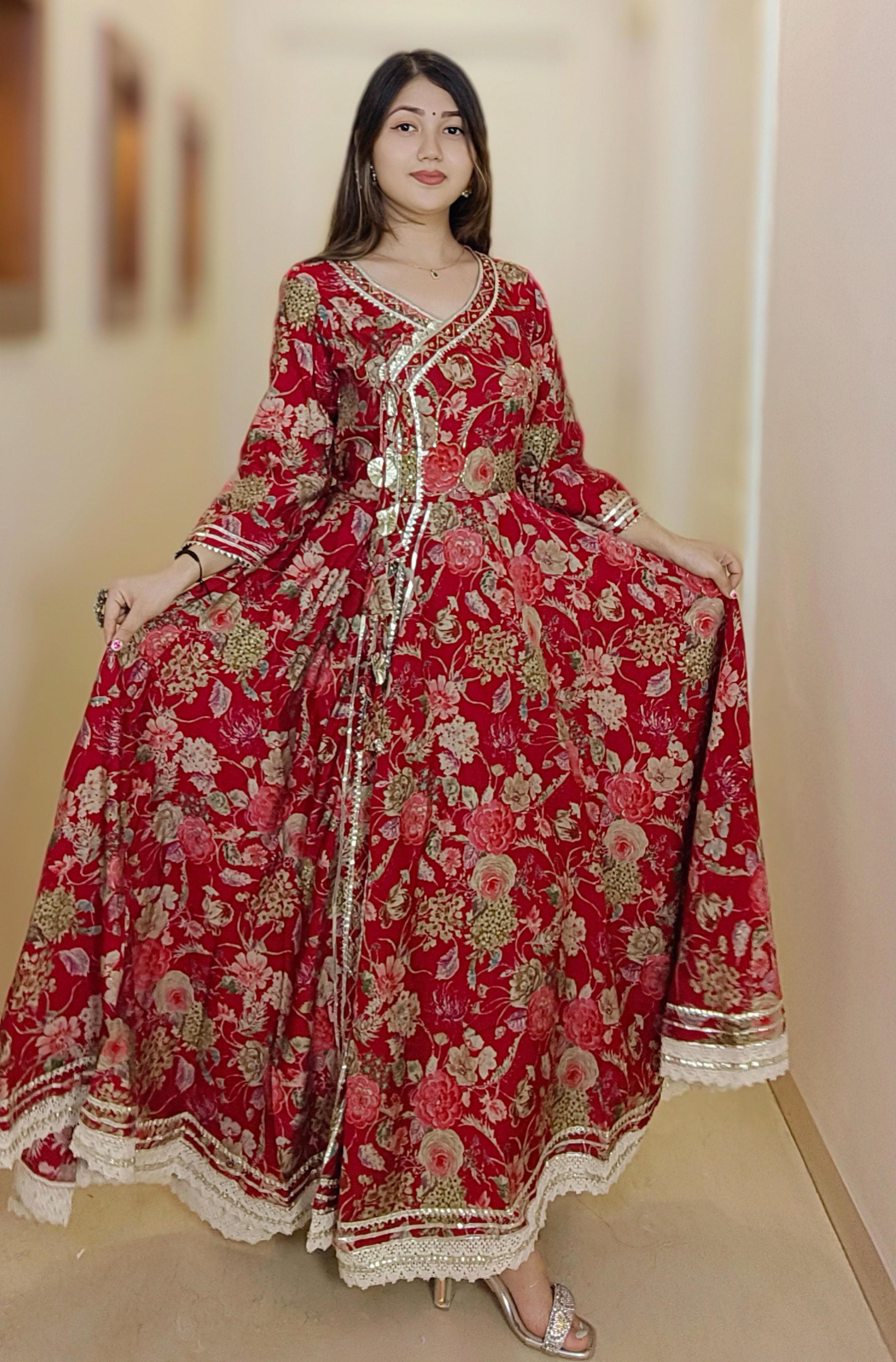 A must have BLACK & MAROON MUSLIN ANARKALI in your wardrobe. It comes with Dupatta.