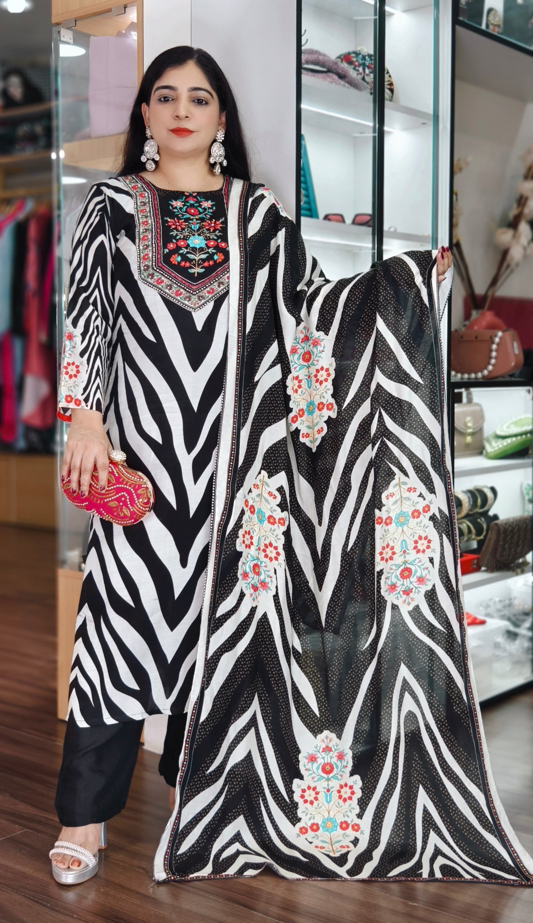 BLACK MUSLIN ALL-OVER HANDWORK SUIT