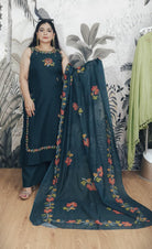 A BLUE AND GREEN COTTON SLEEVELESS SUIT WITH EMBROIDERY WORK AND SLEEVES INSIDE showcases a beautiful fusion of soft lilac and deep wine shades. The cotton fabric is delicately adorned with an intricate and full-length printed design, adding elegance and charm to the dupatta. Ideal for pairing with traditional or modern outfits, this piece effortlessly enhances your look with its vibrant colors and detailed artwork. Perfect for any occasion, it combines comfort with style, offering a luxurious feel and a visually striking appearance.